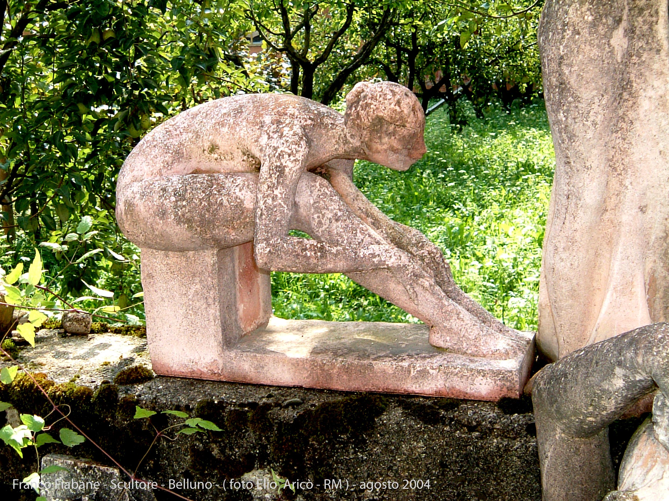 Sono i modelli che Franco aveva posizionato nel retro dello studio a confine con l’orto, che nel tempo libero amava coltivare. Lo facevo sorridere perché l’avevo chiamato ” il giardino delle meraviglie ” , i manufatti si erano integrati perfettamente nell’ambiente . Elio