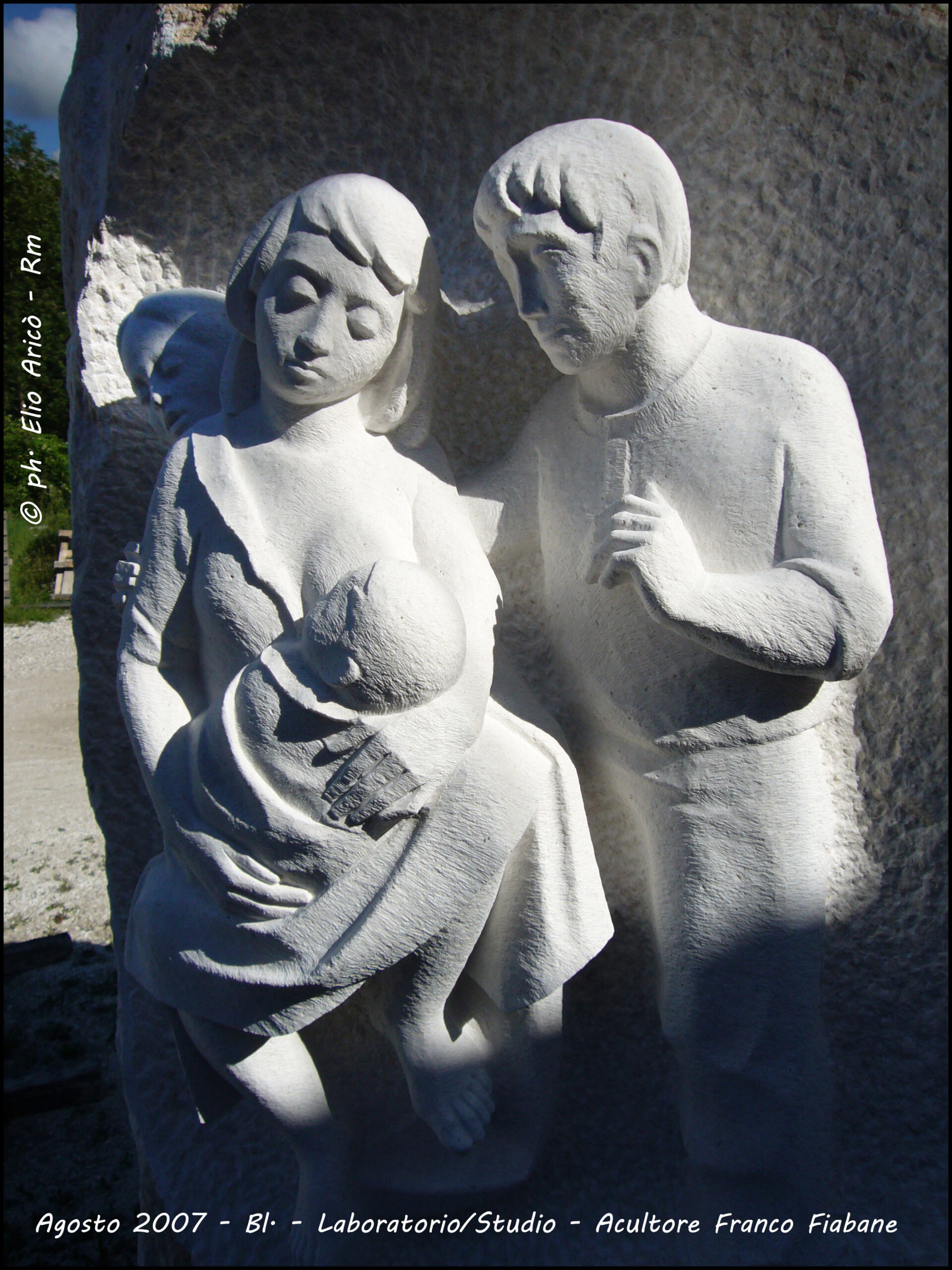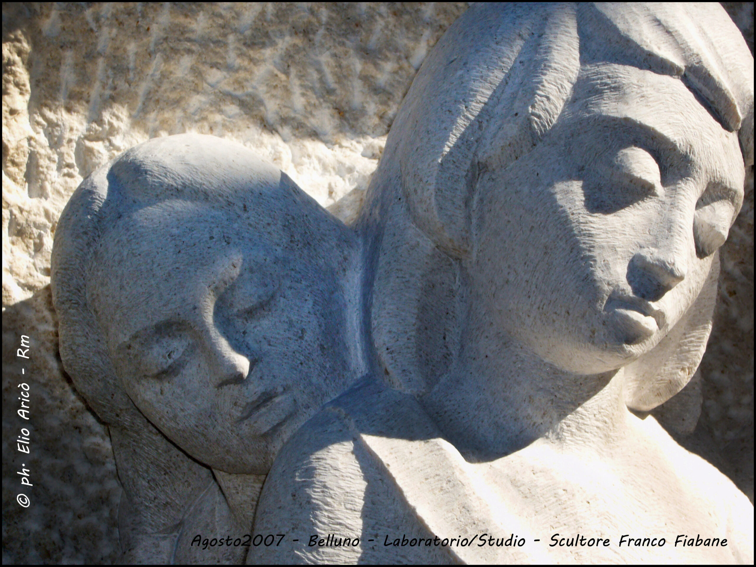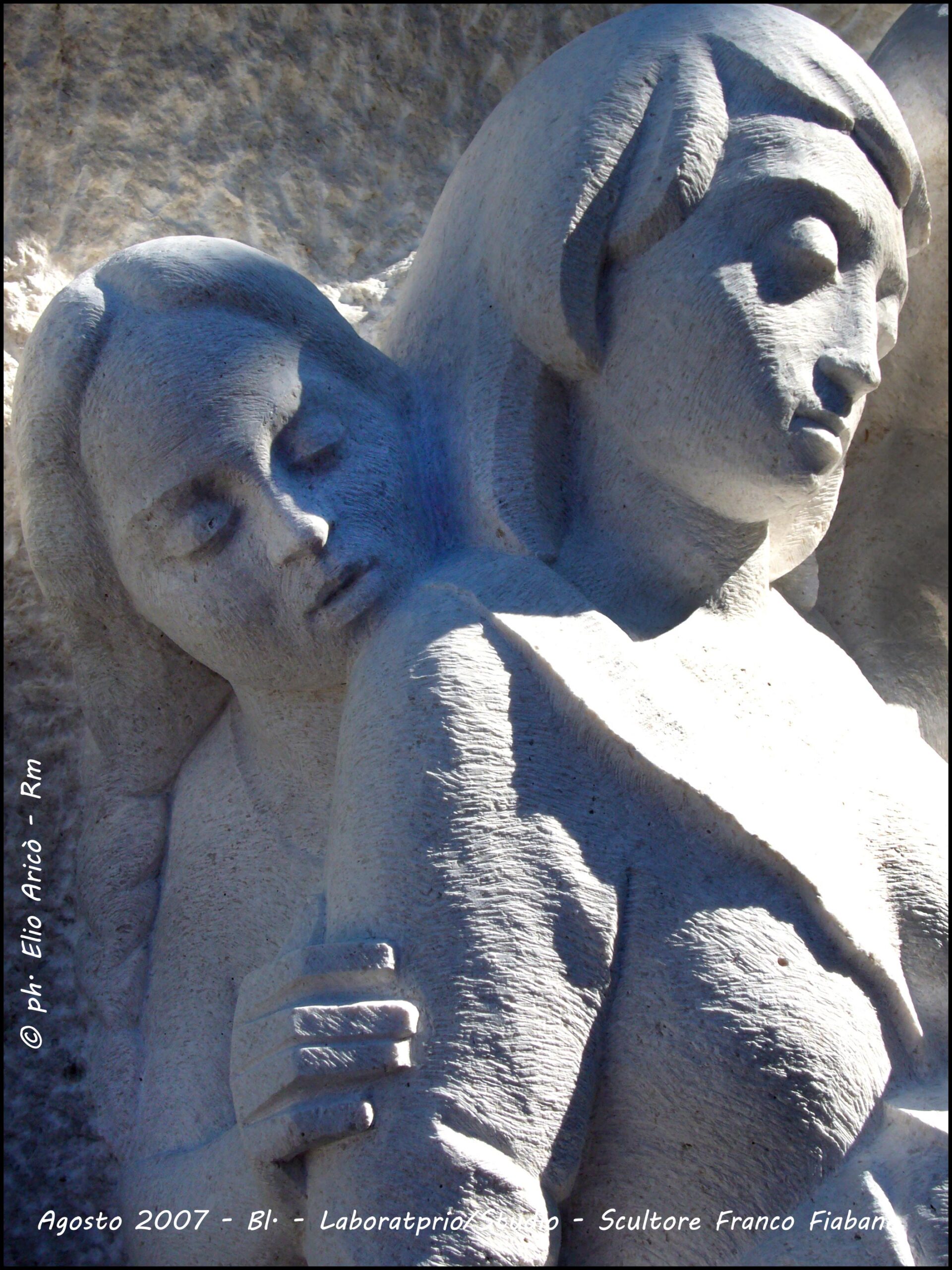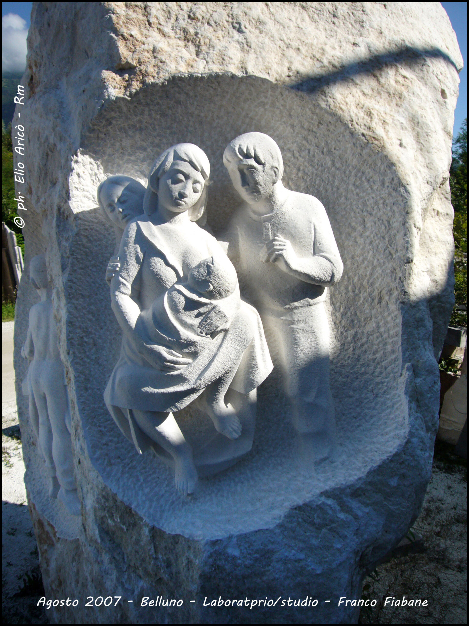 Un dialogo tra arte, memoria e verità emerge dalle fotografie realizzate dal fotografo romano Elio Aricò, dedicate al trittico in marmo di Carrara dello scultore Franco Fiabane, installato nel Cimitero monumentale di Fortogna, frazione di Longarone. L’opera, dedicata alle vittime del Vajont, è una delle più intense testimonianze artistiche della tragedia, scolpita con rigore e devozione da Fiabane, artista-artigiano di rara sensibilità. Fu lo stesso Franco Fiabane, il 24 agosto 2005, ad accompagnare Elio Aricò a Fortogna per mostrargli il monumento completato, dopo che il fotografo lo aveva visto in lavorazione l’anno precedente (vedi raccolta di foto seguenti_2004). Quelle immagini, oltre a documentare con eleganza la potenza del marmo e la profondità del messaggio, assunsero presto un valore speciale per l’artista: “Mi era molto riconoscenti — ricorda Aricò — perché, a suo dire, le fotografie servivano a tacitare le malelingue che cercavano di sminuire il suo lavoro insinuando l’uso del pantografo, la più grave offesa per un vero scultore”. Così, attraverso l’obiettivo di Aricò, il trittico di Fortogna si rivela non solo come monumento alla memoria del Vajont, ma anche come testimonianza di autenticità e orgoglio artigiano, un tributo al valore del fare manuale e alla dedizione di chi, nel marmo, scolpisce anche la propria verità.