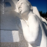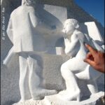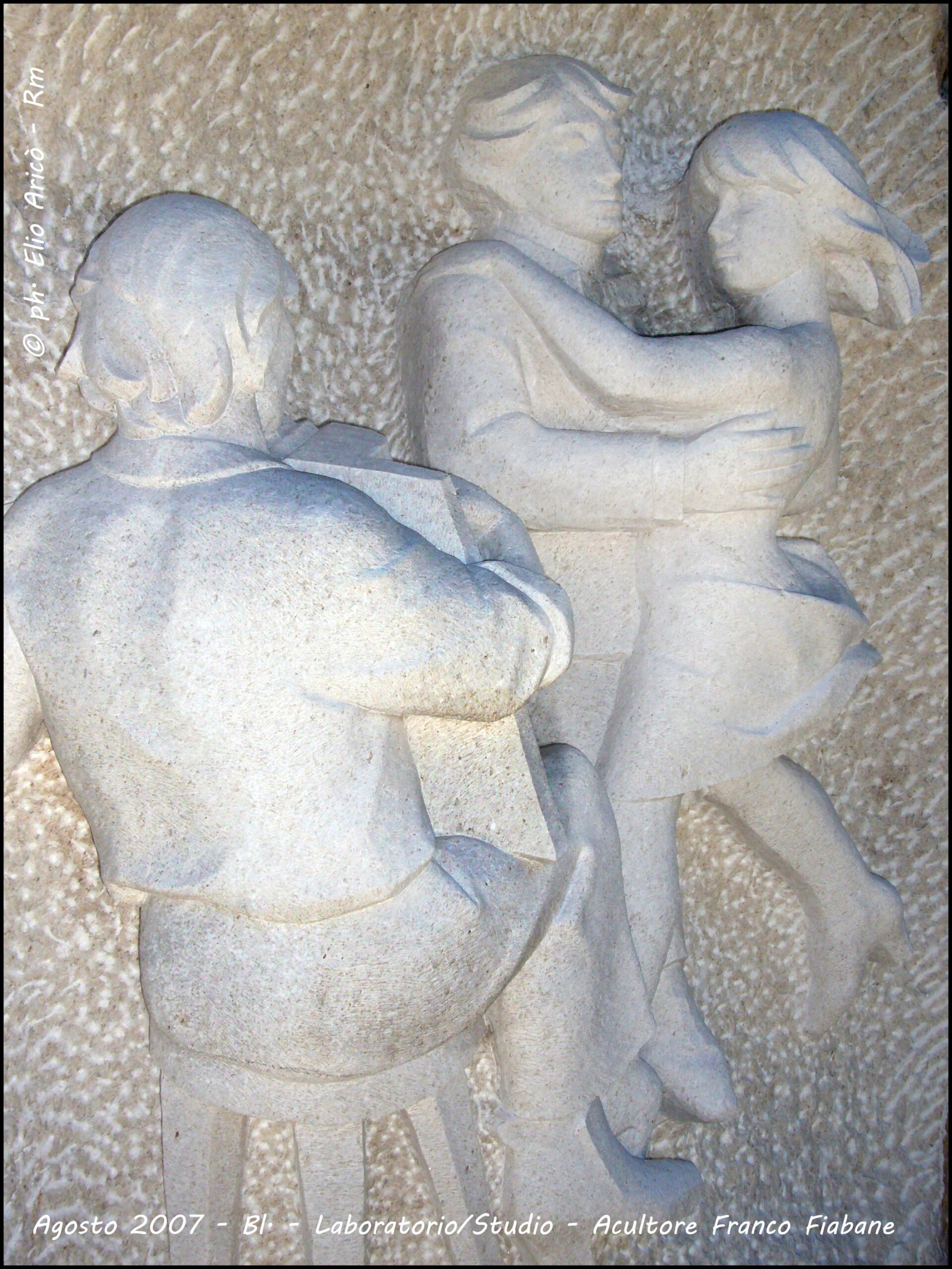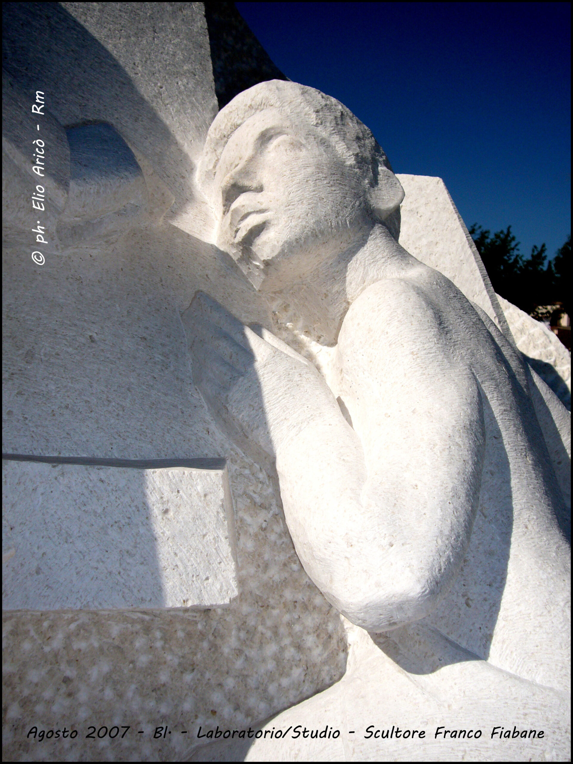 Un dialogo tra arte, memoria e verità emerge dalle fotografie realizzate dal fotografo romano Elio Aricò, dedicate al trittico in marmo di Carrara dello scultore Franco Fiabane, installato nel Cimitero monumentale di Fortogna, frazione di Longarone. L’opera, dedicata alle vittime del Vajont, è una delle più intense testimonianze artistiche della tragedia, scolpita con rigore e devozione da Fiabane, artista-artigiano di rara sensibilità. Fu lo stesso Franco Fiabane, il 24 agosto 2005, ad accompagnare Elio Aricò a Fortogna per mostrargli il monumento completato, dopo che il fotografo lo aveva visto in lavorazione l’anno precedente (vedi raccolta di foto seguenti_2004). Quelle immagini, oltre a documentare con eleganza la potenza del marmo e la profondità del messaggio, assunsero presto un valore speciale per l’artista: “Mi era molto riconoscenti — ricorda Aricò — perché, a suo dire, le fotografie servivano a tacitare le malelingue che cercavano di sminuire il suo lavoro insinuando l’uso del pantografo, la più grave offesa per un vero scultore”. Così, attraverso l’obiettivo di Aricò, il trittico di Fortogna si rivela non solo come monumento alla memoria del Vajont, ma anche come testimonianza di autenticità e orgoglio artigiano, un tributo al valore del fare manuale e alla dedizione di chi, nel marmo, scolpisce anche la propria verità.