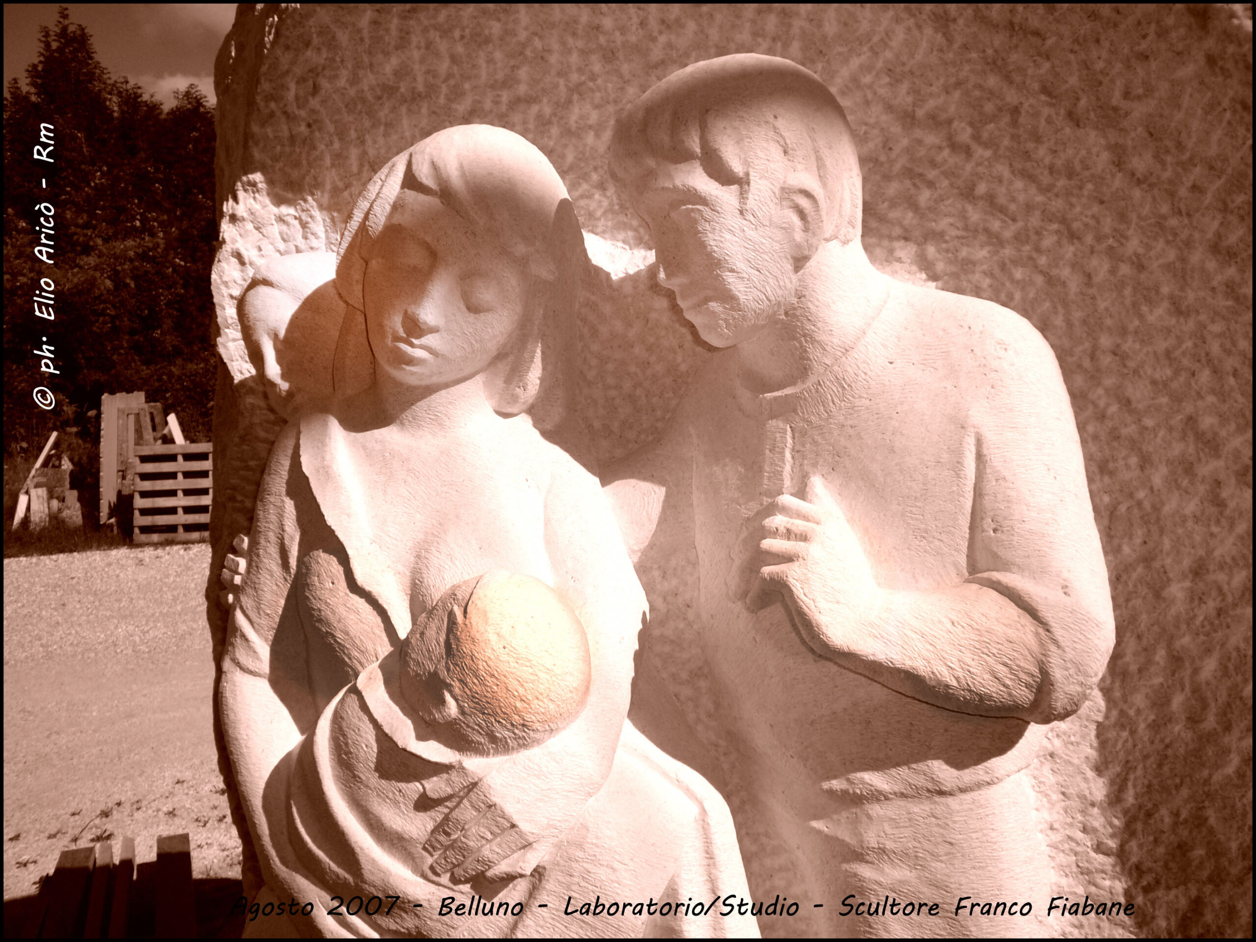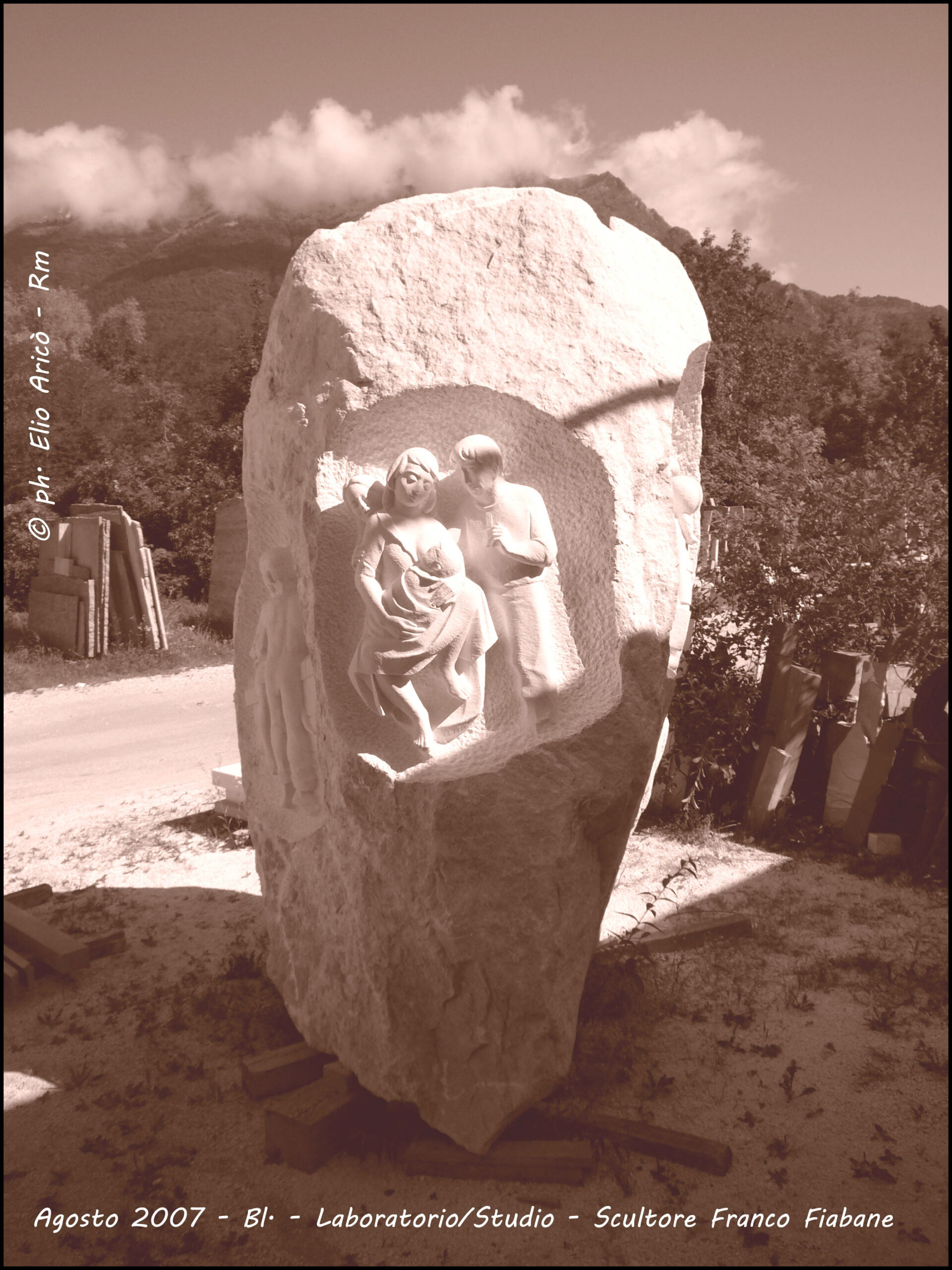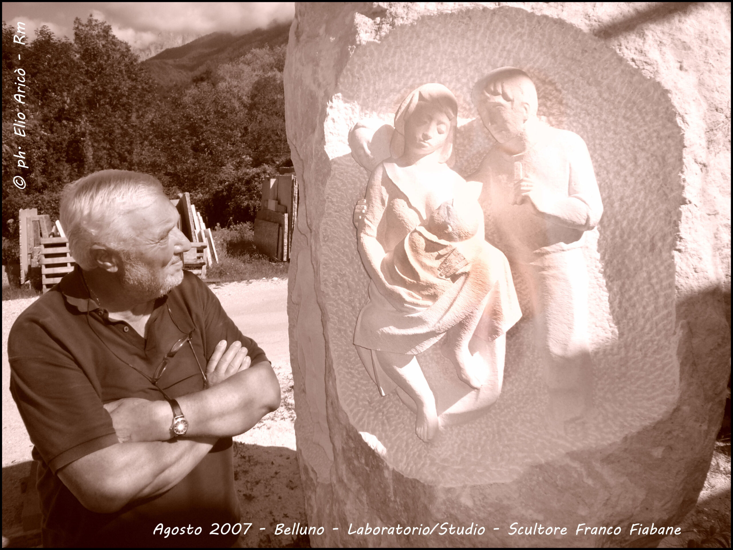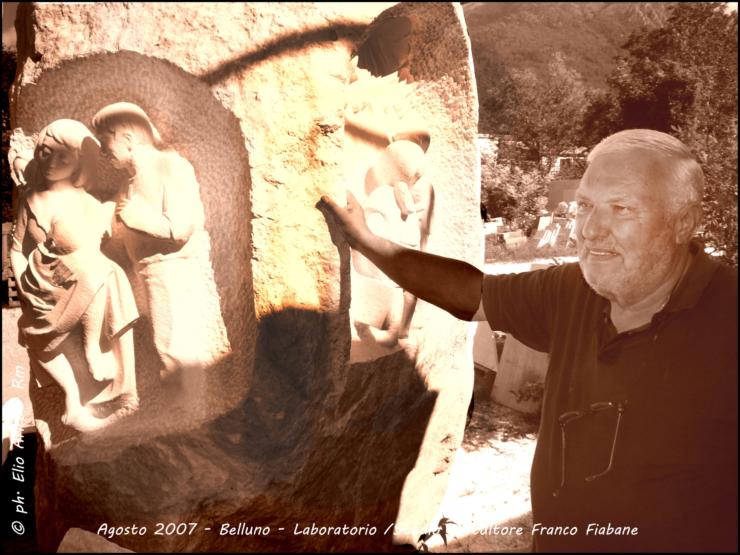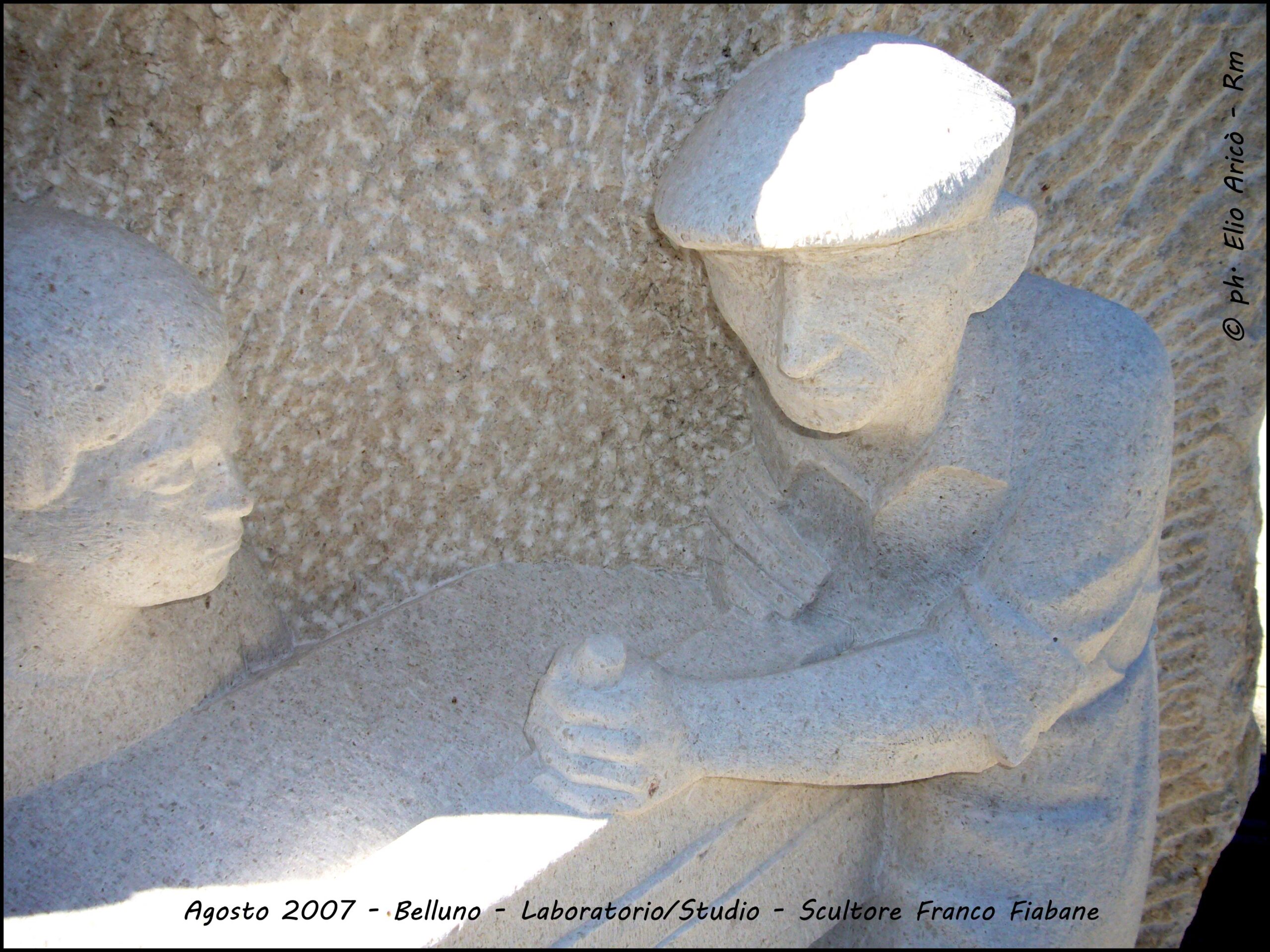Cara Radio Più… allego il primo set di foto dell’agosto 2004 della lavorazione del Monumento alle vittime del Vajont. Comincia così il messaggio di Elio Aricò, che con affetto e riconoscenza ricorda la figura dello scultore Franco Fiabane, artista bellunese scomparso ma ancora vivo nel ricordo di chi lo ha conosciuto e amato. Elio racconta di aver incontrato Franco per la prima volta nel 2002, durante una visita al Museo Augusto Murer di Falcade. Da quell’incontro nacque un’amicizia sincera, nutrita da una profonda stima reciproca e da un comune amore per l’arte. «Si comportava con me come un fratello maggiore — scrive Elio — pieno di attenzioni e gentilezze». Durante le sue vacanze estive a Belluno, Franco gli preparava veri e propri itinerari turistico-artistici, per fargli conoscere le bellezze del territorio e le sue opere disseminate tra chiese, piazze e collezioni private. Un gesto che dice molto dell’uomo oltre che dell’artista: generoso, curioso, sempre desideroso di condividere la bellezza. Tra il 2002 e il 2015, Elio ha documentato fotograficamente il lavoro di Fiabane, raccogliendo un materiale prezioso che non solo restituisce il percorso artistico dello scultore, ma anche un ritratto umano di grande intensità. Le immagini del Monumento alle vittime del Vajont, realizzate nell’agosto 2004, sono solo una parte di questo racconto visivo: testimonianze di un talento capace di unire tecnica e sentimento, materia e memoria. «Franco Fiabane era uno scultore completo — scrive ancora Elio — lavorava con maestria il marmo, il legno, le pietre dure. Personalmente lo reputo un grande artista che si colloca a pieno titolo nella tradizione del Novecento italiano, accanto a nomi come Emilio Greco, Marino Marini e Marcello Mascherini». Un ricordo colmo di gratitudine e ammirazione, quello di Elio, che attraverso le sue fotografie e le sue parole restituisce l’immagine viva di un uomo che ha saputo lasciare il segno non solo nella pietra, ma anche nei cuori.