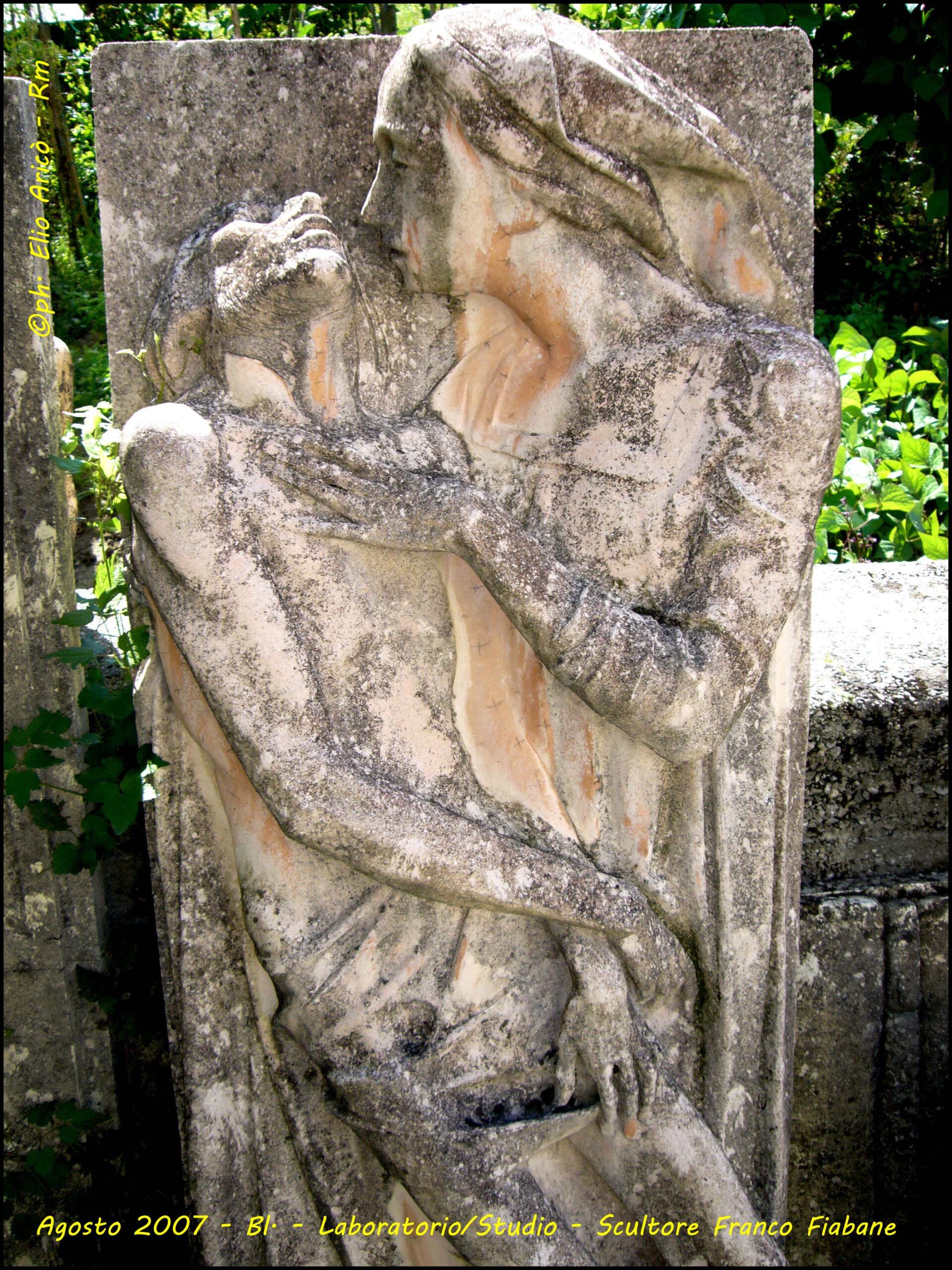 Un dialogo tra arte, memoria e verità emerge dalle fotografie realizzate dal fotografo romano Elio Aricò, dedicate al trittico in marmo di Carrara dello scultore Franco Fiabane, installato nel Cimitero monumentale di Fortogna, frazione di Longarone. L’opera, dedicata alle vittime del Vajont, è una delle più intense testimonianze artistiche della tragedia, scolpita con rigore e devozione da Fiabane, artista-artigiano di rara sensibilità. Fu lo stesso Franco Fiabane, il 24 agosto 2005, ad accompagnare Elio Aricò a Fortogna per mostrargli il monumento completato, dopo che il fotografo lo aveva visto in lavorazione l’anno precedente (vedi raccolta di foto seguenti_2004). Quelle immagini, oltre a documentare con eleganza la potenza del marmo e la profondità del messaggio, assunsero presto un valore speciale per l’artista: “Mi era molto riconoscenti — ricorda Aricò — perché, a suo dire, le fotografie servivano a tacitare le malelingue che cercavano di sminuire il suo lavoro insinuando l’uso del pantografo, la più grave offesa per un vero scultore”. Così, attraverso l’obiettivo di Aricò, il trittico di Fortogna si rivela non solo come monumento alla memoria del Vajont, ma anche come testimonianza di autenticità e orgoglio artigiano, un tributo al valore del fare manuale e alla dedizione di chi, nel marmo, scolpisce anche la propria verità.