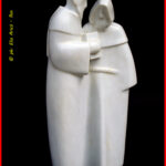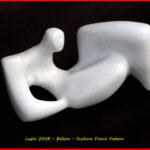 Il fotografo romano Elio Aricò ha inviato un nuovo prezioso contributo fotografico, riportando alla luce un momento intenso e profondamente umano vissuto nell’agosto del 2008. In quell’occasione, Elio e sua moglie Marcella visitarono l’atelier di Franco, maestro scultore capace di unire tecnica, sensibilità e una conoscenza anatomica fuori dal comune. Marcella – presente in alcune delle immagini – venne accolta dallo scultore con grande gentilezza. Franco si soffermò a spiegare le diverse tecniche che stava applicando al blocco “Saga familiare”, opera che già abbiamo avuto modo di commentare (vedi raccolta) e che rappresenta uno dei passaggi più significativi del suo percorso artistico. Non meno affascinante fu il momento dedicato al Cristo ligneo allora in lavorazione. Un’opera che, ricorda Elio, rivelava come pochi la capacità dello scultore di leggere il corpo umano, di comprenderne tensioni, pesi, dolori. Ed è proprio questa padronanza dell’anatomia a dare alla figura del Cristo in Croce quella forza drammatica che non è semplice rappresentazione, ma esperienza emotiva: la sofferenza dell’uomo che teme di essere abbandonato dal suo Dio. Elio Aricò, nel suo messaggio, accompagna le fotografie con un pensiero carico di stima e gratitudine, definendo quell’incontro una testimonianza viva della grandezza umana e artistica di Franco.