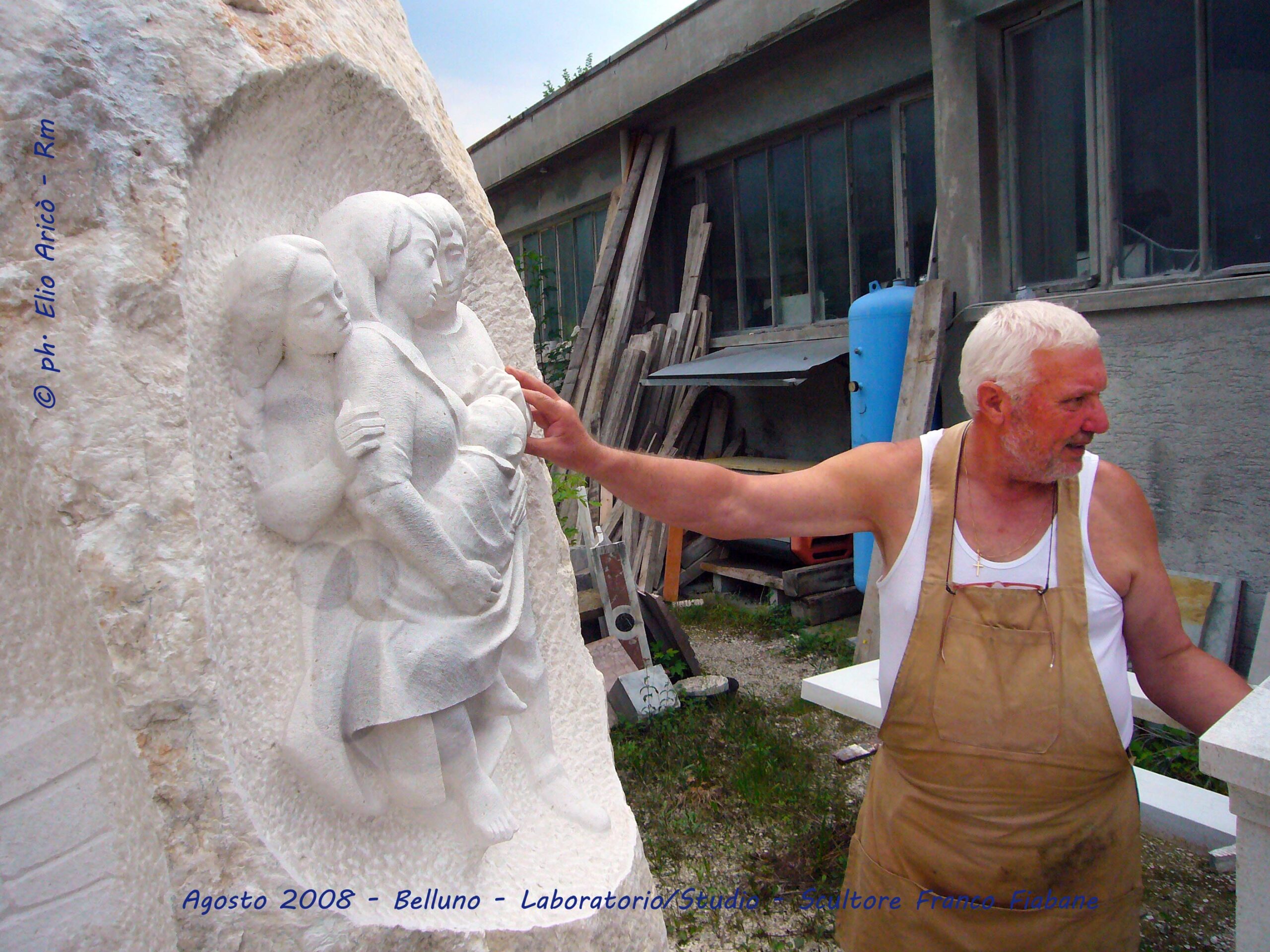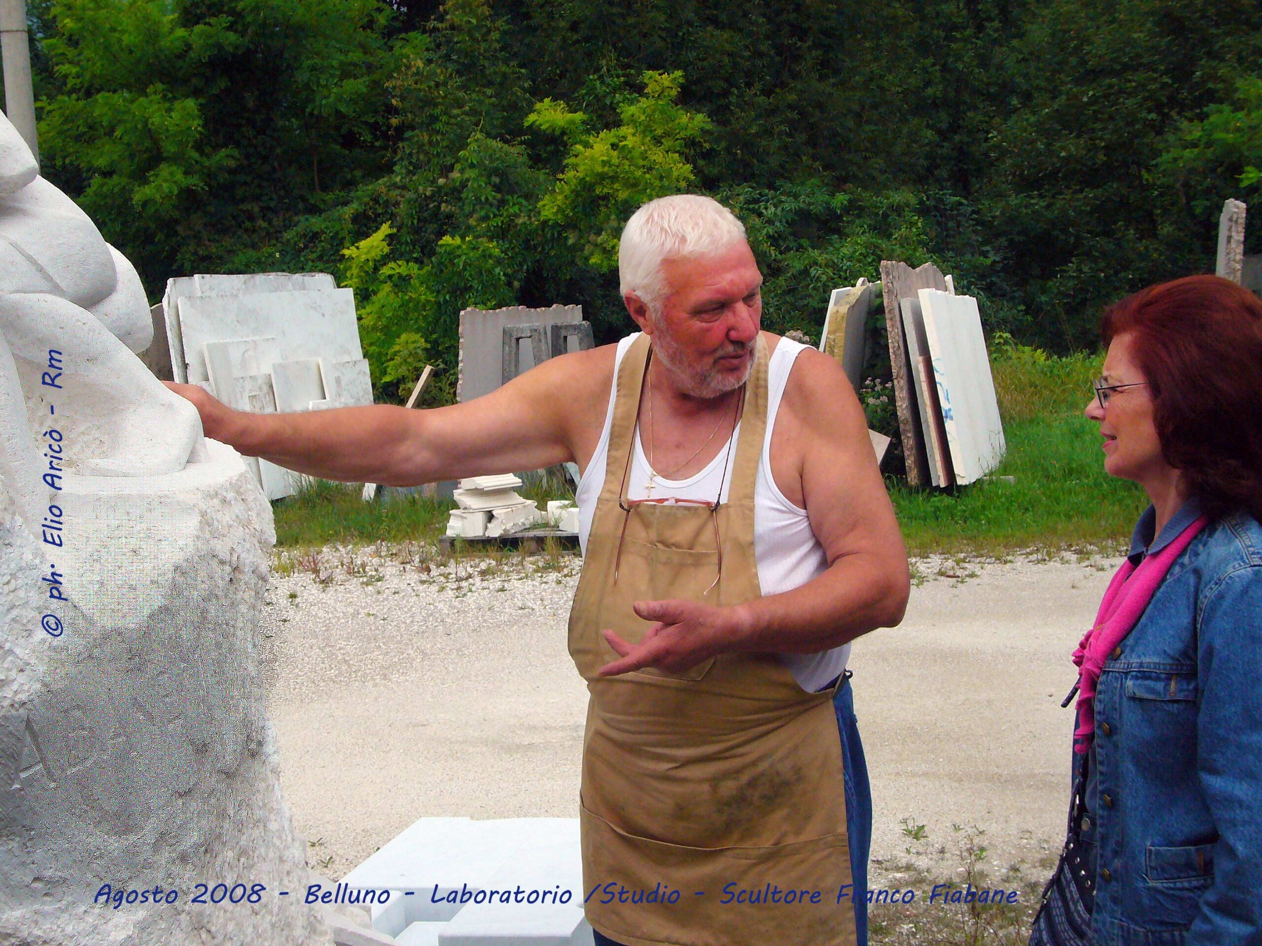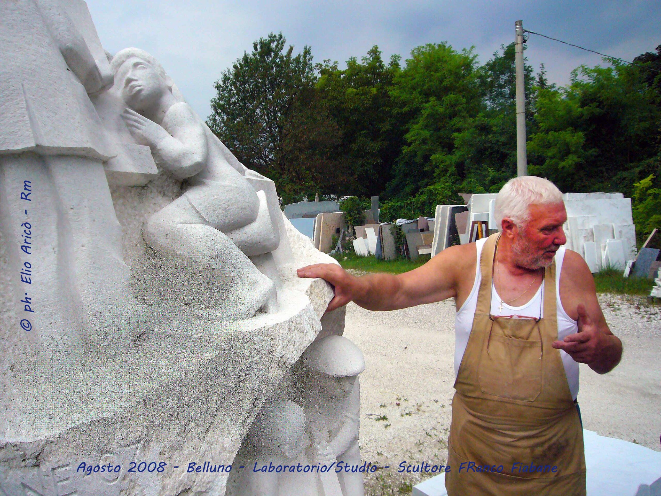 Cara Radio Più… allego il primo set di foto dell’agosto 2004 della lavorazione del Monumento alle vittime del Vajont. Comincia così il messaggio di Elio Aricò, che con affetto e riconoscenza ricorda la figura dello scultore Franco Fiabane, artista bellunese scomparso ma ancora vivo nel ricordo di chi lo ha conosciuto e amato. Elio racconta di aver incontrato Franco per la prima volta nel 2002, durante una visita al Museo Augusto Murer di Falcade. Da quell’incontro nacque un’amicizia sincera, nutrita da una profonda stima reciproca e da un comune amore per l’arte. «Si comportava con me come un fratello maggiore — scrive Elio — pieno di attenzioni e gentilezze». Durante le sue vacanze estive a Belluno, Franco gli preparava veri e propri itinerari turistico-artistici, per fargli conoscere le bellezze del territorio e le sue opere disseminate tra chiese, piazze e collezioni private. Un gesto che dice molto dell’uomo oltre che dell’artista: generoso, curioso, sempre desideroso di condividere la bellezza. Tra il 2002 e il 2015, Elio ha documentato fotograficamente il lavoro di Fiabane, raccogliendo un materiale prezioso che non solo restituisce il percorso artistico dello scultore, ma anche un ritratto umano di grande intensità. Le immagini del Monumento alle vittime del Vajont, realizzate nell’agosto 2004, sono solo una parte di questo racconto visivo: testimonianze di un talento capace di unire tecnica e sentimento, materia e memoria. «Franco Fiabane era uno scultore completo — scrive ancora Elio — lavorava con maestria il marmo, il legno, le pietre dure. Personalmente lo reputo un grande artista che si colloca a pieno titolo nella tradizione del Novecento italiano, accanto a nomi come Emilio Greco, Marino Marini e Marcello Mascherini». Un ricordo colmo di gratitudine e ammirazione, quello di Elio, che attraverso le sue fotografie e le sue parole restituisce l’immagine viva di un uomo che ha saputo lasciare il segno non solo nella pietra, ma anche nei cuori.