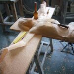 Sono i modelli che Franco aveva posizionato nel retro dello studio a confine con l’orto, che nel tempo libero amava coltivare. Lo facevo sorridere perché l’avevo chiamato ” il giardino delle meraviglie ” , i manufatti si erano integrati perfettamente nell’ambiente . Elio