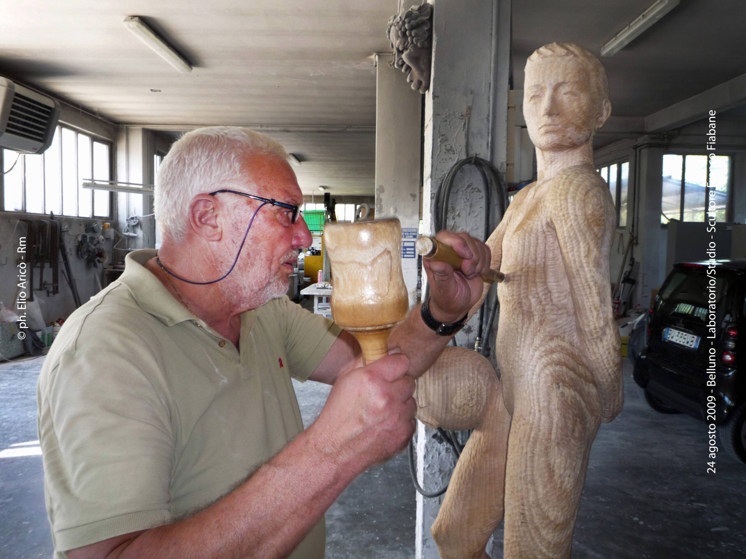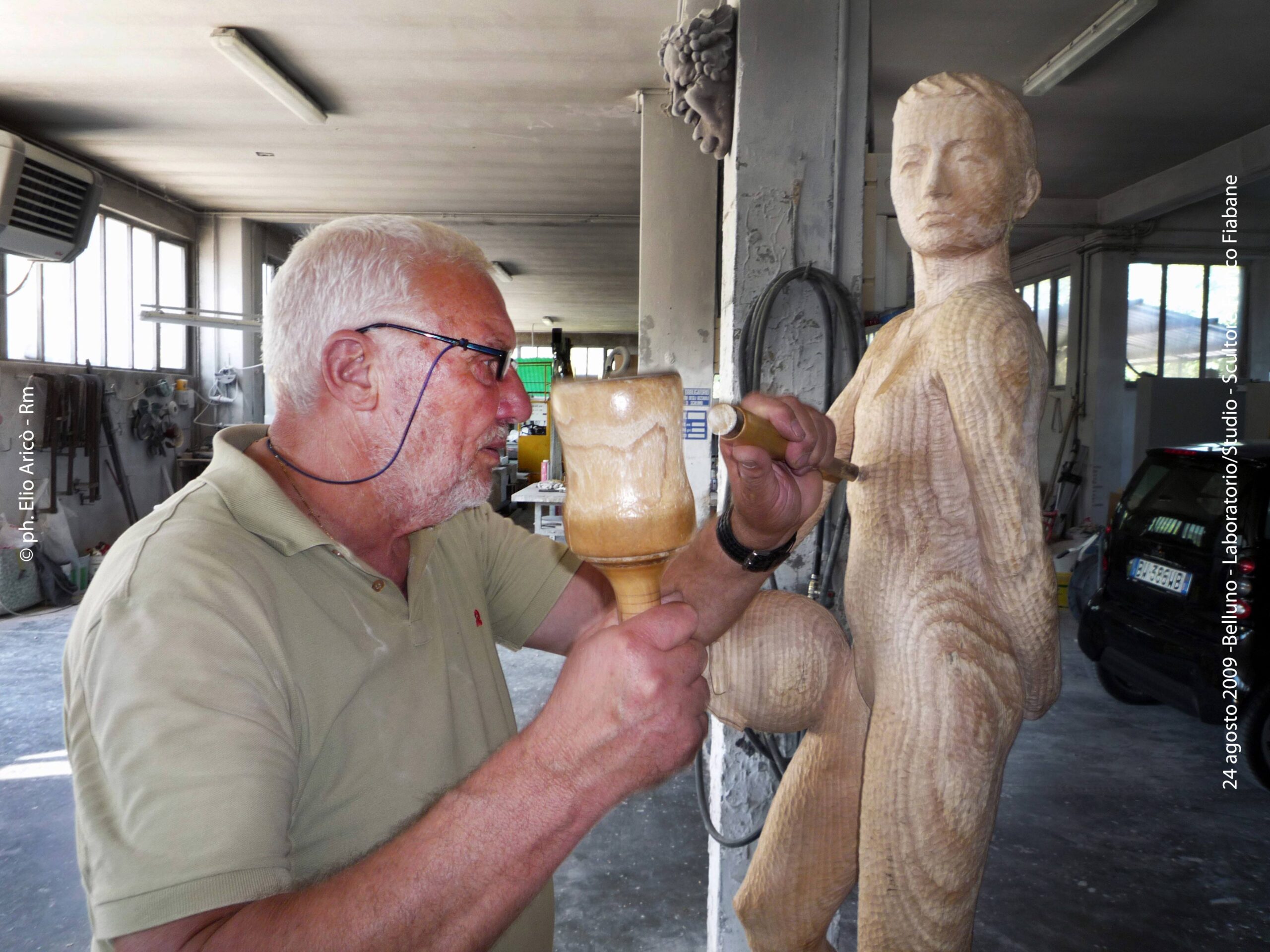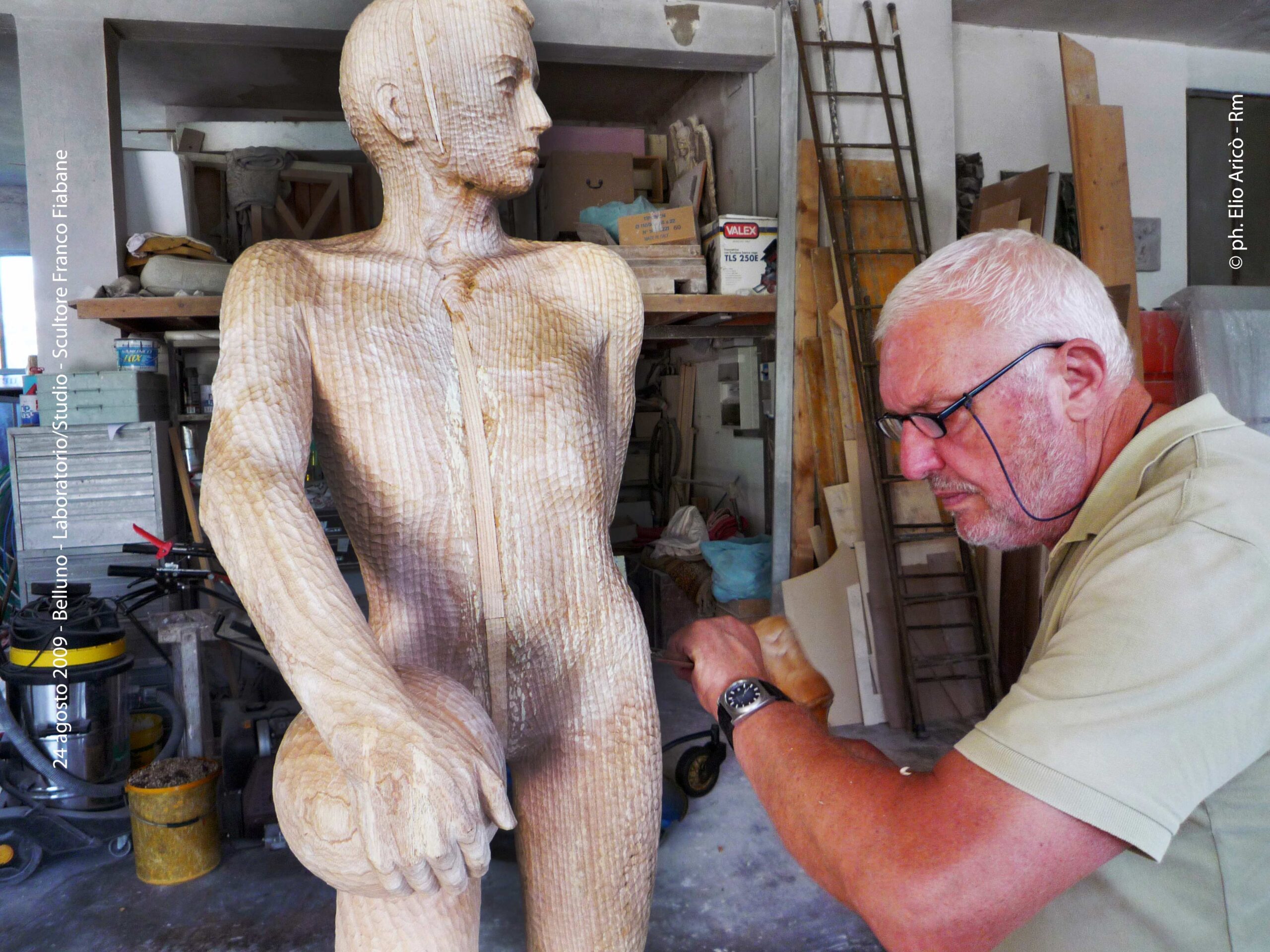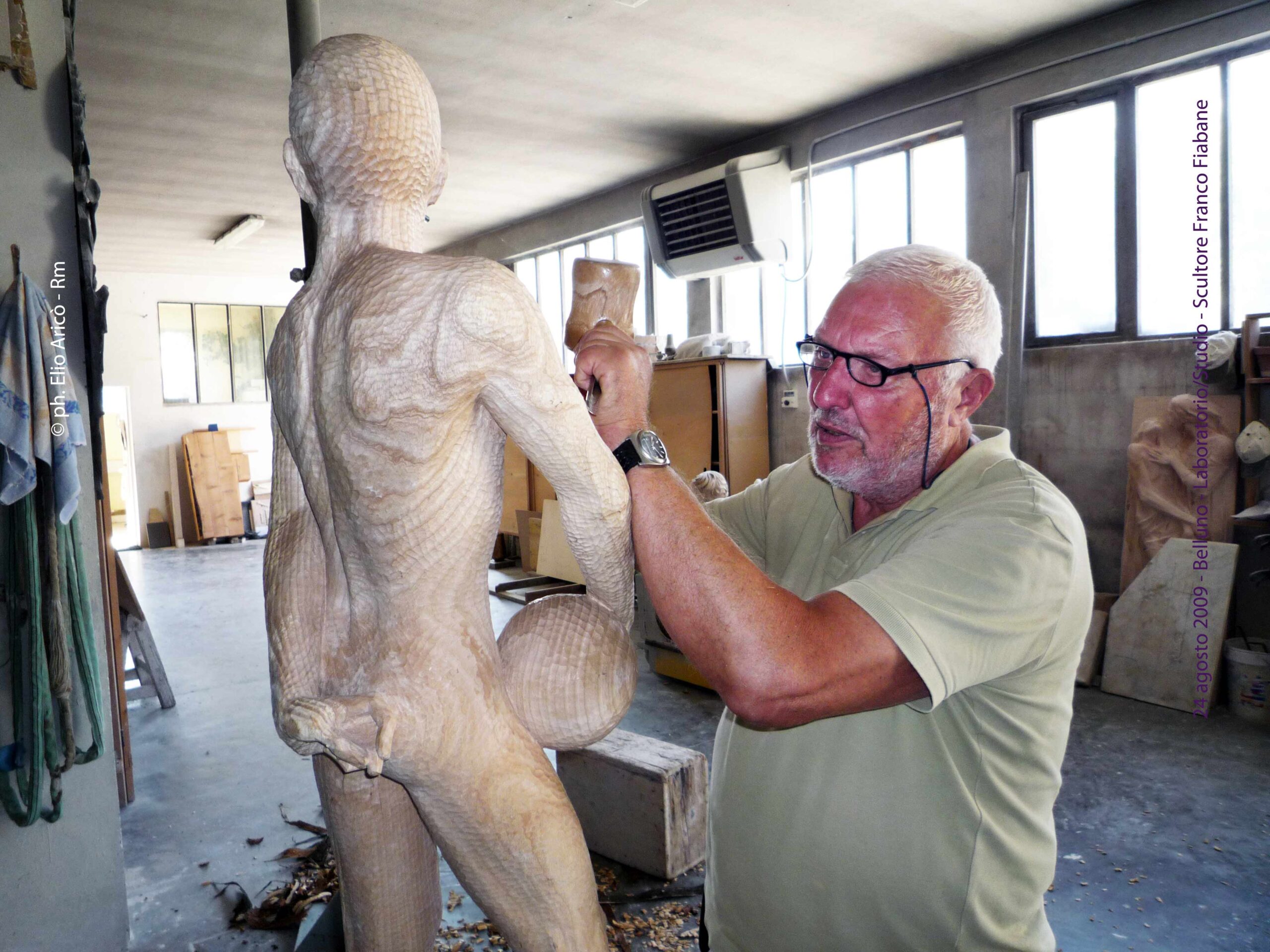 Il fotografo romano Elio Aricò apre il suo archivio e condivide con i lettori di Radiopiù un prezioso ricordo dell’artista bellunese Franco Fiabane. Un racconto per immagini e memoria che risale all’estate del 2009, quando Aricò seguì passo dopo passo la nascita della scultura lignea Il pallanuotista, documentandone l’intero processo creativo dal 10 luglio al 24 agosto. «Al primo impatto – racconta il fotografo – mi sono trovato di fronte a una figura classica, che richiamava gli atleti scolpiti nel marmo negli anni Trenta al Foro Italico». Un’impressione immediata di forza, equilibrio e bellezza che lo spinse a osservare e immortalare ogni gesto dell’artista. A una visione superficiale, le immagini possono sembrare simili tra loro. Ma è l’occhio attento a cogliere ciò che Aricò definisce «un vero manuale di tecnica scultorea»: il mazzuolo e lo scalpello che, nelle mani esperte di Fiabane, trasformano: la materia che si apre, si assottiglia, prende vita. Giorno dopo giorno la figura del pallanuotista diventava sempre più espressiva, rivelando una sorprendente armonia tra muscoli, ossa e venature naturali del legno. «La scultura, pur non essendo ancora definitiva, si faceva sempre più realistica ed esteticamente coinvolgente», ricorda Aricò. L’ultimo scatto è una piccola opera nell’opera: una composizione naturale di trucioli, residui della lavorazione, che chiude idealmente il percorso creativo.