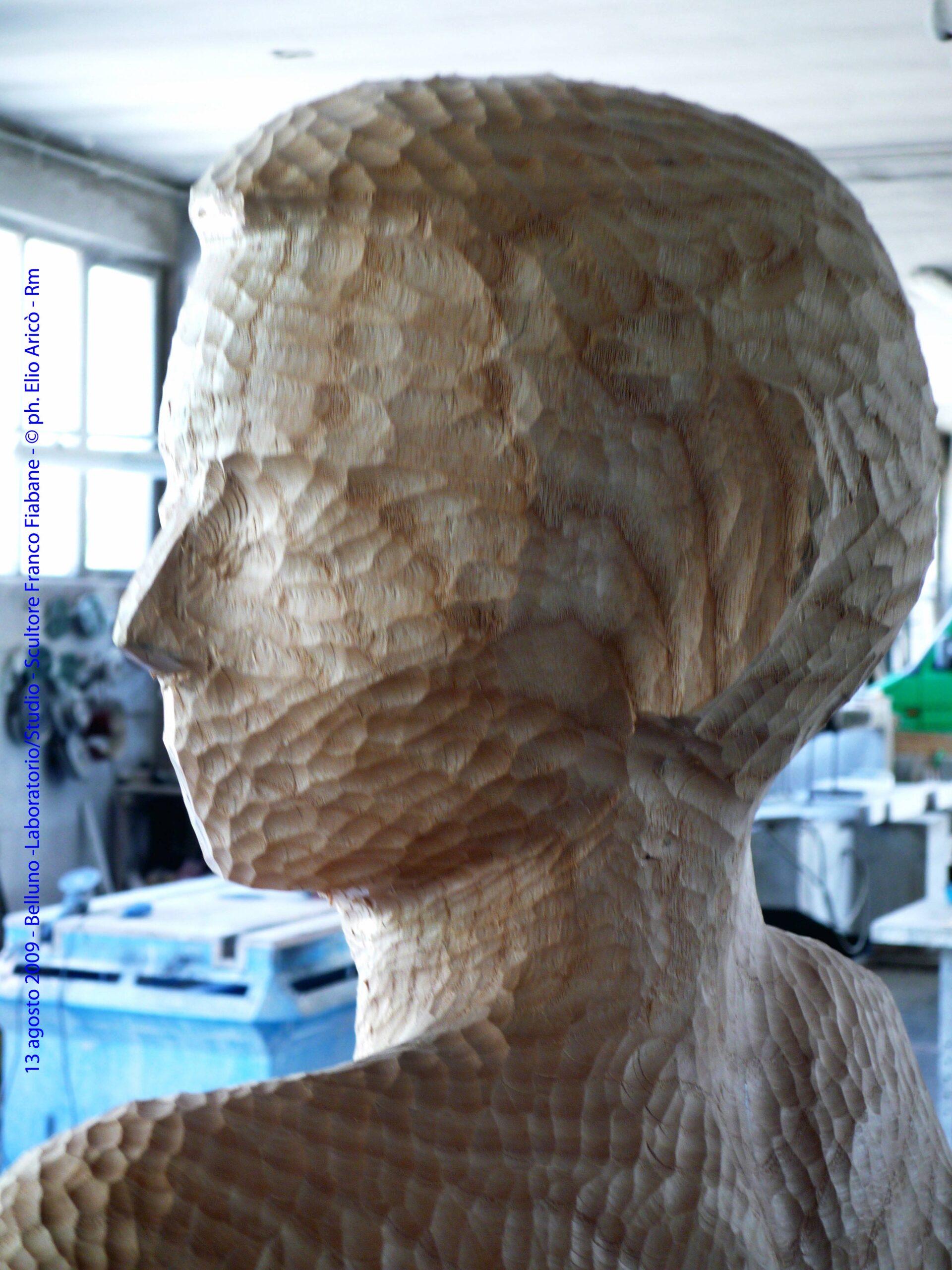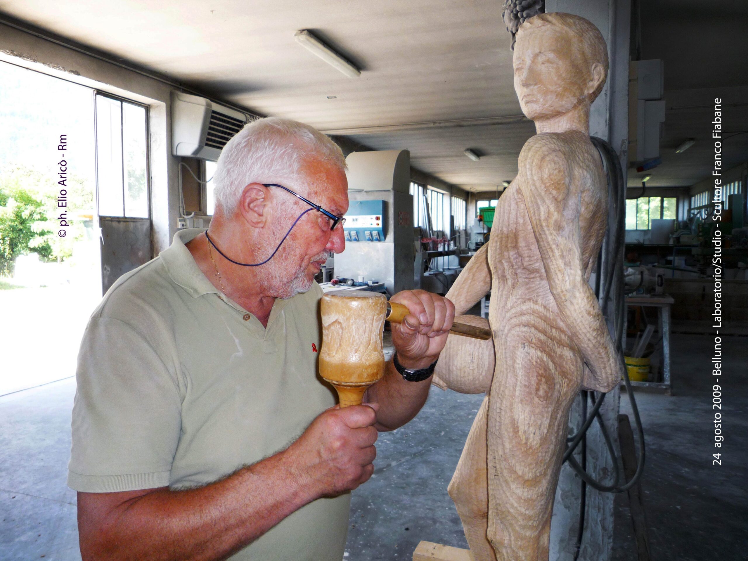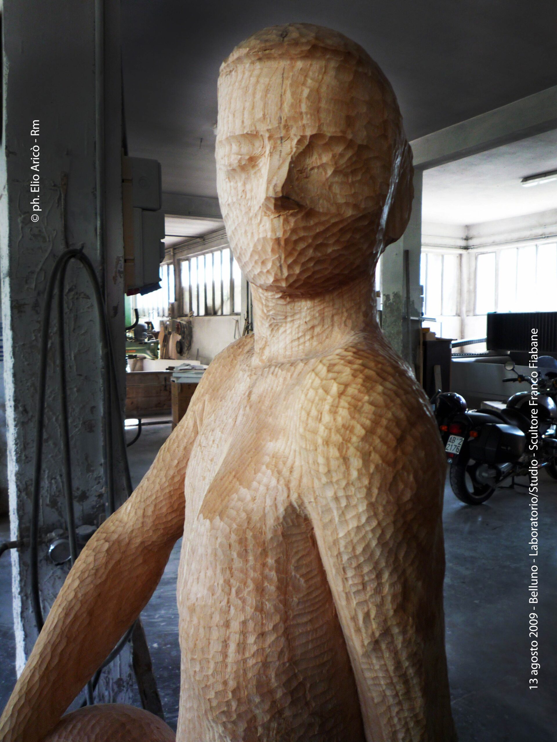 Il fotografo romano Elio Aricò apre il suo archivio e condivide con i lettori di Radiopiù un prezioso ricordo dell’artista bellunese Franco Fiabane. Un racconto per immagini e memoria che risale all’estate del 2009, quando Aricò seguì passo dopo passo la nascita della scultura lignea Il pallanuotista, documentandone l’intero processo creativo dal 10 luglio al 24 agosto. «Al primo impatto – racconta il fotografo – mi sono trovato di fronte a una figura classica, che richiamava gli atleti scolpiti nel marmo negli anni Trenta al Foro Italico». Un’impressione immediata di forza, equilibrio e bellezza che lo spinse a osservare e immortalare ogni gesto dell’artista. A una visione superficiale, le immagini possono sembrare simili tra loro. Ma è l’occhio attento a cogliere ciò che Aricò definisce «un vero manuale di tecnica scultorea»: il mazzuolo e lo scalpello che, nelle mani esperte di Fiabane, trasformano: la materia che si apre, si assottiglia, prende vita. Giorno dopo giorno la figura del pallanuotista diventava sempre più espressiva, rivelando una sorprendente armonia tra muscoli, ossa e venature naturali del legno. «La scultura, pur non essendo ancora definitiva, si faceva sempre più realistica ed esteticamente coinvolgente», ricorda Aricò. L’ultimo scatto è una piccola opera nell’opera: una composizione naturale di trucioli, residui della lavorazione, che chiude idealmente il percorso creativo.