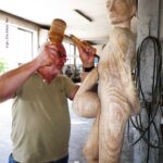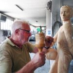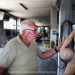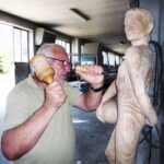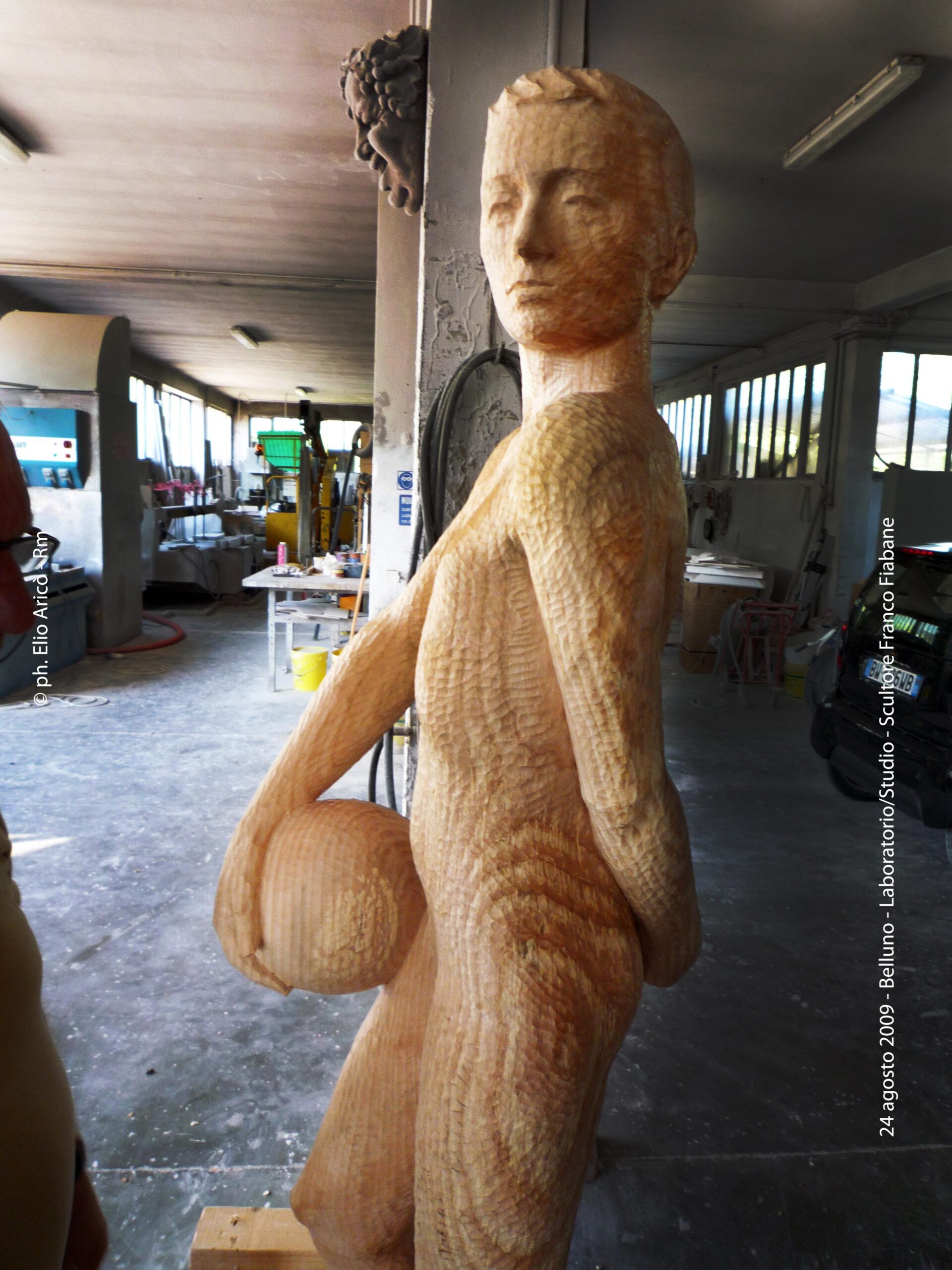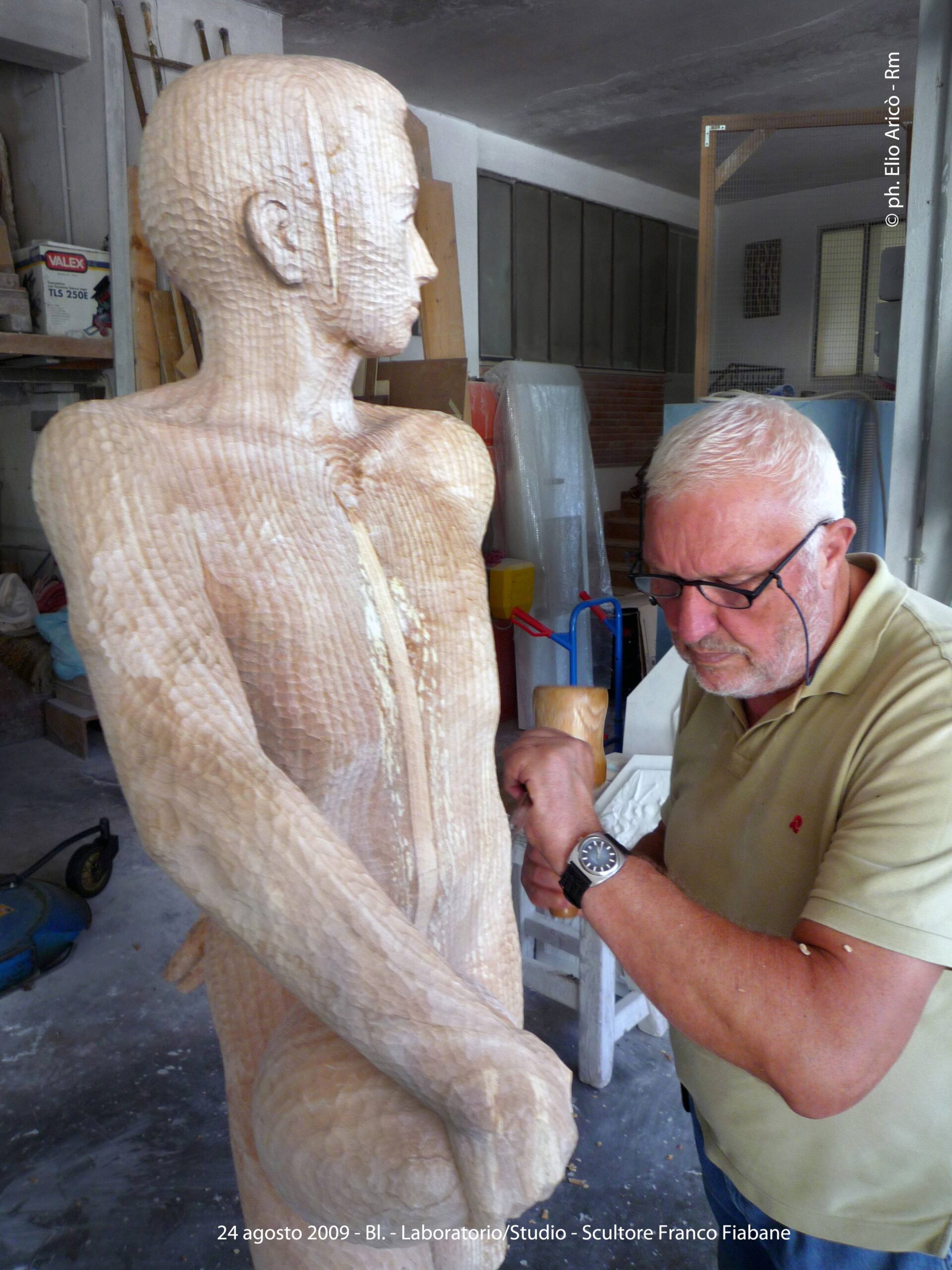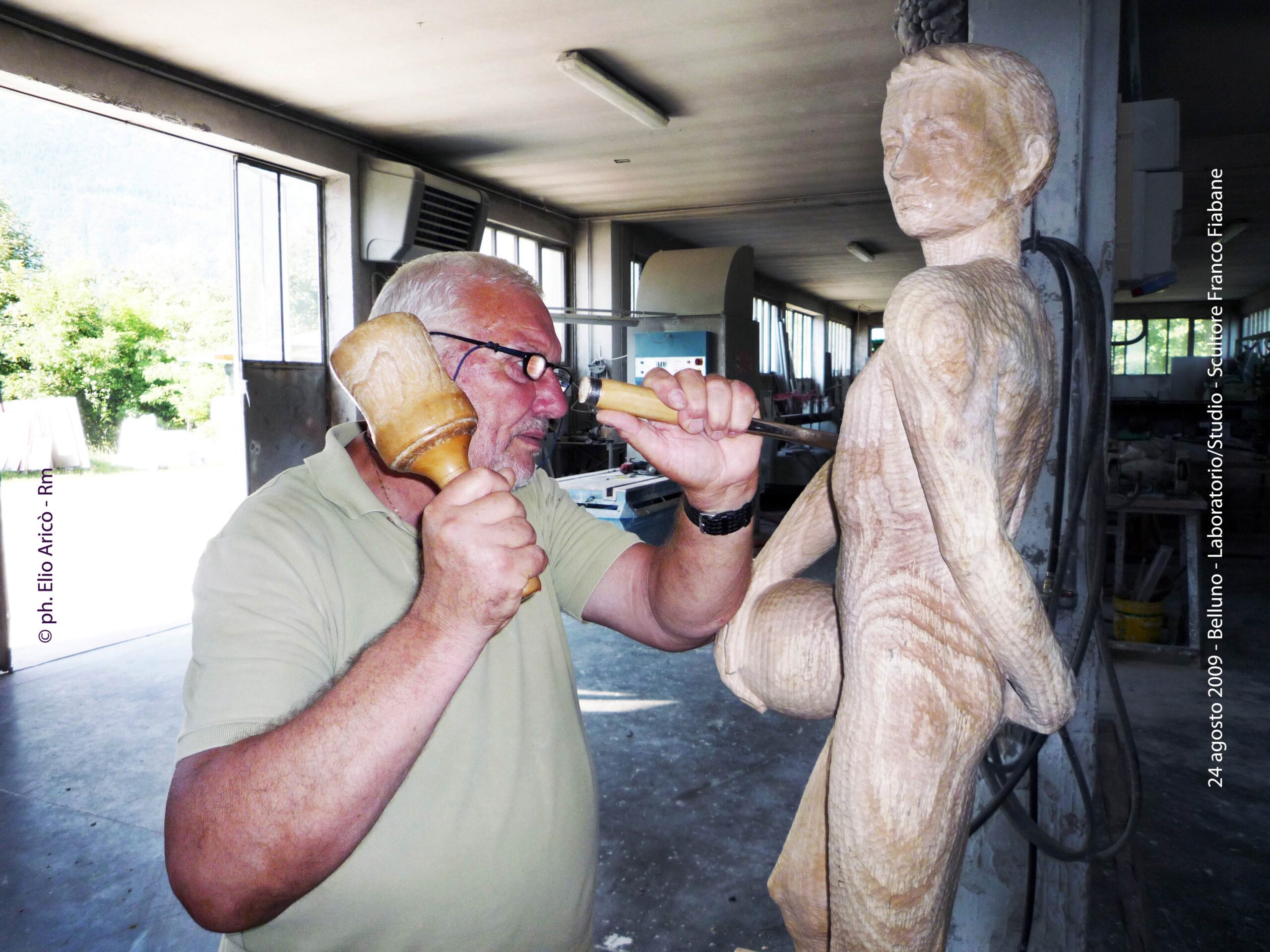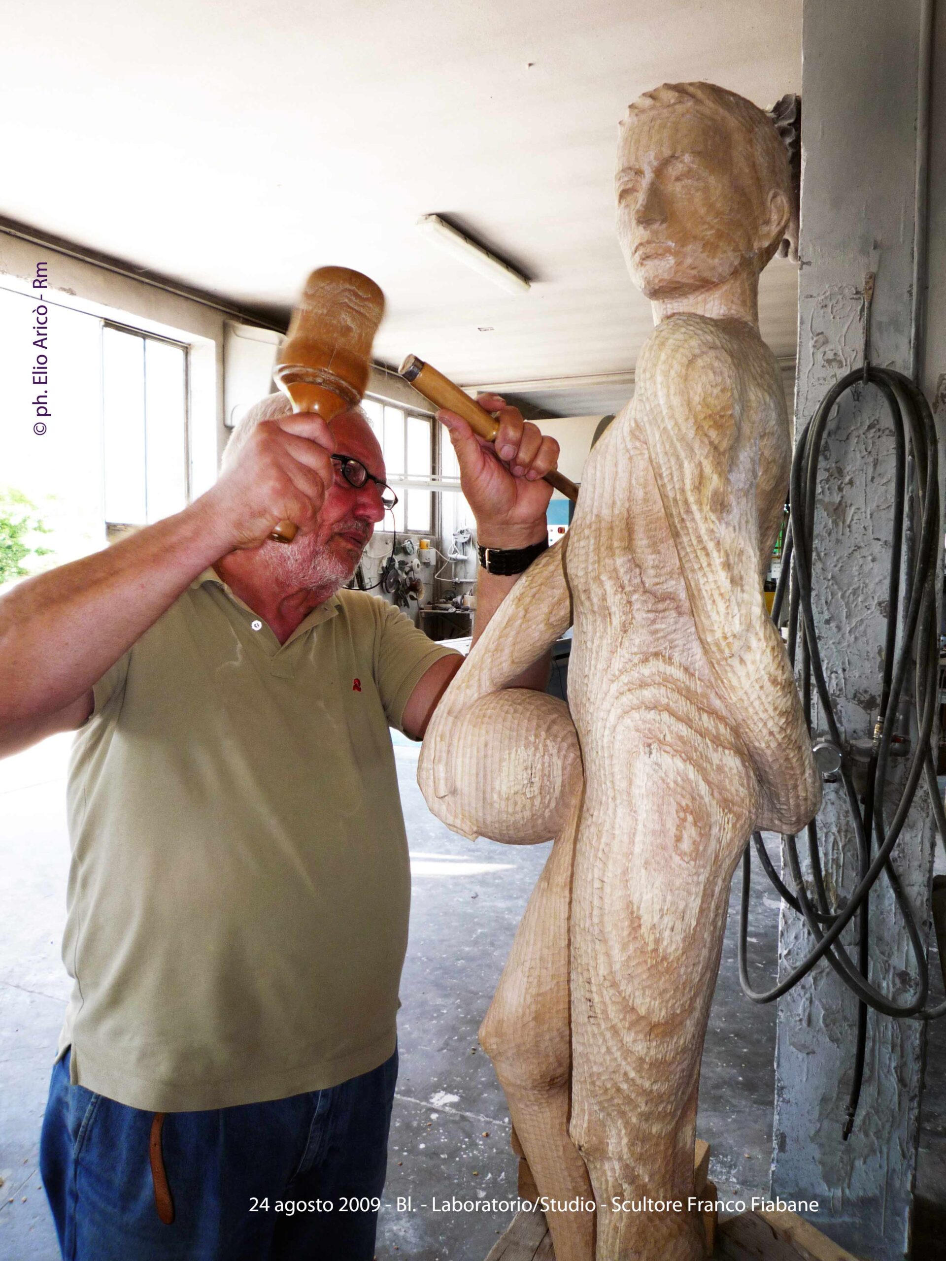 Il fotografo romano Elio Aricò apre il suo archivio e condivide con i lettori di Radiopiù un prezioso ricordo dell’artista bellunese Franco Fiabane. Un racconto per immagini e memoria che risale all’estate del 2009, quando Aricò seguì passo dopo passo la nascita della scultura lignea Il pallanuotista, documentandone l’intero processo creativo dal 10 luglio al 24 agosto. «Al primo impatto – racconta il fotografo – mi sono trovato di fronte a una figura classica, che richiamava gli atleti scolpiti nel marmo negli anni Trenta al Foro Italico». Un’impressione immediata di forza, equilibrio e bellezza che lo spinse a osservare e immortalare ogni gesto dell’artista. A una visione superficiale, le immagini possono sembrare simili tra loro. Ma è l’occhio attento a cogliere ciò che Aricò definisce «un vero manuale di tecnica scultorea»: il mazzuolo e lo scalpello che, nelle mani esperte di Fiabane, trasformano: la materia che si apre, si assottiglia, prende vita. Giorno dopo giorno la figura del pallanuotista diventava sempre più espressiva, rivelando una sorprendente armonia tra muscoli, ossa e venature naturali del legno. «La scultura, pur non essendo ancora definitiva, si faceva sempre più realistica ed esteticamente coinvolgente», ricorda Aricò. L’ultimo scatto è una piccola opera nell’opera: una composizione naturale di trucioli, residui della lavorazione, che chiude idealmente il percorso creativo.