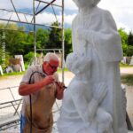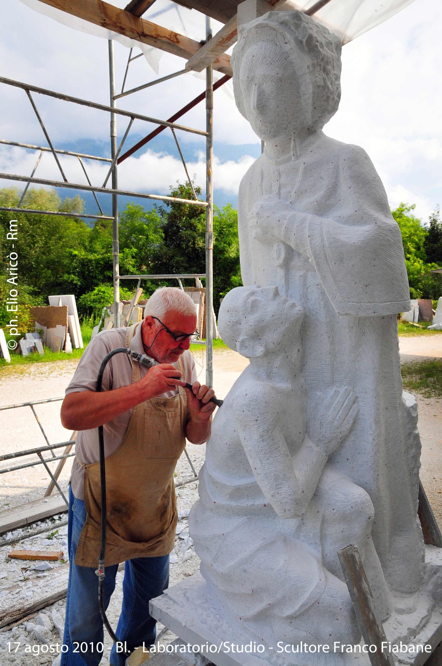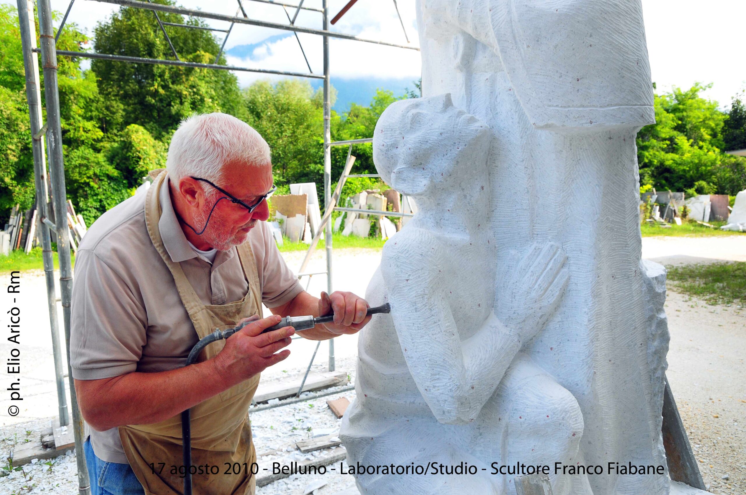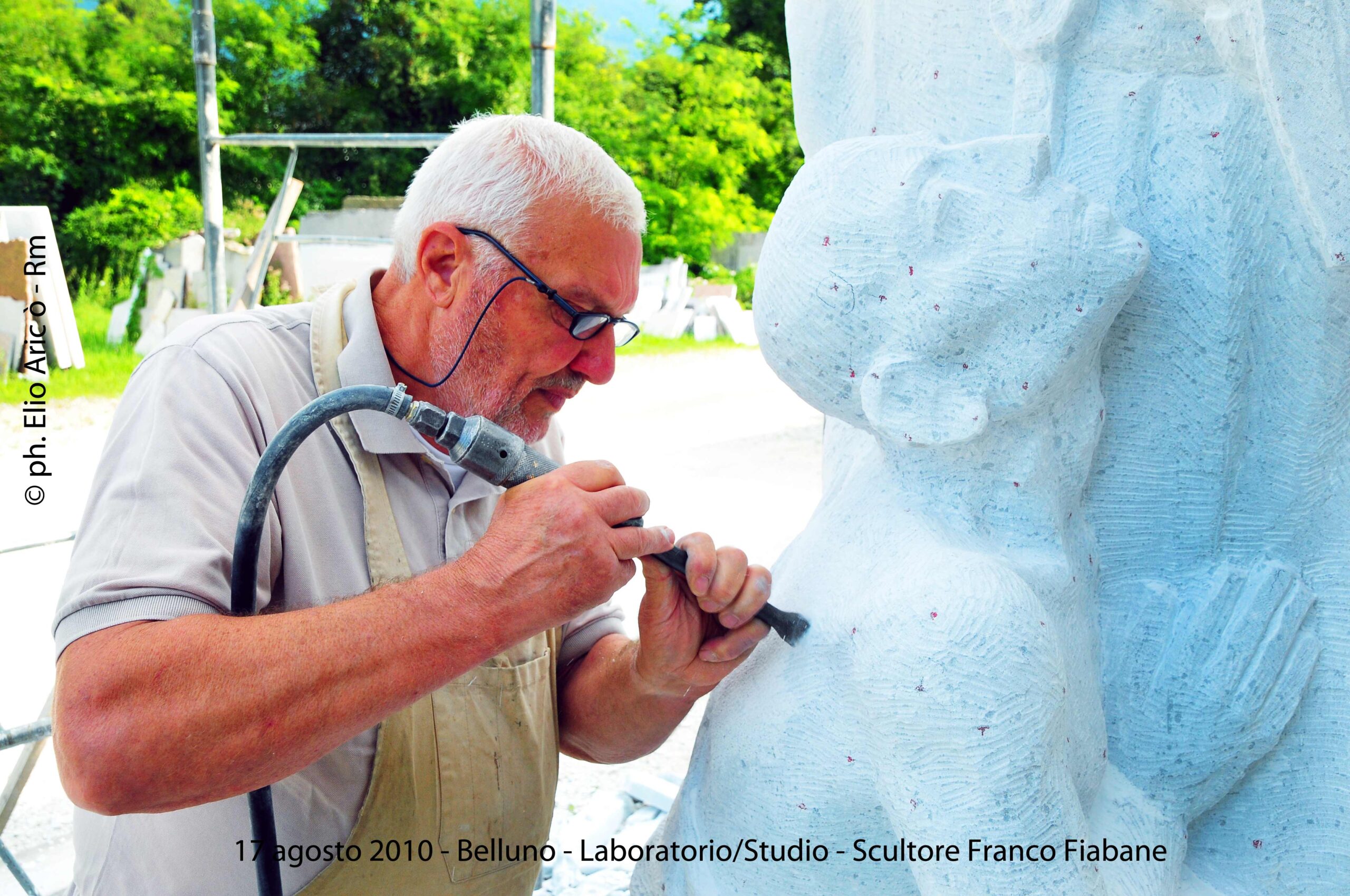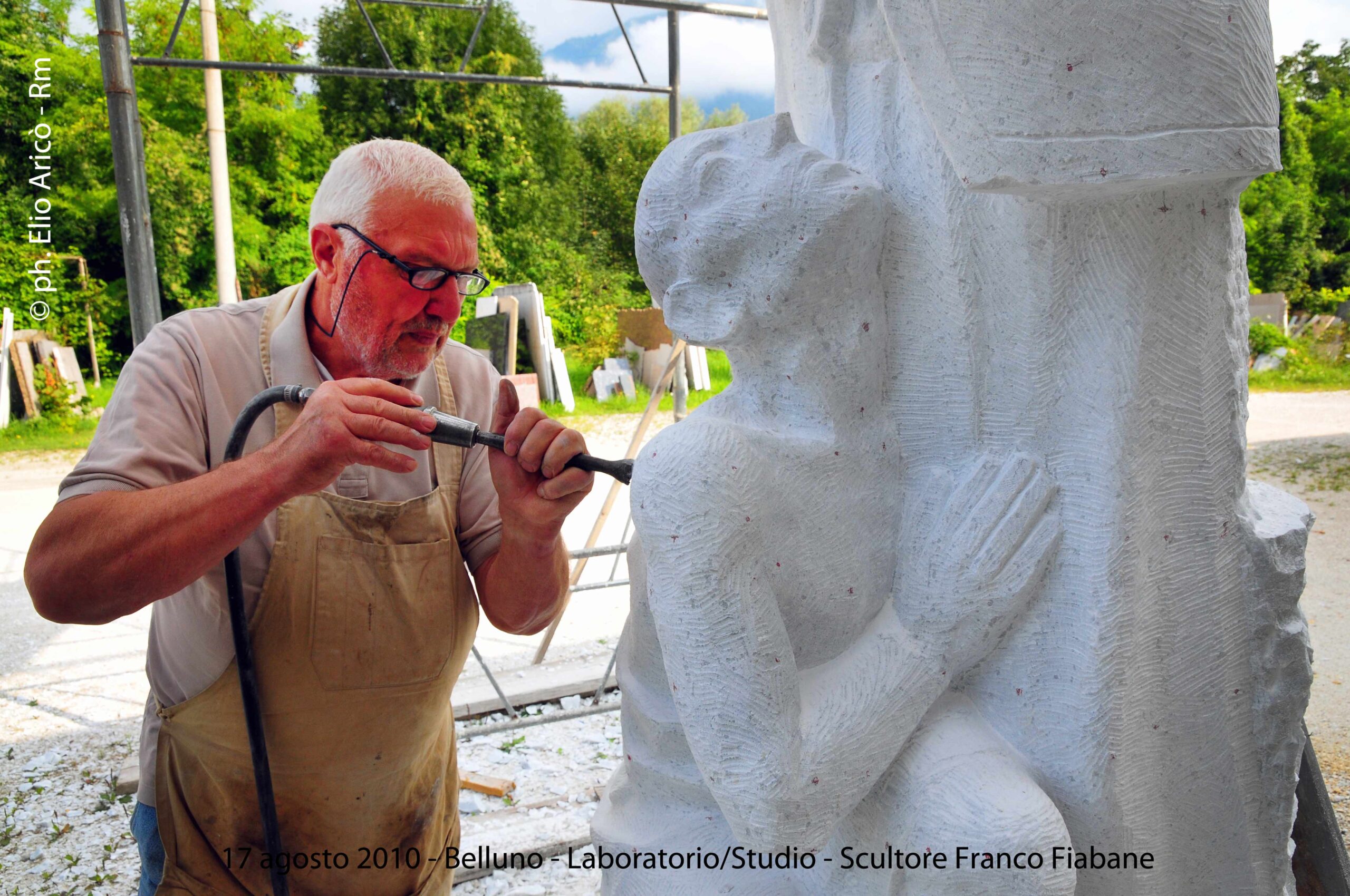 Cara Radio Più… allego il primo set di foto dell’agosto 2004 della lavorazione del Monumento alle vittime del Vajont. Comincia così il messaggio di Elio Aricò, che con affetto e riconoscenza ricorda la figura dello scultore Franco Fiabane, artista bellunese scomparso ma ancora vivo nel ricordo di chi lo ha conosciuto e amato. Elio racconta di aver incontrato Franco per la prima volta nel 2002, durante una visita al Museo Augusto Murer di Falcade. Da quell’incontro nacque un’amicizia sincera, nutrita da una profonda stima reciproca e da un comune amore per l’arte. «Si comportava con me come un fratello maggiore — scrive Elio — pieno di attenzioni e gentilezze». Durante le sue vacanze estive a Belluno, Franco gli preparava veri e propri itinerari turistico-artistici, per fargli conoscere le bellezze del territorio e le sue opere disseminate tra chiese, piazze e collezioni private. Un gesto che dice molto dell’uomo oltre che dell’artista: generoso, curioso, sempre desideroso di condividere la bellezza. Tra il 2002 e il 2015, Elio ha documentato fotograficamente il lavoro di Fiabane, raccogliendo un materiale prezioso che non solo restituisce il percorso artistico dello scultore, ma anche un ritratto umano di grande intensità. Le immagini del Monumento alle vittime del Vajont, realizzate nell’agosto 2004, sono solo una parte di questo racconto visivo: testimonianze di un talento capace di unire tecnica e sentimento, materia e memoria. «Franco Fiabane era uno scultore completo — scrive ancora Elio — lavorava con maestria il marmo, il legno, le pietre dure. Personalmente lo reputo un grande artista che si colloca a pieno titolo nella tradizione del Novecento italiano, accanto a nomi come Emilio Greco, Marino Marini e Marcello Mascherini». Un ricordo colmo di gratitudine e ammirazione, quello di Elio, che attraverso le sue fotografie e le sue parole restituisce l’immagine viva di un uomo che ha saputo lasciare il segno non solo nella pietra, ma anche nei cuori.