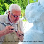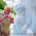 Il fotografo romano Elio Aricò ha inviato un nuovo prezioso contributo fotografico, riportando alla luce un momento intenso e profondamente umano vissuto nell’agosto del 2008. In quell’occasione, Elio e sua moglie Marcella visitarono l’atelier di Franco, maestro scultore capace di unire tecnica, sensibilità e una conoscenza anatomica fuori dal comune. Marcella – presente in alcune delle immagini – venne accolta dallo scultore con grande gentilezza. Franco si soffermò a spiegare le diverse tecniche che stava applicando al blocco “Saga familiare”, opera che già abbiamo avuto modo di commentare (vedi raccolta) e che rappresenta uno dei passaggi più significativi del suo percorso artistico. Non meno affascinante fu il momento dedicato al Cristo ligneo allora in lavorazione. Un’opera che, ricorda Elio, rivelava come pochi la capacità dello scultore di leggere il corpo umano, di comprenderne tensioni, pesi, dolori. Ed è proprio questa padronanza dell’anatomia a dare alla figura del Cristo in Croce quella forza drammatica che non è semplice rappresentazione, ma esperienza emotiva: la sofferenza dell’uomo che teme di essere abbandonato dal suo Dio. Elio Aricò, nel suo messaggio, accompagna le fotografie con un pensiero carico di stima e gratitudine, definendo quell’incontro una testimonianza viva della grandezza umana e artistica di Franco.