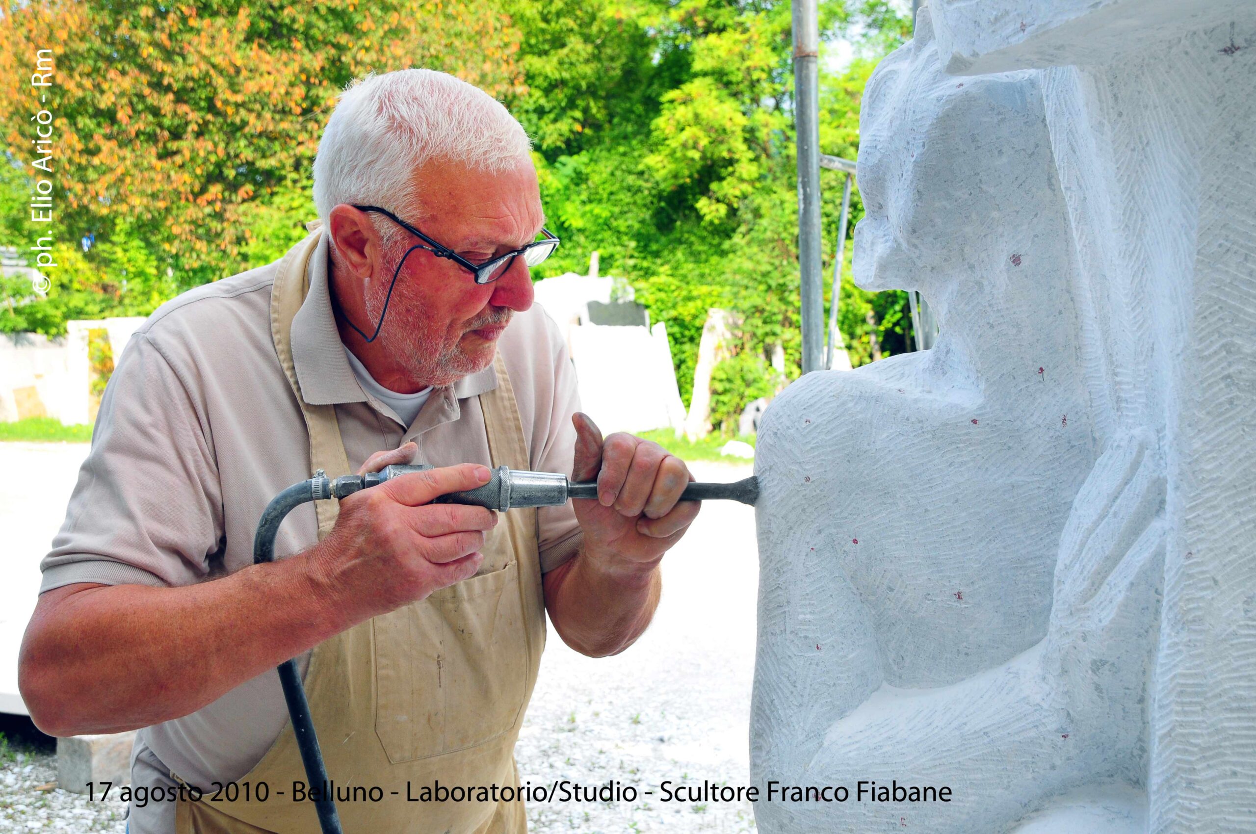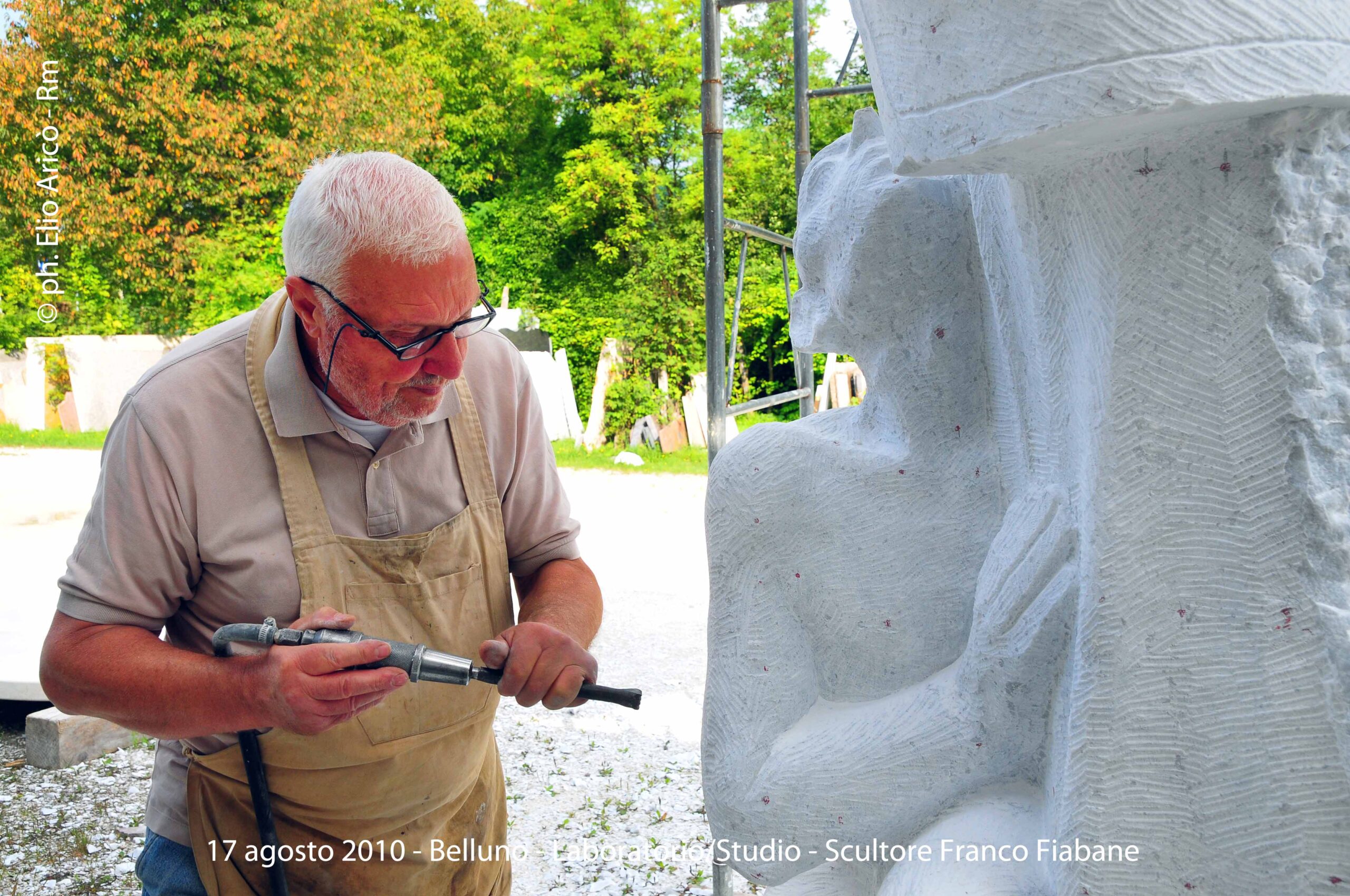 Cara Radio Più… allego il primo set di foto dell’agosto 2004 della lavorazione del Monumento alle vittime del Vajont. Comincia così il messaggio di Elio Aricò, che con affetto e riconoscenza ricorda la figura dello scultore Franco Fiabane, artista bellunese scomparso ma ancora vivo nel ricordo di chi lo ha conosciuto e amato. Elio racconta di aver incontrato Franco per la prima volta nel 2002, durante una visita al Museo Augusto Murer di Falcade. Da quell’incontro nacque un’amicizia sincera, nutrita da una profonda stima reciproca e da un comune amore per l’arte. «Si comportava con me come un fratello maggiore — scrive Elio — pieno di attenzioni e gentilezze». Durante le sue vacanze estive a Belluno, Franco gli preparava veri e propri itinerari turistico-artistici, per fargli conoscere le bellezze del territorio e le sue opere disseminate tra chiese, piazze e collezioni private. Un gesto che dice molto dell’uomo oltre che dell’artista: generoso, curioso, sempre desideroso di condividere la bellezza. Tra il 2002 e il 2015, Elio ha documentato fotograficamente il lavoro di Fiabane, raccogliendo un materiale prezioso che non solo restituisce il percorso artistico dello scultore, ma anche un ritratto umano di grande intensità. Le immagini del Monumento alle vittime del Vajont, realizzate nell’agosto 2004, sono solo una parte di questo racconto visivo: testimonianze di un talento capace di unire tecnica e sentimento, materia e memoria. «Franco Fiabane era uno scultore completo — scrive ancora Elio — lavorava con maestria il marmo, il legno, le pietre dure. Personalmente lo reputo un grande artista che si colloca a pieno titolo nella tradizione del Novecento italiano, accanto a nomi come Emilio Greco, Marino Marini e Marcello Mascherini». Un ricordo colmo di gratitudine e ammirazione, quello di Elio, che attraverso le sue fotografie e le sue parole restituisce l’immagine viva di un uomo che ha saputo lasciare il segno non solo nella pietra, ma anche nei cuori.