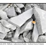 Un dialogo tra arte, memoria e verità emerge dalle fotografie realizzate dal fotografo romano Elio Aricò, dedicate al trittico in marmo di Carrara dello scultore Franco Fiabane, installato nel Cimitero monumentale di Fortogna, frazione di Longarone. L’opera, dedicata alle vittime del Vajont, è una delle più intense testimonianze artistiche della tragedia, scolpita con rigore e devozione da Fiabane, artista-artigiano di rara sensibilità. Fu lo stesso Franco Fiabane, il 24 agosto 2005, ad accompagnare Elio Aricò a Fortogna per mostrargli il monumento completato, dopo che il fotografo lo aveva visto in lavorazione l’anno precedente (vedi raccolta di foto seguenti_2004). Quelle immagini, oltre a documentare con eleganza la potenza del marmo e la profondità del messaggio, assunsero presto un valore speciale per l’artista: “Mi era molto riconoscenti — ricorda Aricò — perché, a suo dire, le fotografie servivano a tacitare le malelingue che cercavano di sminuire il suo lavoro insinuando l’uso del pantografo, la più grave offesa per un vero scultore”. Così, attraverso l’obiettivo di Aricò, il trittico di Fortogna si rivela non solo come monumento alla memoria del Vajont, ma anche come testimonianza di autenticità e orgoglio artigiano, un tributo al valore del fare manuale e alla dedizione di chi, nel marmo, scolpisce anche la propria verità.