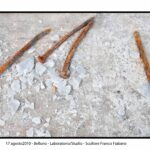 Sono i modelli che Franco aveva posizionato nel retro dello studio a confine con l’orto, che nel tempo libero amava coltivare. Lo facevo sorridere perché l’avevo chiamato ” il giardino delle meraviglie ” , i manufatti si erano integrati perfettamente nell’ambiente . Elio