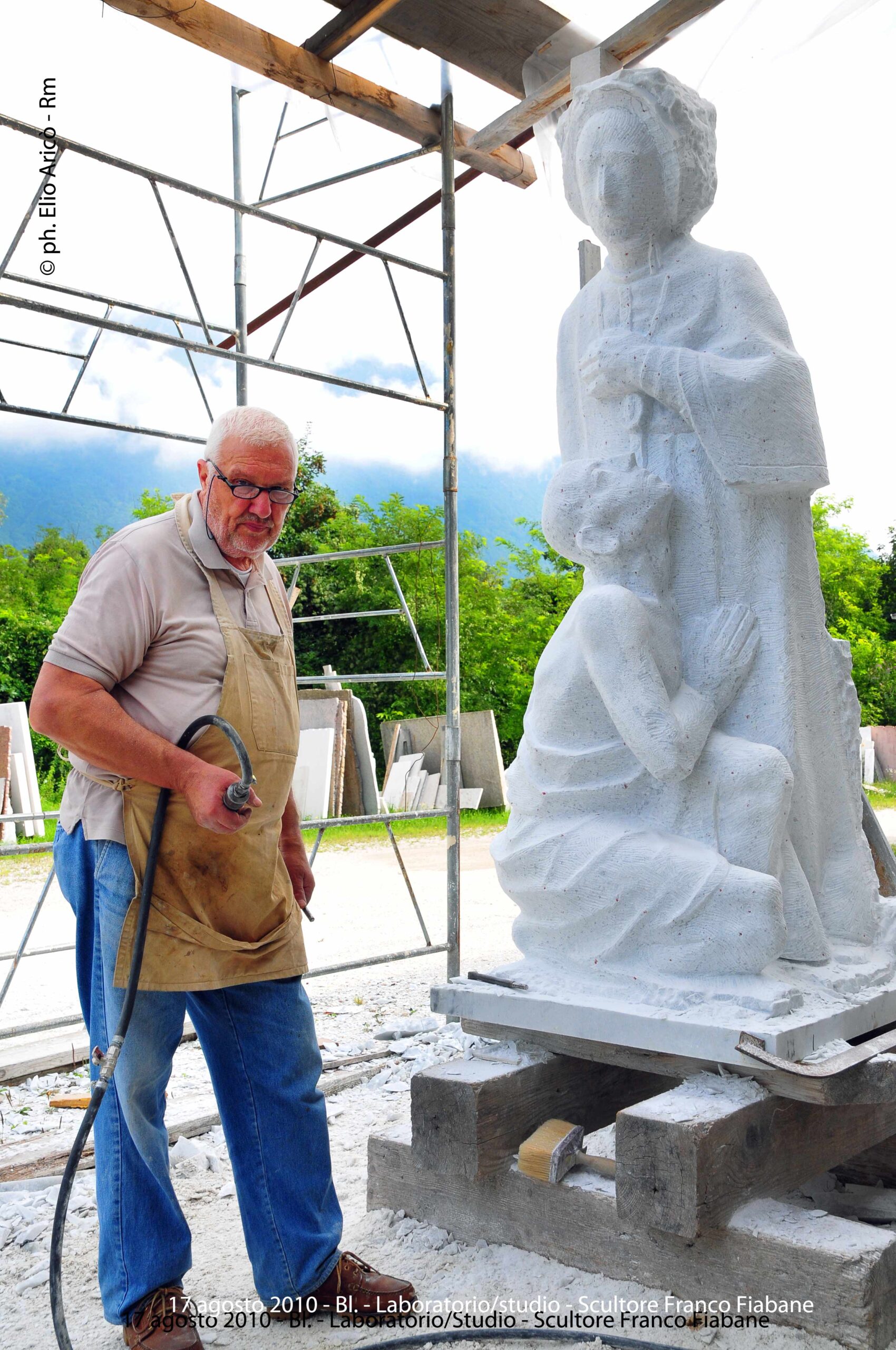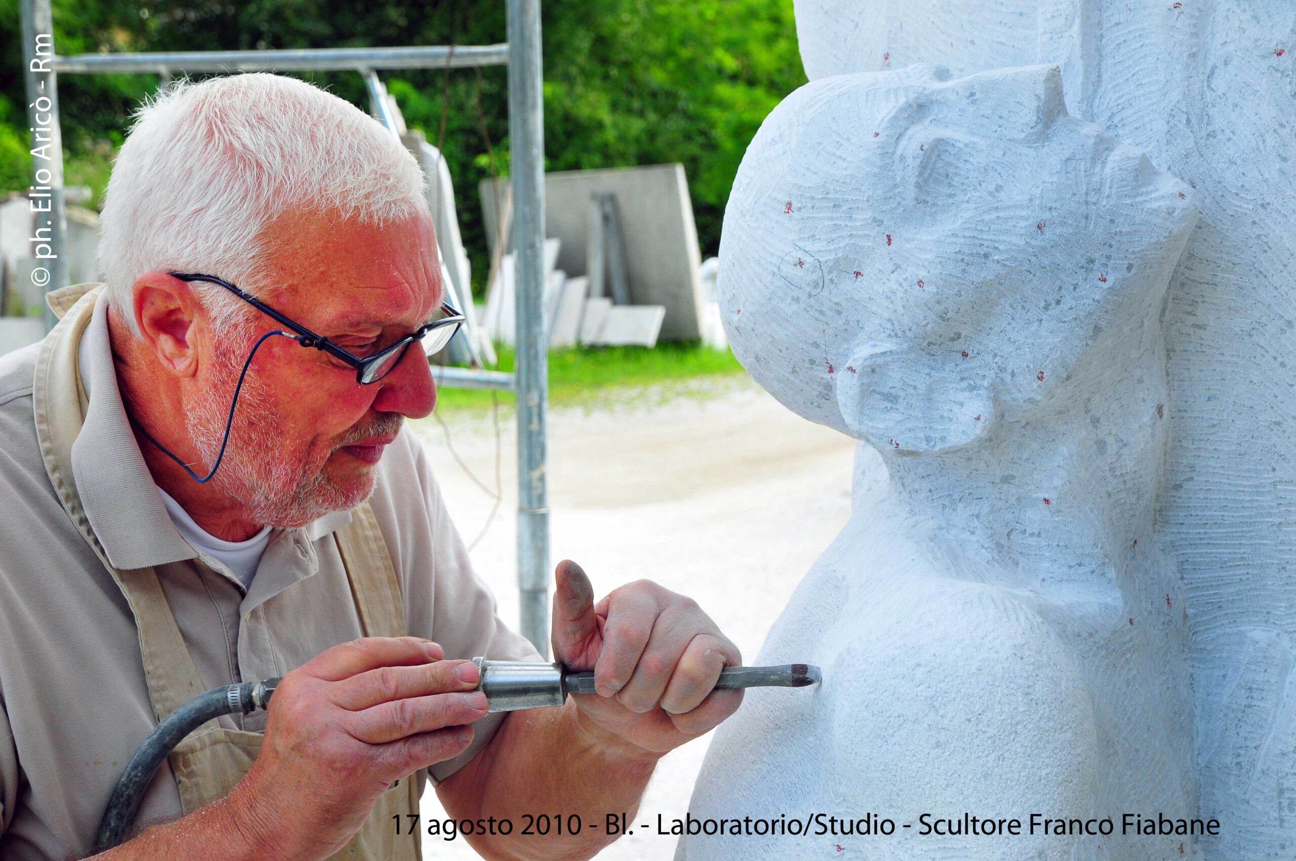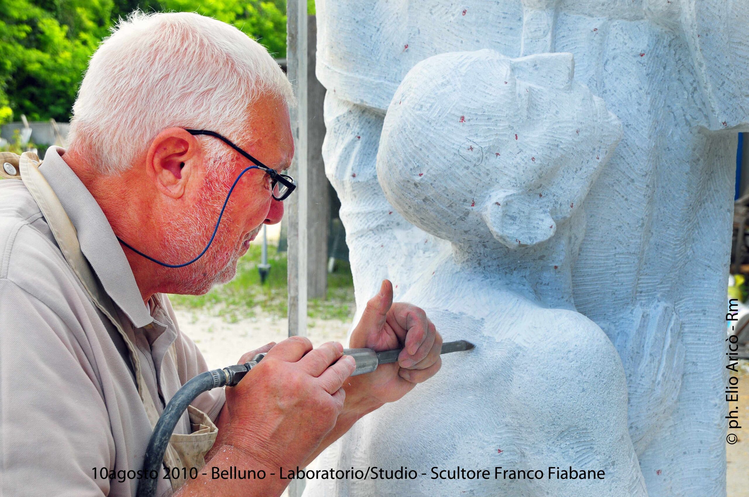 Cara Radio Più… allego il primo set di foto dell’agosto 2004 della lavorazione del Monumento alle vittime del Vajont. Comincia così il messaggio di Elio Aricò, che con affetto e riconoscenza ricorda la figura dello scultore Franco Fiabane, artista bellunese scomparso ma ancora vivo nel ricordo di chi lo ha conosciuto e amato. Elio racconta di aver incontrato Franco per la prima volta nel 2002, durante una visita al Museo Augusto Murer di Falcade. Da quell’incontro nacque un’amicizia sincera, nutrita da una profonda stima reciproca e da un comune amore per l’arte. «Si comportava con me come un fratello maggiore — scrive Elio — pieno di attenzioni e gentilezze». Durante le sue vacanze estive a Belluno, Franco gli preparava veri e propri itinerari turistico-artistici, per fargli conoscere le bellezze del territorio e le sue opere disseminate tra chiese, piazze e collezioni private. Un gesto che dice molto dell’uomo oltre che dell’artista: generoso, curioso, sempre desideroso di condividere la bellezza. Tra il 2002 e il 2015, Elio ha documentato fotograficamente il lavoro di Fiabane, raccogliendo un materiale prezioso che non solo restituisce il percorso artistico dello scultore, ma anche un ritratto umano di grande intensità. Le immagini del Monumento alle vittime del Vajont, realizzate nell’agosto 2004, sono solo una parte di questo racconto visivo: testimonianze di un talento capace di unire tecnica e sentimento, materia e memoria. «Franco Fiabane era uno scultore completo — scrive ancora Elio — lavorava con maestria il marmo, il legno, le pietre dure. Personalmente lo reputo un grande artista che si colloca a pieno titolo nella tradizione del Novecento italiano, accanto a nomi come Emilio Greco, Marino Marini e Marcello Mascherini». Un ricordo colmo di gratitudine e ammirazione, quello di Elio, che attraverso le sue fotografie e le sue parole restituisce l’immagine viva di un uomo che ha saputo lasciare il segno non solo nella pietra, ma anche nei cuori.
