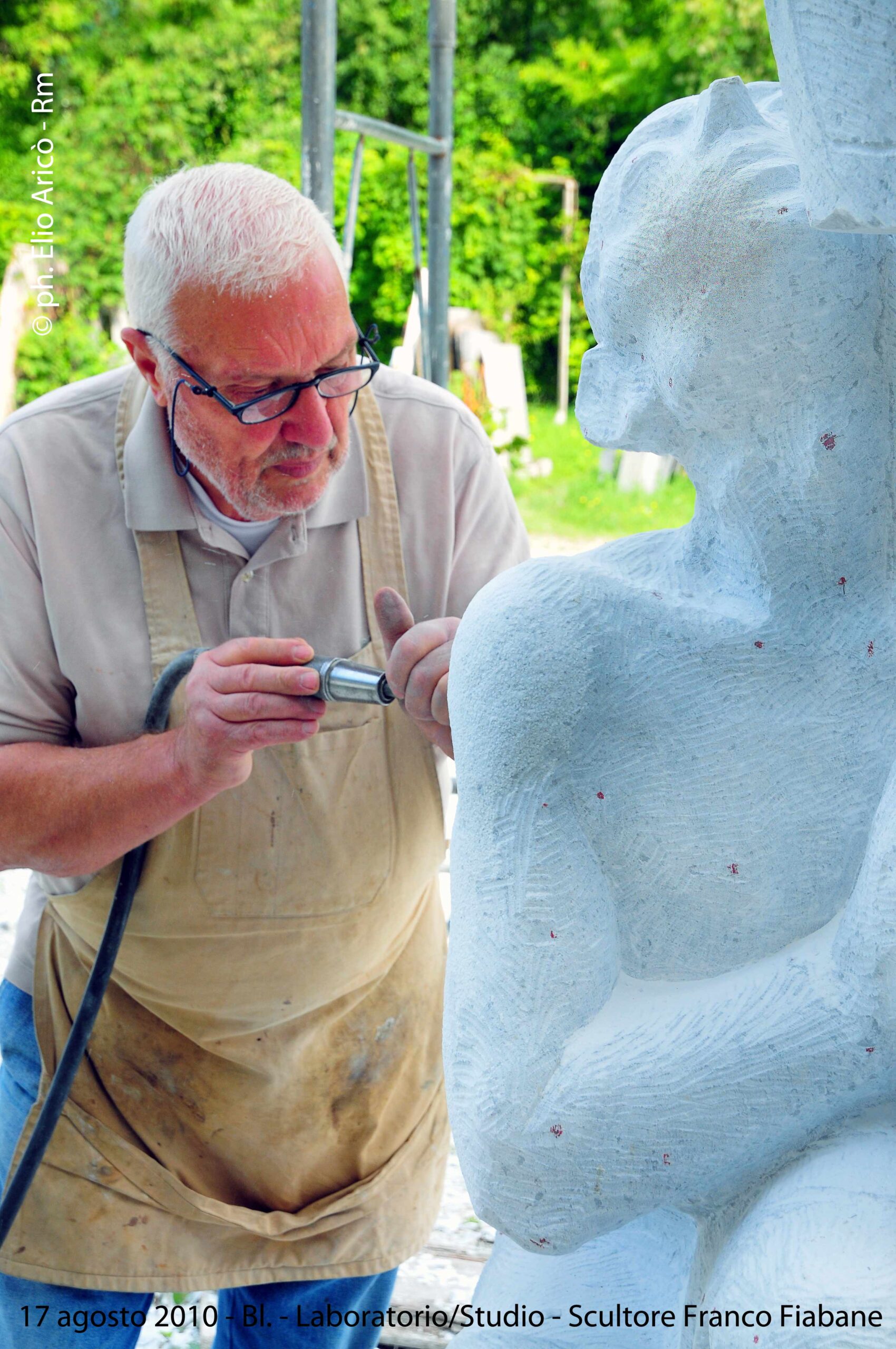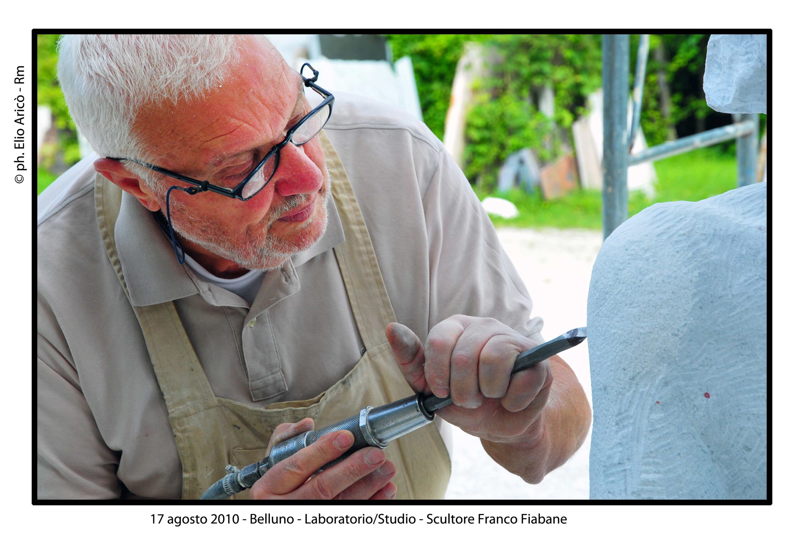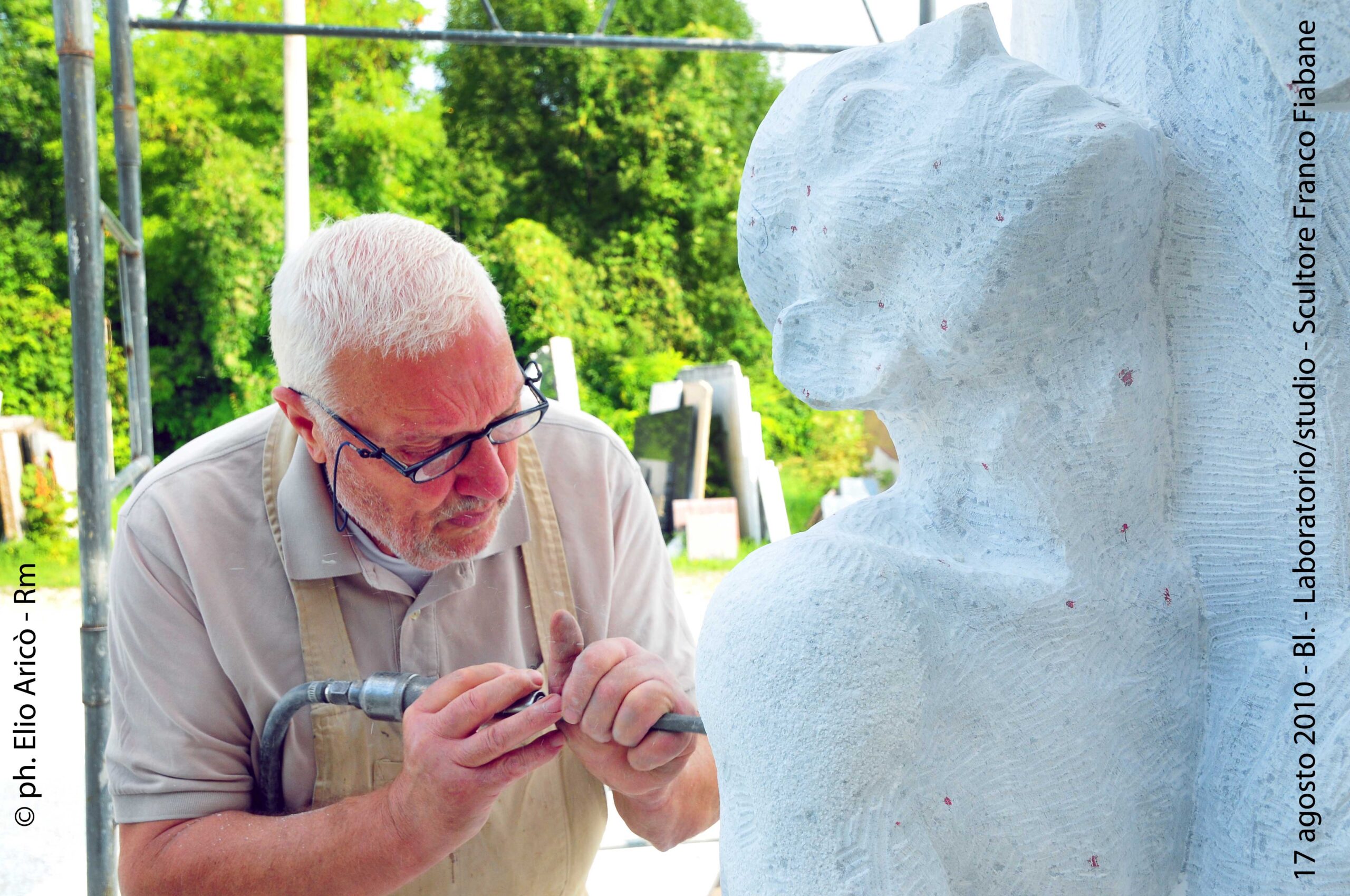 Cara Radio Più… allego il primo set di foto dell’agosto 2004 della lavorazione del Monumento alle vittime del Vajont. Comincia così il messaggio di Elio Aricò, che con affetto e riconoscenza ricorda la figura dello scultore Franco Fiabane, artista bellunese scomparso ma ancora vivo nel ricordo di chi lo ha conosciuto e amato. Elio racconta di aver incontrato Franco per la prima volta nel 2002, durante una visita al Museo Augusto Murer di Falcade. Da quell’incontro nacque un’amicizia sincera, nutrita da una profonda stima reciproca e da un comune amore per l’arte. «Si comportava con me come un fratello maggiore — scrive Elio — pieno di attenzioni e gentilezze». Durante le sue vacanze estive a Belluno, Franco gli preparava veri e propri itinerari turistico-artistici, per fargli conoscere le bellezze del territorio e le sue opere disseminate tra chiese, piazze e collezioni private. Un gesto che dice molto dell’uomo oltre che dell’artista: generoso, curioso, sempre desideroso di condividere la bellezza. Tra il 2002 e il 2015, Elio ha documentato fotograficamente il lavoro di Fiabane, raccogliendo un materiale prezioso che non solo restituisce il percorso artistico dello scultore, ma anche un ritratto umano di grande intensità. Le immagini del Monumento alle vittime del Vajont, realizzate nell’agosto 2004, sono solo una parte di questo racconto visivo: testimonianze di un talento capace di unire tecnica e sentimento, materia e memoria. «Franco Fiabane era uno scultore completo — scrive ancora Elio — lavorava con maestria il marmo, il legno, le pietre dure. Personalmente lo reputo un grande artista che si colloca a pieno titolo nella tradizione del Novecento italiano, accanto a nomi come Emilio Greco, Marino Marini e Marcello Mascherini». Un ricordo colmo di gratitudine e ammirazione, quello di Elio, che attraverso le sue fotografie e le sue parole restituisce l’immagine viva di un uomo che ha saputo lasciare il segno non solo nella pietra, ma anche nei cuori.