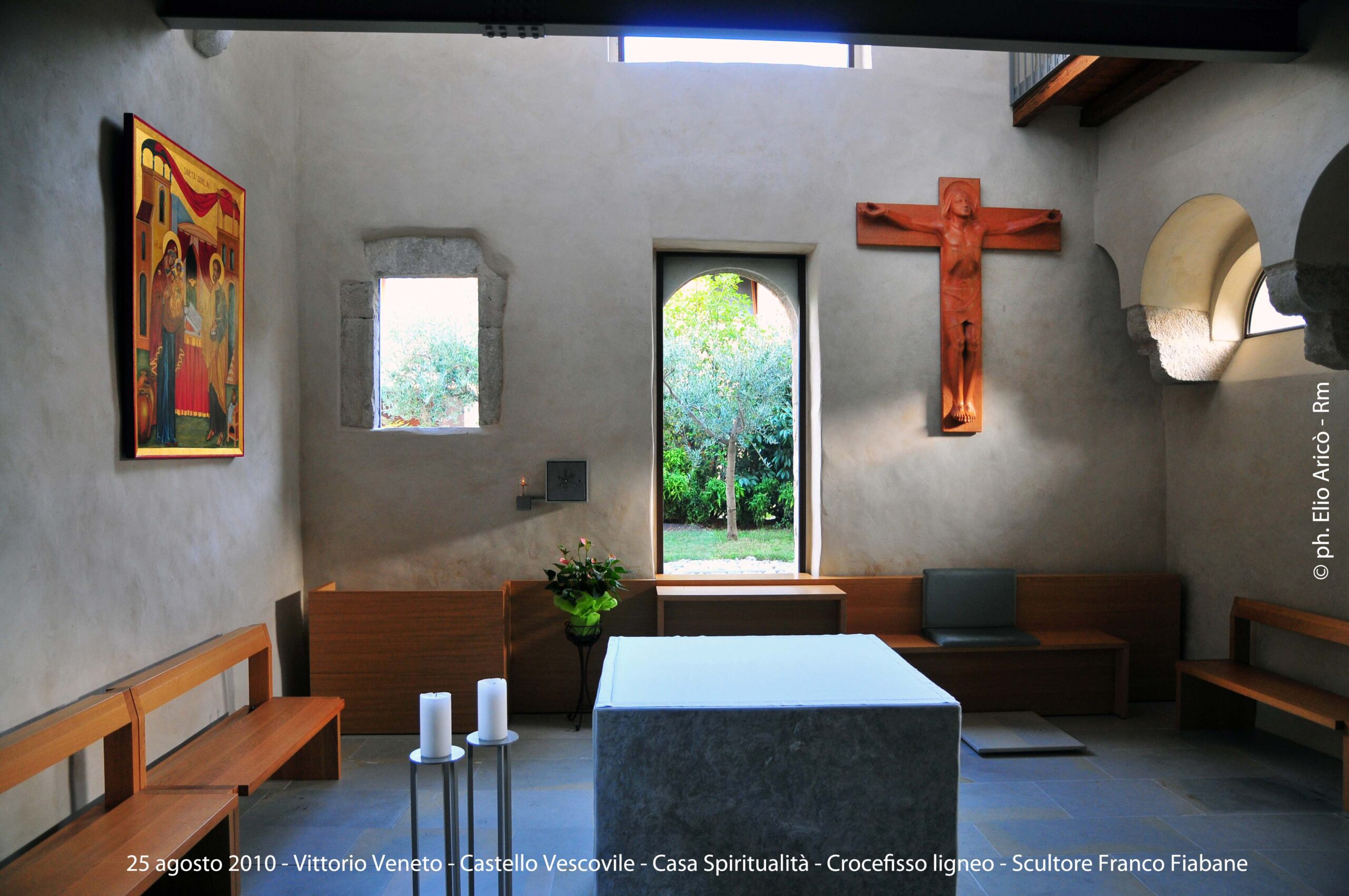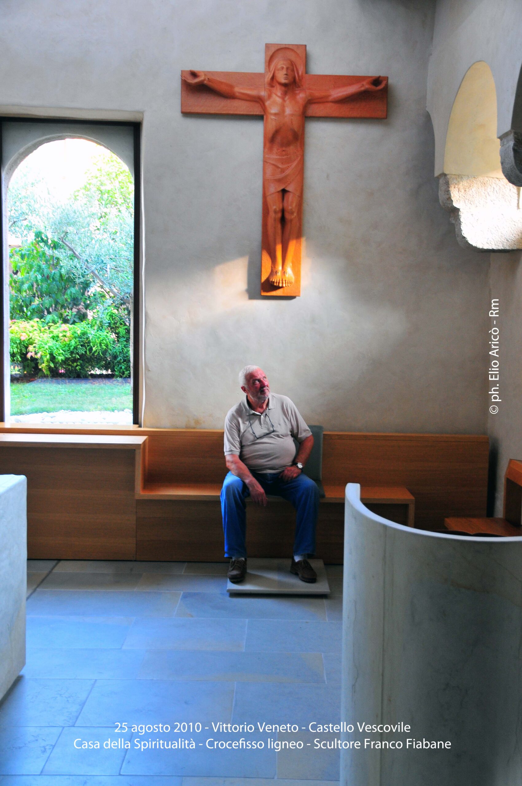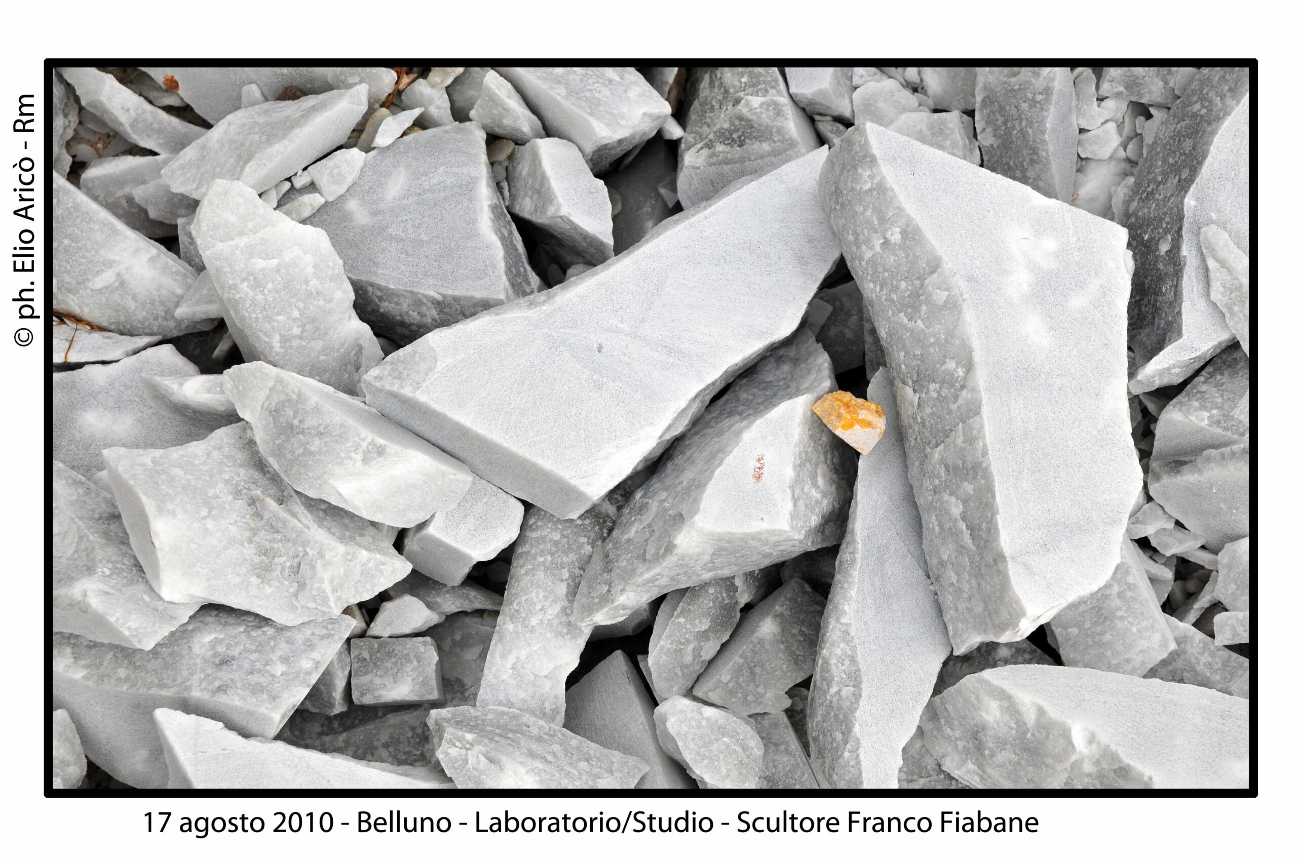 Un dialogo tra arte, memoria e verità emerge dalle fotografie realizzate dal fotografo romano Elio Aricò, dedicate al trittico in marmo di Carrara dello scultore Franco Fiabane, installato nel Cimitero monumentale di Fortogna, frazione di Longarone. L’opera, dedicata alle vittime del Vajont, è una delle più intense testimonianze artistiche della tragedia, scolpita con rigore e devozione da Fiabane, artista-artigiano di rara sensibilità. Fu lo stesso Franco Fiabane, il 24 agosto 2005, ad accompagnare Elio Aricò a Fortogna per mostrargli il monumento completato, dopo che il fotografo lo aveva visto in lavorazione l’anno precedente (vedi raccolta di foto seguenti_2004). Quelle immagini, oltre a documentare con eleganza la potenza del marmo e la profondità del messaggio, assunsero presto un valore speciale per l’artista: “Mi era molto riconoscenti — ricorda Aricò — perché, a suo dire, le fotografie servivano a tacitare le malelingue che cercavano di sminuire il suo lavoro insinuando l’uso del pantografo, la più grave offesa per un vero scultore”. Così, attraverso l’obiettivo di Aricò, il trittico di Fortogna si rivela non solo come monumento alla memoria del Vajont, ma anche come testimonianza di autenticità e orgoglio artigiano, un tributo al valore del fare manuale e alla dedizione di chi, nel marmo, scolpisce anche la propria verità.