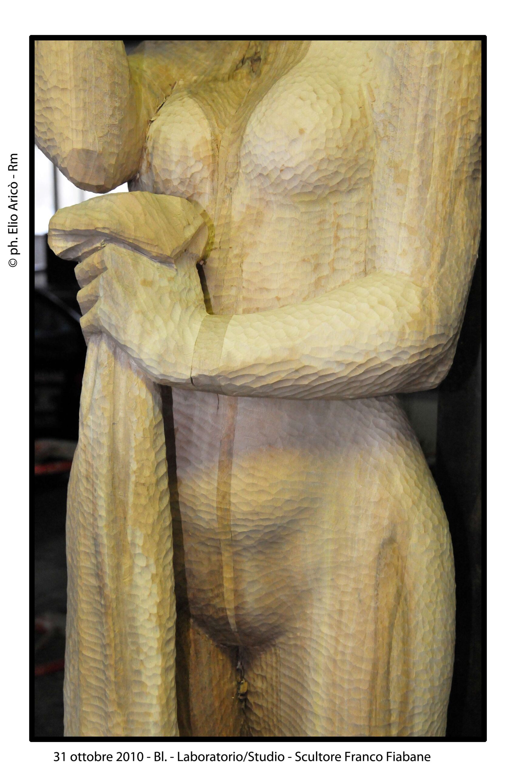 Il fotografo romano Elio Aricò apre il suo archivio e condivide con i lettori di Radiopiù un prezioso ricordo dell’artista bellunese Franco Fiabane. Un racconto per immagini e memoria che risale all’estate del 2009, quando Aricò seguì passo dopo passo la nascita della scultura lignea Il pallanuotista, documentandone l’intero processo creativo dal 10 luglio al 24 agosto. «Al primo impatto – racconta il fotografo – mi sono trovato di fronte a una figura classica, che richiamava gli atleti scolpiti nel marmo negli anni Trenta al Foro Italico». Un’impressione immediata di forza, equilibrio e bellezza che lo spinse a osservare e immortalare ogni gesto dell’artista. A una visione superficiale, le immagini possono sembrare simili tra loro. Ma è l’occhio attento a cogliere ciò che Aricò definisce «un vero manuale di tecnica scultorea»: il mazzuolo e lo scalpello che, nelle mani esperte di Fiabane, trasformano: la materia che si apre, si assottiglia, prende vita. Giorno dopo giorno la figura del pallanuotista diventava sempre più espressiva, rivelando una sorprendente armonia tra muscoli, ossa e venature naturali del legno. «La scultura, pur non essendo ancora definitiva, si faceva sempre più realistica ed esteticamente coinvolgente», ricorda Aricò. L’ultimo scatto è una piccola opera nell’opera: una composizione naturale di trucioli, residui della lavorazione, che chiude idealmente il percorso creativo.