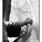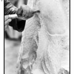 Le immagini di Elio Aricò raccontano non solo l’opera compiuta, ma anche il processo creativo: Fiabane colto nel gesto lento e concentrato dell’incisione, mentre definisce i volumi, leviga, approfondisce le ombre. È uno sguardo intimo dentro il laboratorio dell’artista, dove la scultura prende forma attraverso il rapporto fisico con il legno.