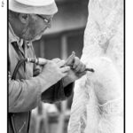 Un dialogo tra arte, memoria e verità emerge dalle fotografie realizzate dal fotografo romano Elio Aricò, dedicate al trittico in marmo di Carrara dello scultore Franco Fiabane, installato nel Cimitero monumentale di Fortogna, frazione di Longarone. L’opera, dedicata alle vittime del Vajont, è una delle più intense testimonianze artistiche della tragedia, scolpita con rigore e devozione da Fiabane, artista-artigiano di rara sensibilità. Fu lo stesso Franco Fiabane, il 24 agosto 2005, ad accompagnare Elio Aricò a Fortogna per mostrargli il monumento completato, dopo che il fotografo lo aveva visto in lavorazione l’anno precedente (vedi raccolta di foto seguenti_2004). Quelle immagini, oltre a documentare con eleganza la potenza del marmo e la profondità del messaggio, assunsero presto un valore speciale per l’artista: “Mi era molto riconoscenti — ricorda Aricò — perché, a suo dire, le fotografie servivano a tacitare le malelingue che cercavano di sminuire il suo lavoro insinuando l’uso del pantografo, la più grave offesa per un vero scultore”. Così, attraverso l’obiettivo di Aricò, il trittico di Fortogna si rivela non solo come monumento alla memoria del Vajont, ma anche come testimonianza di autenticità e orgoglio artigiano, un tributo al valore del fare manuale e alla dedizione di chi, nel marmo, scolpisce anche la propria verità.
