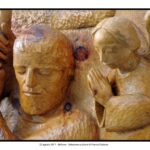 Il fotografo romano Elio Aricò ha inviato un nuovo prezioso contributo fotografico, riportando alla luce un momento intenso e profondamente umano vissuto nell’agosto del 2008. In quell’occasione, Elio e sua moglie Marcella visitarono l’atelier di Franco, maestro scultore capace di unire tecnica, sensibilità e una conoscenza anatomica fuori dal comune. Marcella – presente in alcune delle immagini – venne accolta dallo scultore con grande gentilezza. Franco si soffermò a spiegare le diverse tecniche che stava applicando al blocco “Saga familiare”, opera che già abbiamo avuto modo di commentare (vedi raccolta) e che rappresenta uno dei passaggi più significativi del suo percorso artistico. Non meno affascinante fu il momento dedicato al Cristo ligneo allora in lavorazione. Un’opera che, ricorda Elio, rivelava come pochi la capacità dello scultore di leggere il corpo umano, di comprenderne tensioni, pesi, dolori. Ed è proprio questa padronanza dell’anatomia a dare alla figura del Cristo in Croce quella forza drammatica che non è semplice rappresentazione, ma esperienza emotiva: la sofferenza dell’uomo che teme di essere abbandonato dal suo Dio. Elio Aricò, nel suo messaggio, accompagna le fotografie con un pensiero carico di stima e gratitudine, definendo quell’incontro una testimonianza viva della grandezza umana e artistica di Franco.