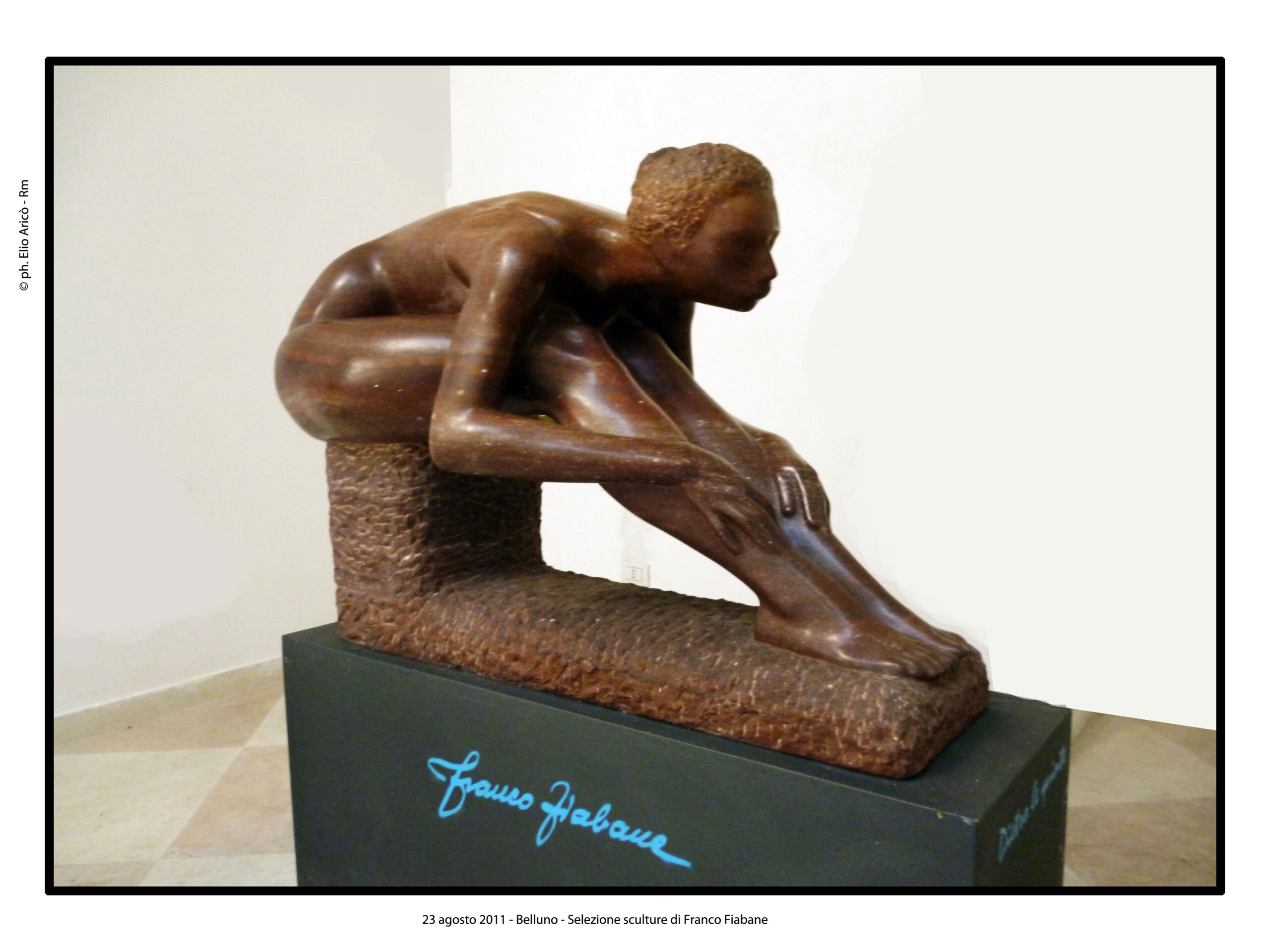 Il fotografo romano Elio Aricò apre il suo archivio e condivide con i lettori di Radiopiù un prezioso ricordo dell’artista bellunese Franco Fiabane. Un racconto per immagini e memoria che risale all’estate del 2009, quando Aricò seguì passo dopo passo la nascita della scultura lignea Il pallanuotista, documentandone l’intero processo creativo dal 10 luglio al 24 agosto. «Al primo impatto – racconta il fotografo – mi sono trovato di fronte a una figura classica, che richiamava gli atleti scolpiti nel marmo negli anni Trenta al Foro Italico». Un’impressione immediata di forza, equilibrio e bellezza che lo spinse a osservare e immortalare ogni gesto dell’artista. A una visione superficiale, le immagini possono sembrare simili tra loro. Ma è l’occhio attento a cogliere ciò che Aricò definisce «un vero manuale di tecnica scultorea»: il mazzuolo e lo scalpello che, nelle mani esperte di Fiabane, trasformano: la materia che si apre, si assottiglia, prende vita. Giorno dopo giorno la figura del pallanuotista diventava sempre più espressiva, rivelando una sorprendente armonia tra muscoli, ossa e venature naturali del legno. «La scultura, pur non essendo ancora definitiva, si faceva sempre più realistica ed esteticamente coinvolgente», ricorda Aricò. L’ultimo scatto è una piccola opera nell’opera: una composizione naturale di trucioli, residui della lavorazione, che chiude idealmente il percorso creativo.