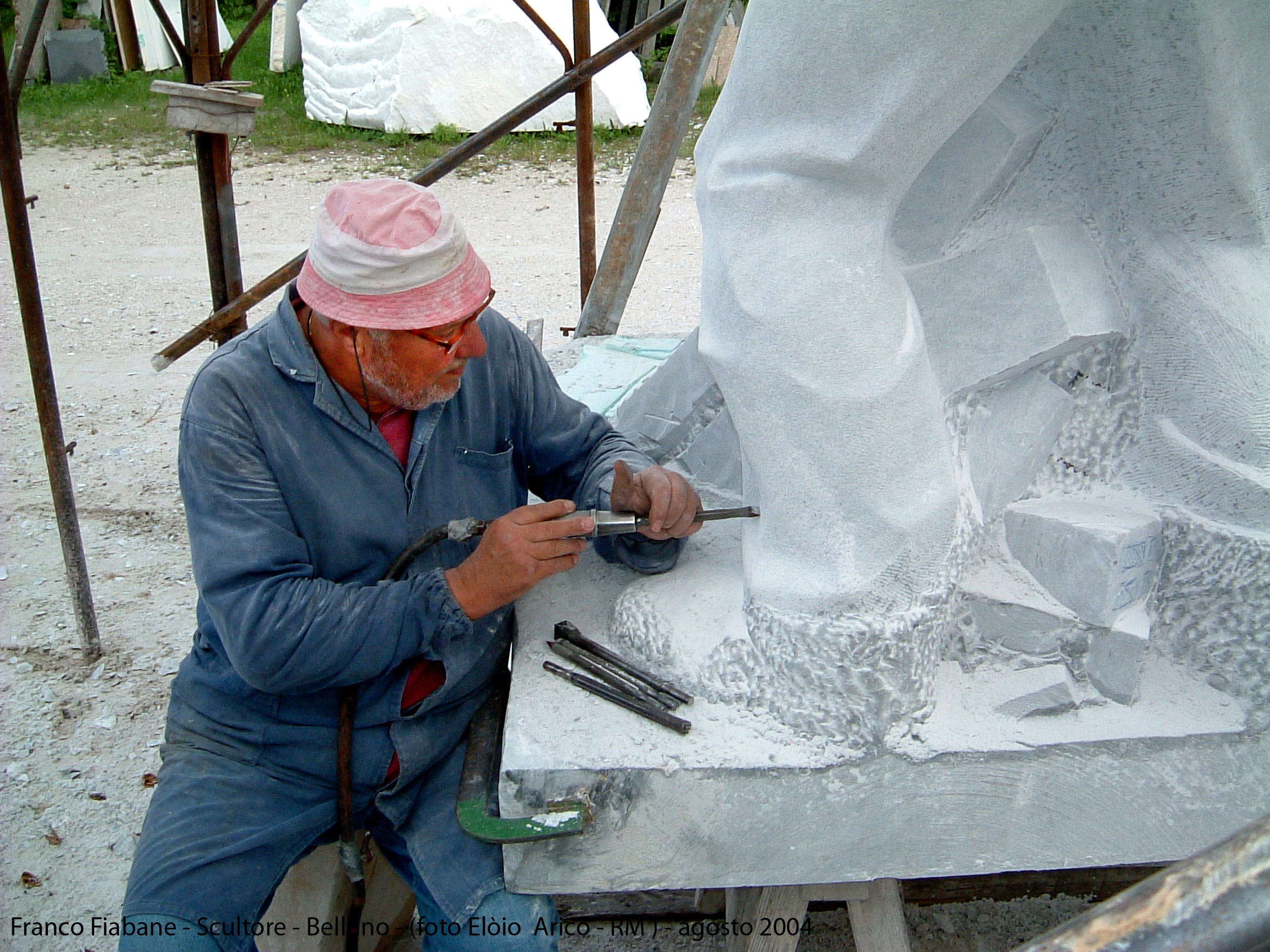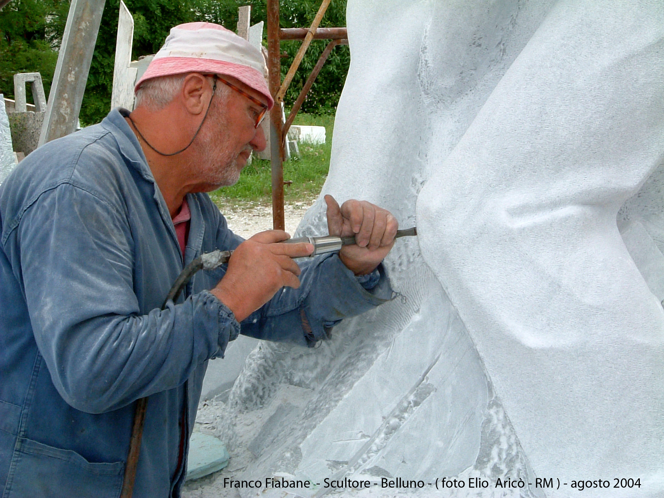 Cara Radio Più… allego il primo set di foto dell’agosto 2004 della lavorazione del Monumento alle vittime del Vajont. Comincia così il messaggio di Elio Aricò, che con affetto e riconoscenza ricorda la figura dello scultore Franco Fiabane, artista bellunese scomparso ma ancora vivo nel ricordo di chi lo ha conosciuto e amato. Elio racconta di aver incontrato Franco per la prima volta nel 2002, durante una visita al Museo Augusto Murer di Falcade. Da quell’incontro nacque un’amicizia sincera, nutrita da una profonda stima reciproca e da un comune amore per l’arte. «Si comportava con me come un fratello maggiore — scrive Elio — pieno di attenzioni e gentilezze». Durante le sue vacanze estive a Belluno, Franco gli preparava veri e propri itinerari turistico-artistici, per fargli conoscere le bellezze del territorio e le sue opere disseminate tra chiese, piazze e collezioni private. Un gesto che dice molto dell’uomo oltre che dell’artista: generoso, curioso, sempre desideroso di condividere la bellezza. Tra il 2002 e il 2015, Elio ha documentato fotograficamente il lavoro di Fiabane, raccogliendo un materiale prezioso che non solo restituisce il percorso artistico dello scultore, ma anche un ritratto umano di grande intensità. Le immagini del Monumento alle vittime del Vajont, realizzate nell’agosto 2004, sono solo una parte di questo racconto visivo: testimonianze di un talento capace di unire tecnica e sentimento, materia e memoria. «Franco Fiabane era uno scultore completo — scrive ancora Elio — lavorava con maestria il marmo, il legno, le pietre dure. Personalmente lo reputo un grande artista che si colloca a pieno titolo nella tradizione del Novecento italiano, accanto a nomi come Emilio Greco, Marino Marini e Marcello Mascherini». Un ricordo colmo di gratitudine e ammirazione, quello di Elio, che attraverso le sue fotografie e le sue parole restituisce l’immagine viva di un uomo che ha saputo lasciare il segno non solo nella pietra, ma anche nei cuori.
