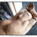 Le immagini di Elio Aricò raccontano non solo l’opera compiuta, ma anche il processo creativo: Fiabane colto nel gesto lento e concentrato dell’incisione, mentre definisce i volumi, leviga, approfondisce le ombre. È uno sguardo intimo dentro il laboratorio dell’artista, dove la scultura prende forma attraverso il rapporto fisico con il legno.