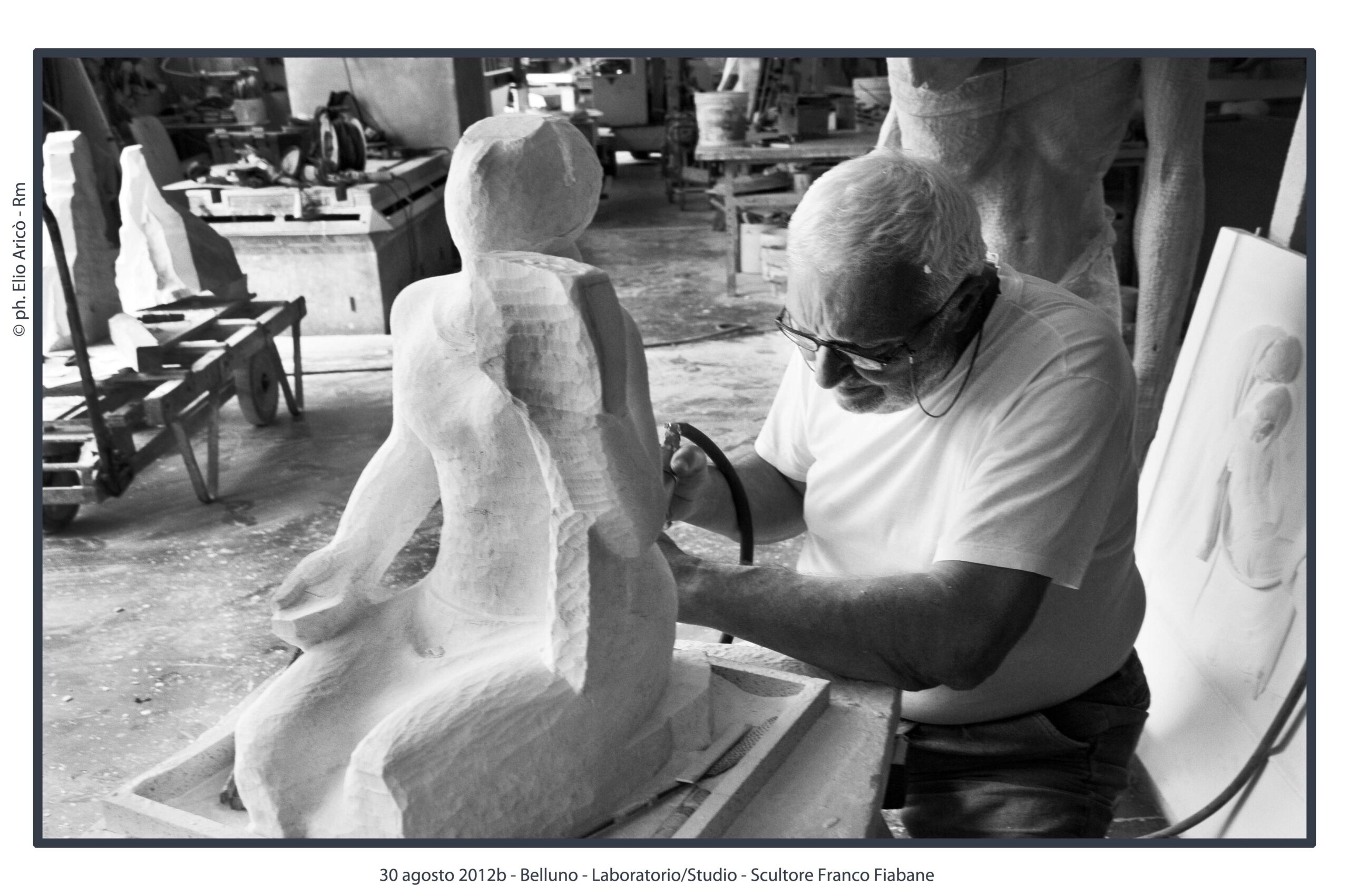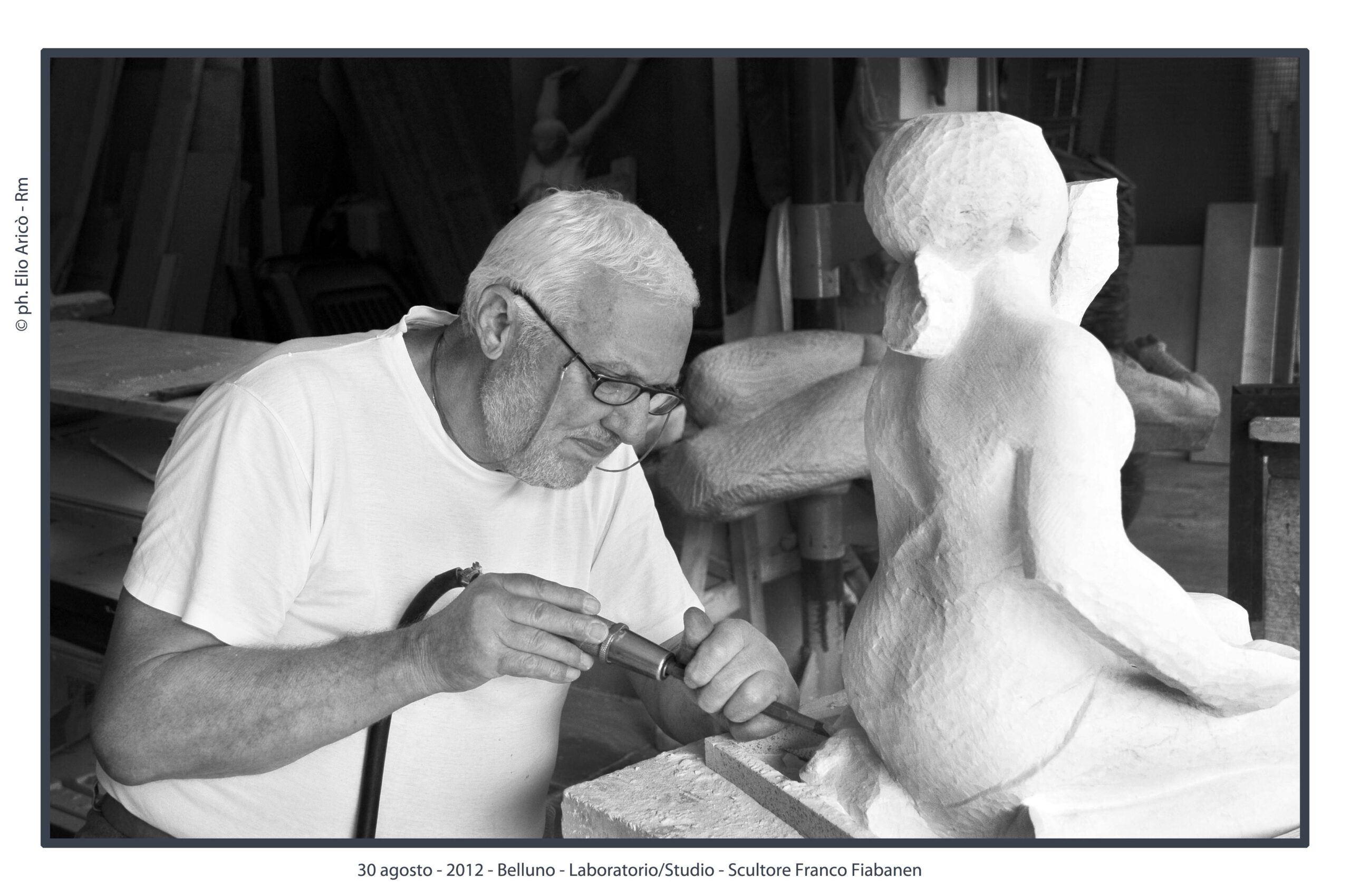 “Questo reportage fotografico non è solo una testimonianza di un artista al lavoro, ma un documento prezioso di un modo di fare arte che nasce dal silenzio, dalla manualità e dal tempo lungo. Nel laboratorio di Franco Fiabane la scultura non è mai un prodotto finito in serie, ma un incontro unico tra l’uomo e il legno, tra memoria e presente, tra materia e forma”.