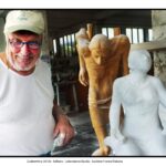 Le immagini di Elio Aricò raccontano non solo l’opera compiuta, ma anche il processo creativo: Fiabane colto nel gesto lento e concentrato dell’incisione, mentre definisce i volumi, leviga, approfondisce le ombre. È uno sguardo intimo dentro il laboratorio dell’artista, dove la scultura prende forma attraverso il rapporto fisico con il legno.