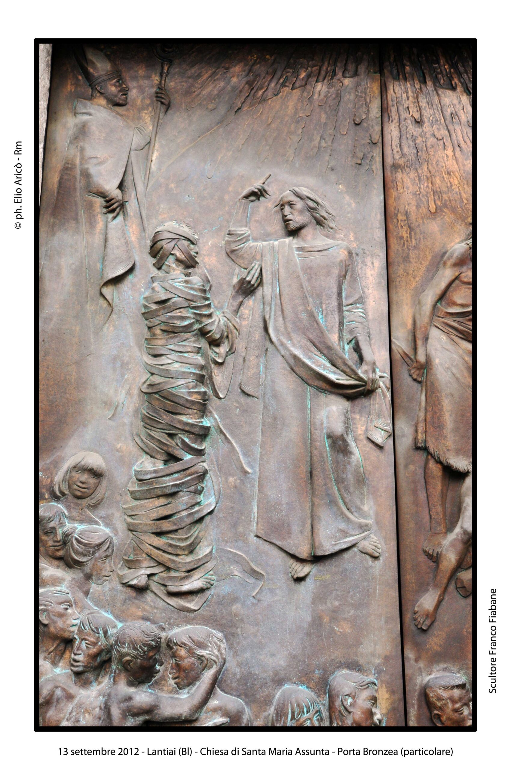 è il bassorilievo ligneo realizzato da Franco Fiabane per il paliotto d’altare della Cappella dei Seminaristi del Seminario Vescovile. Il fotografo Elio Aricò, che negli anni ha documentato molte opere dell’artista, ricorda così la genesi del lavoro: «Io ricordo che Franco lo titolava La pesca miracolosa, sul catalogo è indicato come L’Eucarestia». Due titoli, nessuna contraddizione: soltanto il riflesso della ricchezza simbolica con cui Fiabane sapeva rivestire la materia. Il legno scolpito da Fiabane conserva un linguaggio essenziale e insieme vibrante, capace di parlare ai seminaristi di ieri e di oggi, invitando al servizio e alla gratitudine.
