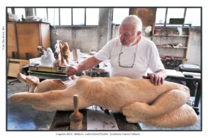 “Questo reportage fotografico non è solo una testimonianza di un artista al lavoro, ma un documento prezioso di un modo di fare arte che nasce dal silenzio, dalla manualità e dal tempo lungo. Nel laboratorio di Franco Fiabane la scultura non è mai un prodotto finito in serie, ma un incontro unico tra l’uomo e il legno, tra memoria e presente, tra materia e forma”.