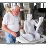 Il fotografo romano Elio Aricò apre il suo archivio e condivide con i lettori di Radiopiù un prezioso ricordo dell’artista bellunese Franco Fiabane. Un racconto per immagini e memoria che risale all’estate del 2009, quando Aricò seguì passo dopo passo la nascita della scultura lignea Il pallanuotista, documentandone l’intero processo creativo dal 10 luglio al 24 agosto. «Al primo impatto – racconta il fotografo – mi sono trovato di fronte a una figura classica, che richiamava gli atleti scolpiti nel marmo negli anni Trenta al Foro Italico». Un’impressione immediata di forza, equilibrio e bellezza che lo spinse a osservare e immortalare ogni gesto dell’artista. A una visione superficiale, le immagini possono sembrare simili tra loro. Ma è l’occhio attento a cogliere ciò che Aricò definisce «un vero manuale di tecnica scultorea»: il mazzuolo e lo scalpello che, nelle mani esperte di Fiabane, trasformano: la materia che si apre, si assottiglia, prende vita. Giorno dopo giorno la figura del pallanuotista diventava sempre più espressiva, rivelando una sorprendente armonia tra muscoli, ossa e venature naturali del legno. «La scultura, pur non essendo ancora definitiva, si faceva sempre più realistica ed esteticamente coinvolgente», ricorda Aricò. L’ultimo scatto è una piccola opera nell’opera: una composizione naturale di trucioli, residui della lavorazione, che chiude idealmente il percorso creativo.