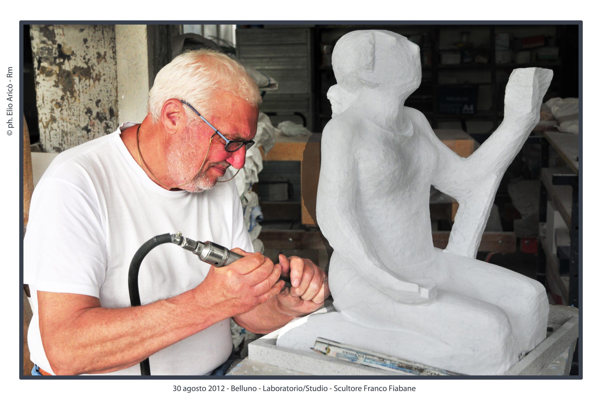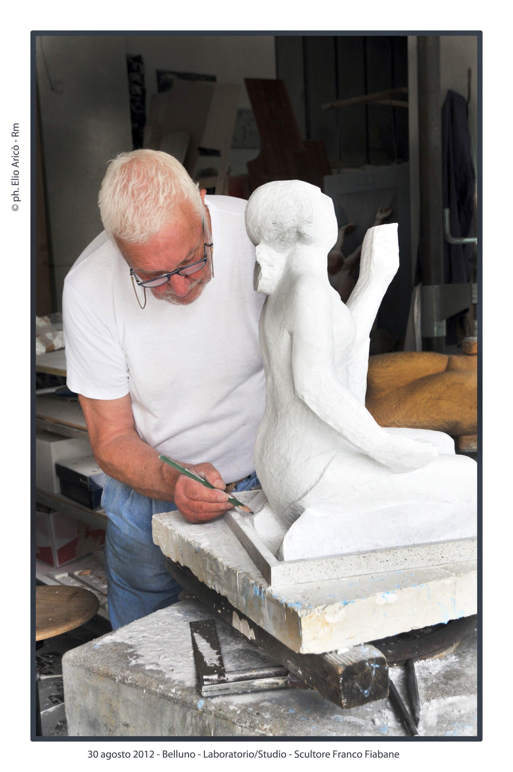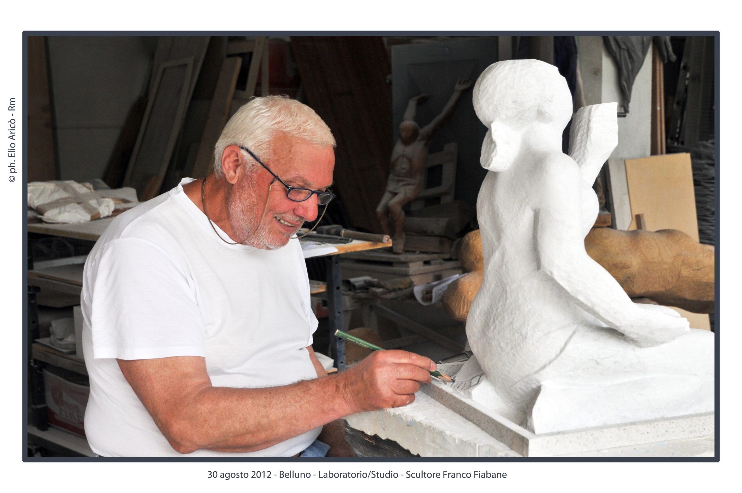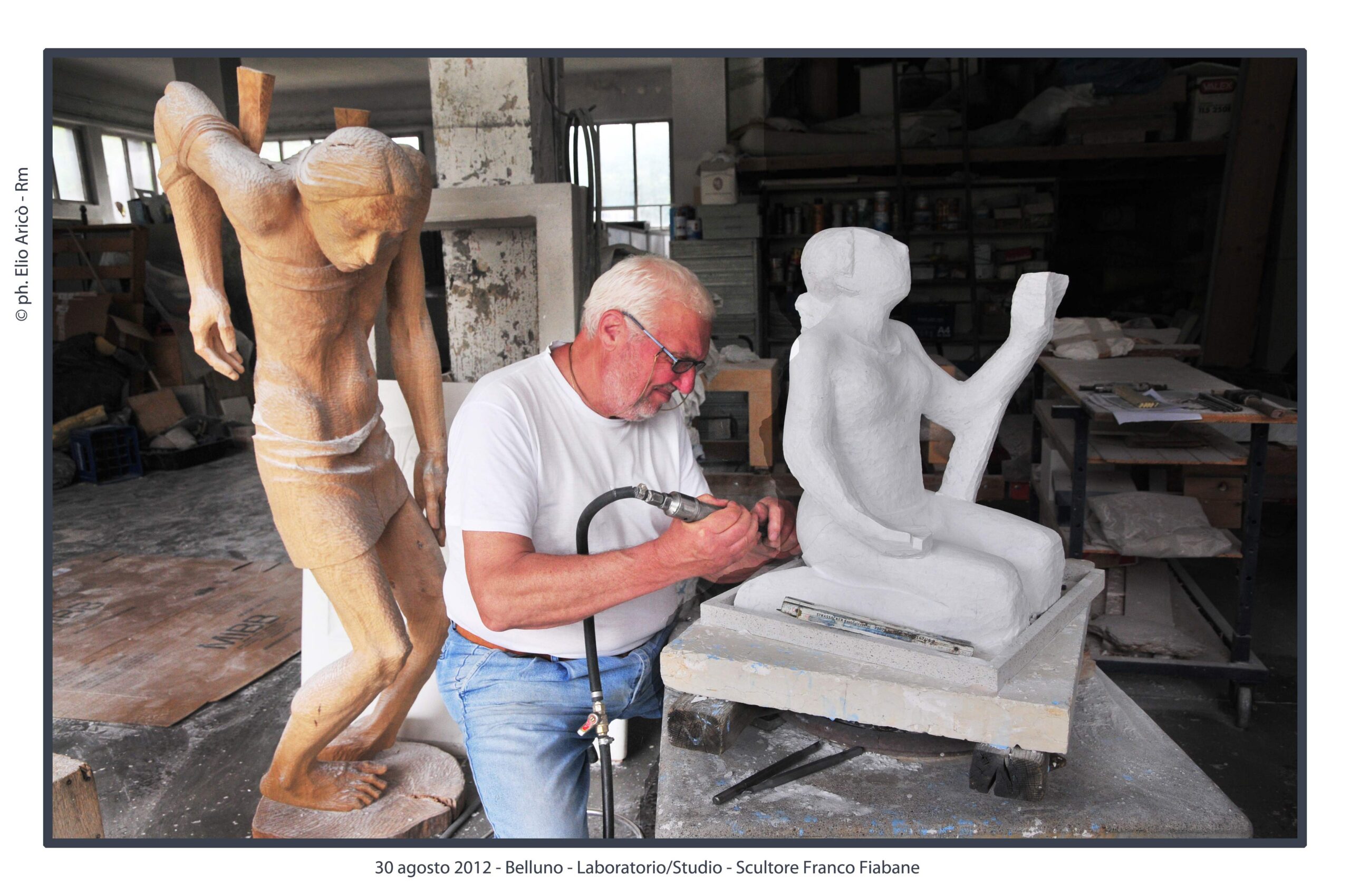 “Questo reportage fotografico non è solo una testimonianza di un artista al lavoro, ma un documento prezioso di un modo di fare arte che nasce dal silenzio, dalla manualità e dal tempo lungo. Nel laboratorio di Franco Fiabane la scultura non è mai un prodotto finito in serie, ma un incontro unico tra l’uomo e il legno, tra memoria e presente, tra materia e forma”.