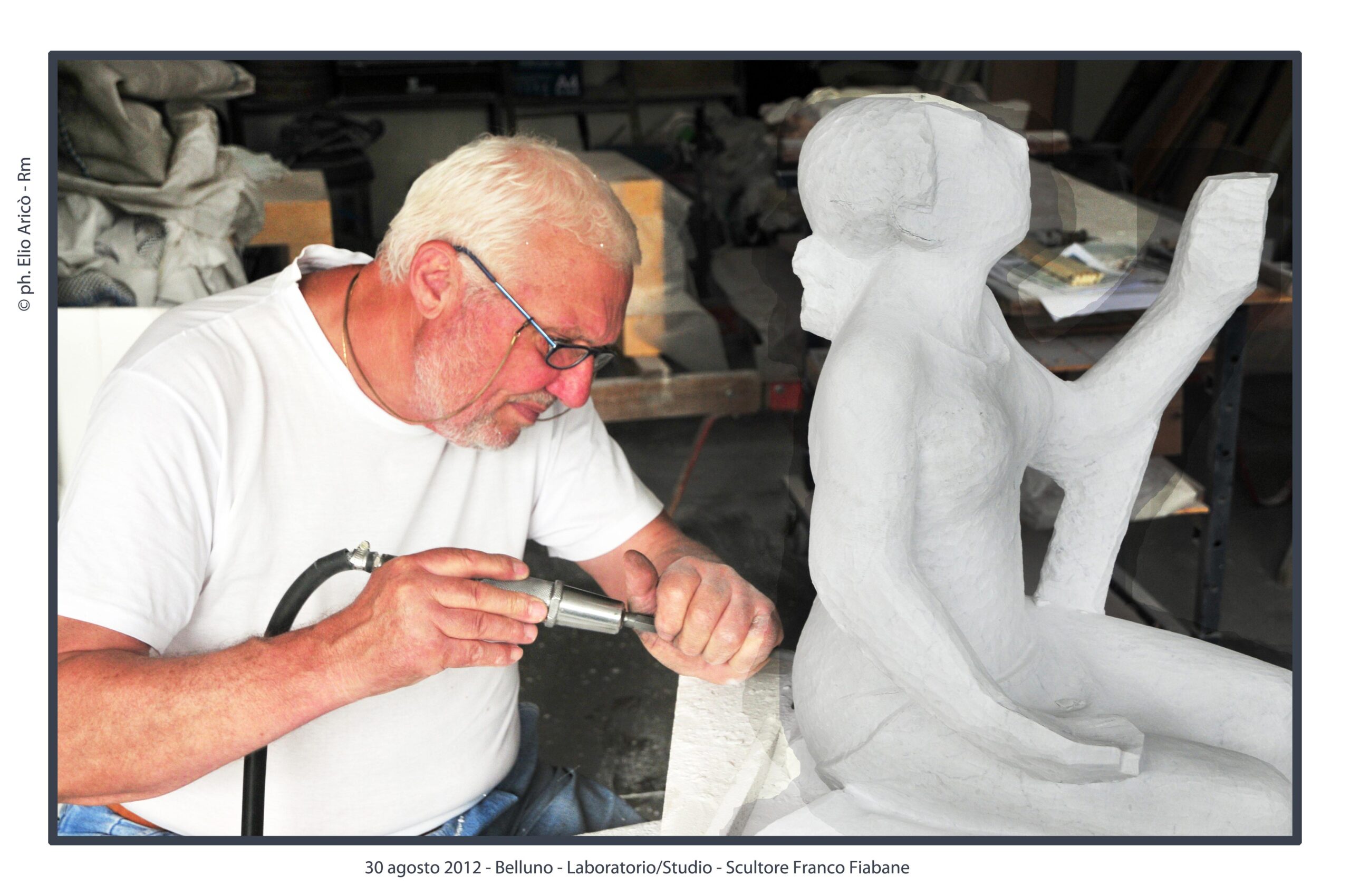 Cara Radio Più… allego il primo set di foto dell’agosto 2004 della lavorazione del Monumento alle vittime del Vajont. Comincia così il messaggio di Elio Aricò, che con affetto e riconoscenza ricorda la figura dello scultore Franco Fiabane, artista bellunese scomparso ma ancora vivo nel ricordo di chi lo ha conosciuto e amato. Elio racconta di aver incontrato Franco per la prima volta nel 2002, durante una visita al Museo Augusto Murer di Falcade. Da quell’incontro nacque un’amicizia sincera, nutrita da una profonda stima reciproca e da un comune amore per l’arte. «Si comportava con me come un fratello maggiore — scrive Elio — pieno di attenzioni e gentilezze». Durante le sue vacanze estive a Belluno, Franco gli preparava veri e propri itinerari turistico-artistici, per fargli conoscere le bellezze del territorio e le sue opere disseminate tra chiese, piazze e collezioni private. Un gesto che dice molto dell’uomo oltre che dell’artista: generoso, curioso, sempre desideroso di condividere la bellezza. Tra il 2002 e il 2015, Elio ha documentato fotograficamente il lavoro di Fiabane, raccogliendo un materiale prezioso che non solo restituisce il percorso artistico dello scultore, ma anche un ritratto umano di grande intensità. Le immagini del Monumento alle vittime del Vajont, realizzate nell’agosto 2004, sono solo una parte di questo racconto visivo: testimonianze di un talento capace di unire tecnica e sentimento, materia e memoria. «Franco Fiabane era uno scultore completo — scrive ancora Elio — lavorava con maestria il marmo, il legno, le pietre dure. Personalmente lo reputo un grande artista che si colloca a pieno titolo nella tradizione del Novecento italiano, accanto a nomi come Emilio Greco, Marino Marini e Marcello Mascherini». Un ricordo colmo di gratitudine e ammirazione, quello di Elio, che attraverso le sue fotografie e le sue parole restituisce l’immagine viva di un uomo che ha saputo lasciare il segno non solo nella pietra, ma anche nei cuori.