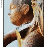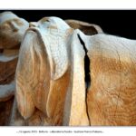 Le immagini di Elio Aricò raccontano non solo l’opera compiuta, ma anche il processo creativo: Fiabane colto nel gesto lento e concentrato dell’incisione, mentre definisce i volumi, leviga, approfondisce le ombre. È uno sguardo intimo dentro il laboratorio dell’artista, dove la scultura prende forma attraverso il rapporto fisico con il legno.