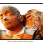 Il fotografo romano Elio Aricò ha inviato un nuovo prezioso contributo fotografico, riportando alla luce un momento intenso e profondamente umano vissuto nell’agosto del 2008. In quell’occasione, Elio e sua moglie Marcella visitarono l’atelier di Franco, maestro scultore capace di unire tecnica, sensibilità e una conoscenza anatomica fuori dal comune. Marcella – presente in alcune delle immagini – venne accolta dallo scultore con grande gentilezza. Franco si soffermò a spiegare le diverse tecniche che stava applicando al blocco “Saga familiare”, opera che già abbiamo avuto modo di commentare (vedi raccolta) e che rappresenta uno dei passaggi più significativi del suo percorso artistico. Non meno affascinante fu il momento dedicato al Cristo ligneo allora in lavorazione. Un’opera che, ricorda Elio, rivelava come pochi la capacità dello scultore di leggere il corpo umano, di comprenderne tensioni, pesi, dolori. Ed è proprio questa padronanza dell’anatomia a dare alla figura del Cristo in Croce quella forza drammatica che non è semplice rappresentazione, ma esperienza emotiva: la sofferenza dell’uomo che teme di essere abbandonato dal suo Dio. Elio Aricò, nel suo messaggio, accompagna le fotografie con un pensiero carico di stima e gratitudine, definendo quell’incontro una testimonianza viva della grandezza umana e artistica di Franco.