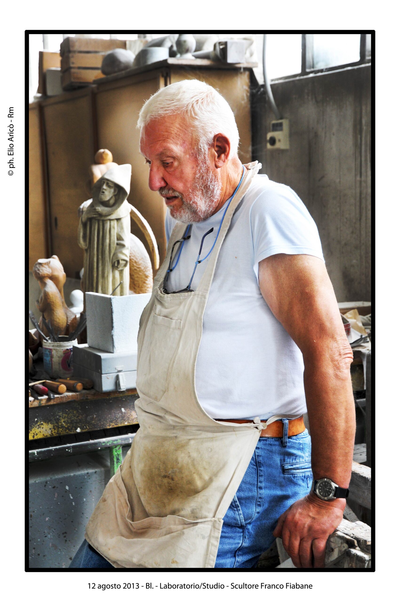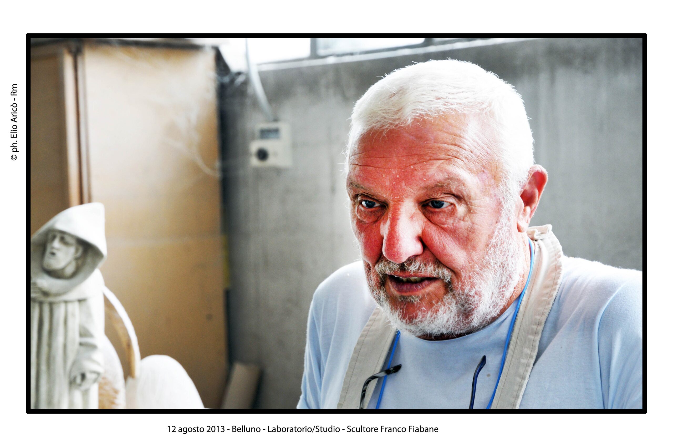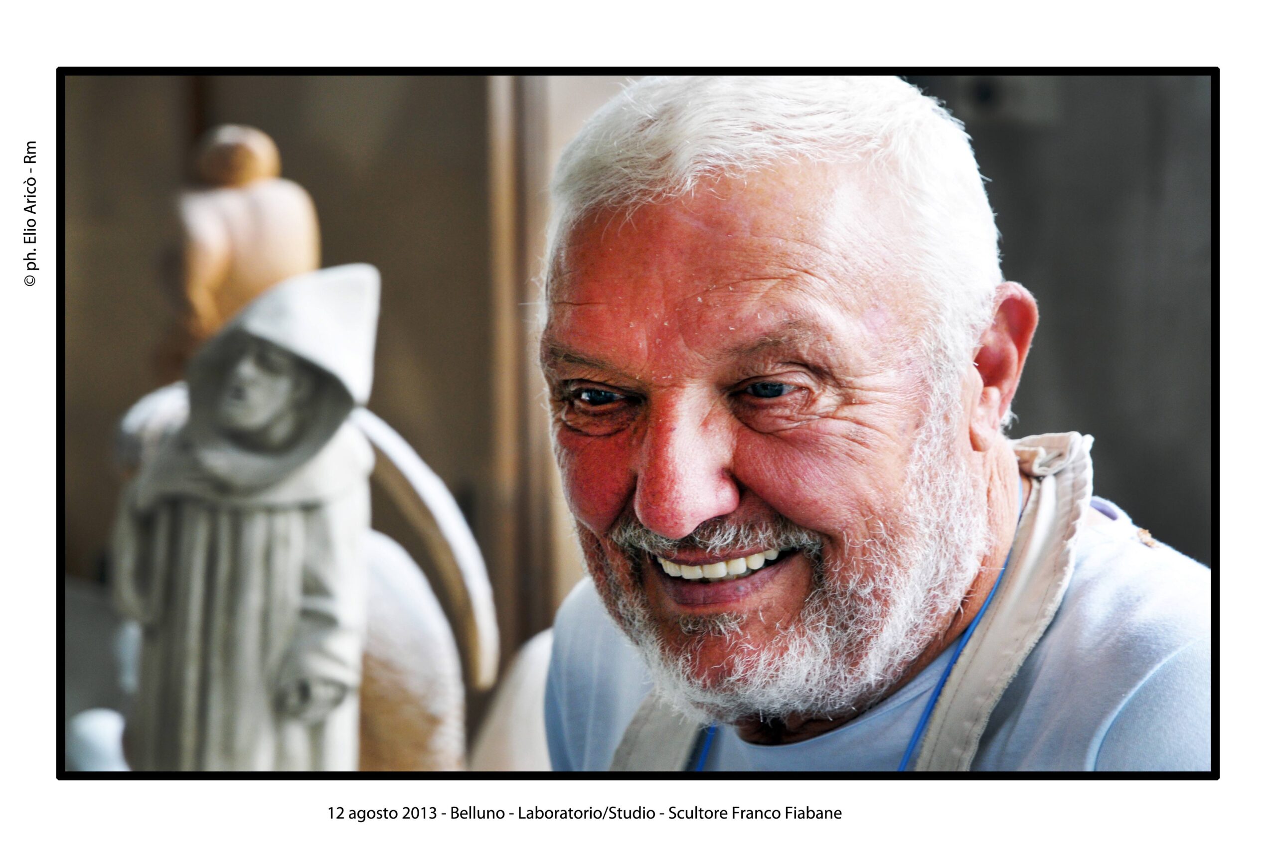 “Questo reportage fotografico non è solo una testimonianza di un artista al lavoro, ma un documento prezioso di un modo di fare arte che nasce dal silenzio, dalla manualità e dal tempo lungo. Nel laboratorio di Franco Fiabane la scultura non è mai un prodotto finito in serie, ma un incontro unico tra l’uomo e il legno, tra memoria e presente, tra materia e forma”.