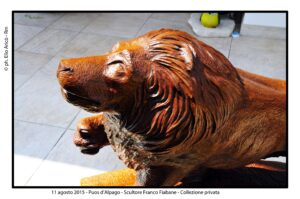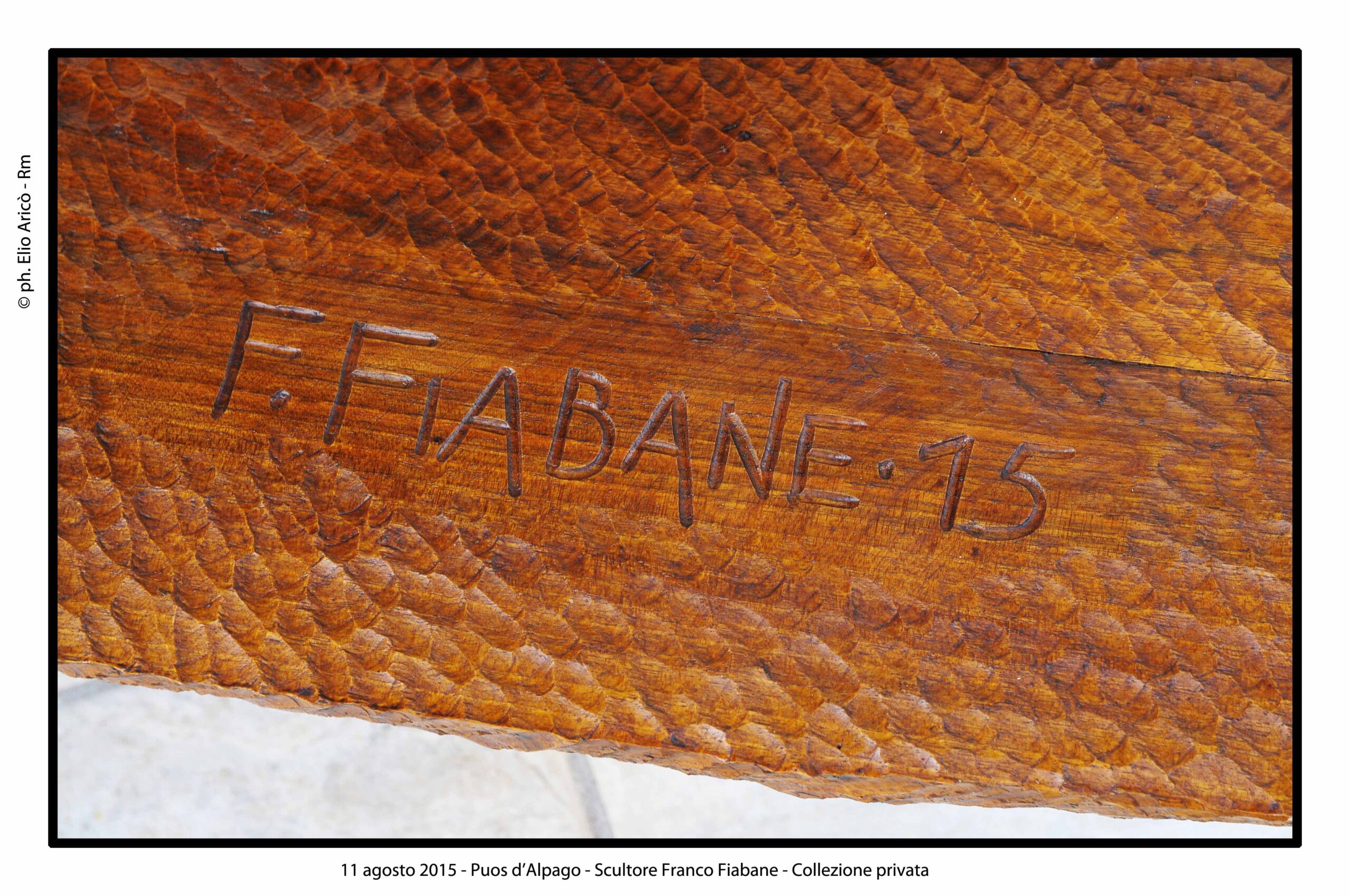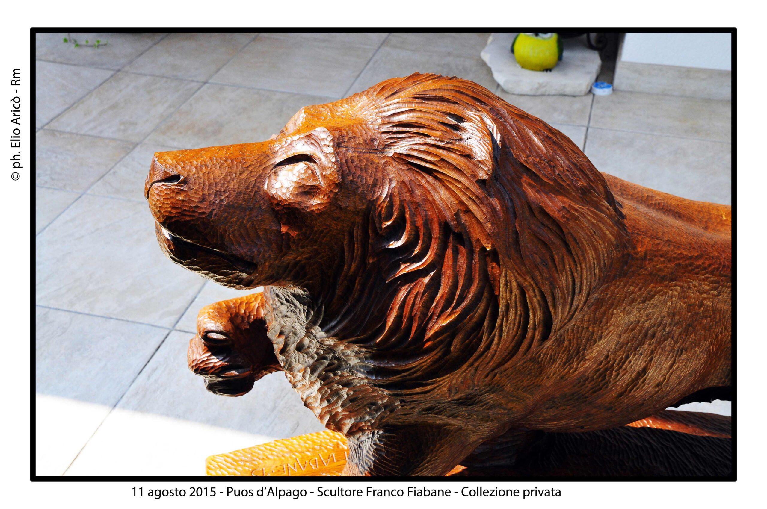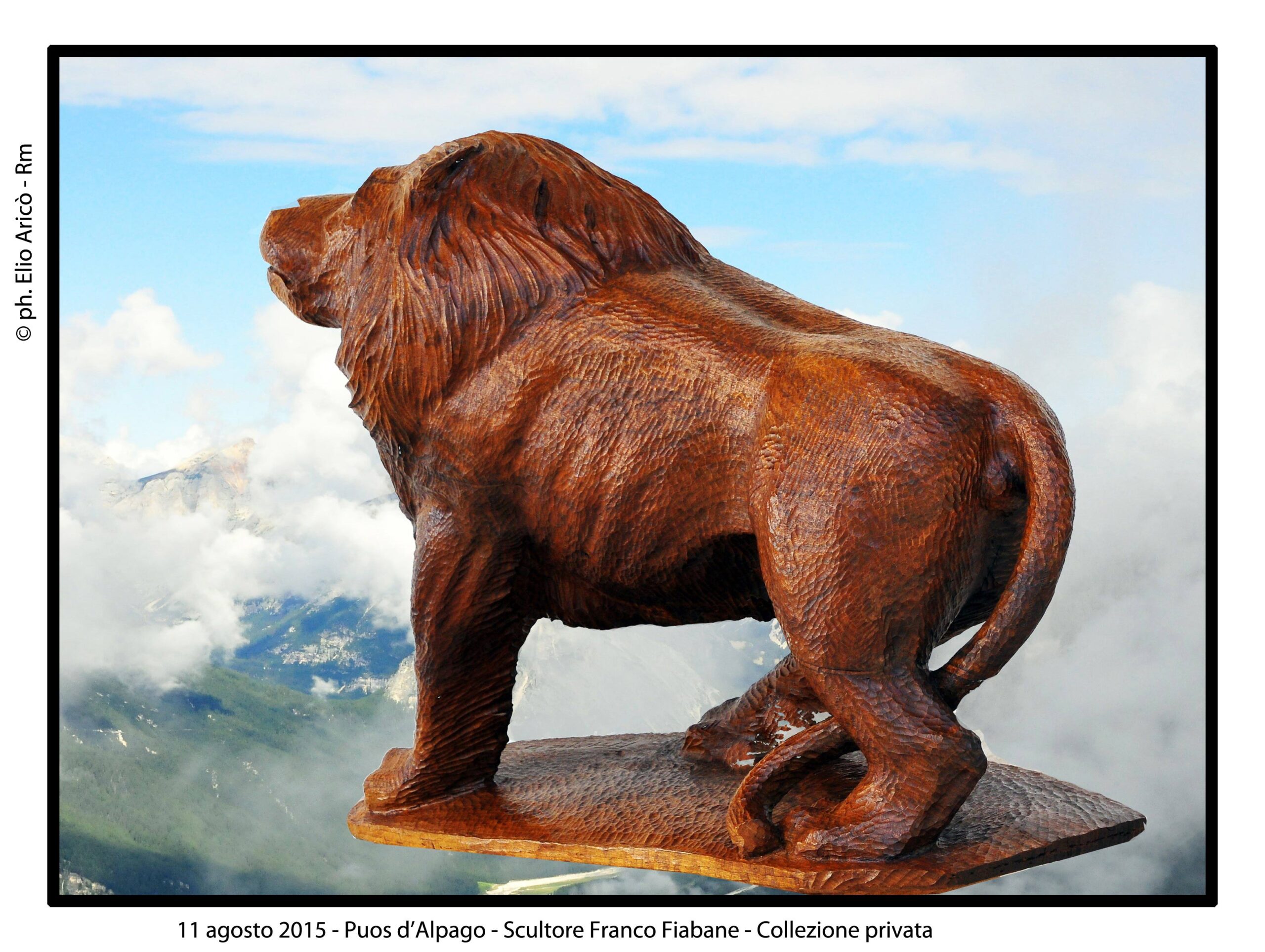 Le fotografie di Elio Aricò testimoniano la vitalità artistica di Franco Fiabane. Tra le immagini più significative quelle dell’11 agosto 2015, quando Franco si fece accompagnare a Puos d’Alpago per fotografare un leone in scultura lignea, realizzato su commissione per un amico collezionista appassionato di caccia grossa. Uno scatto lo ritrae in piena forma mentre aiuta a posizionare l’opera per le foto. Un gesto semplice, ma che racconta la sua energia, l’attenzione ai dettagli e il legame profondo con le proprie creazioni. Immagini che non documentano solo un’opera, ma un artista al lavoro, nel pieno della sua passione.