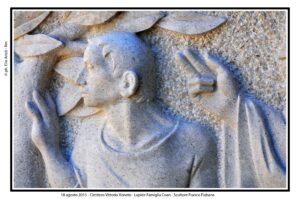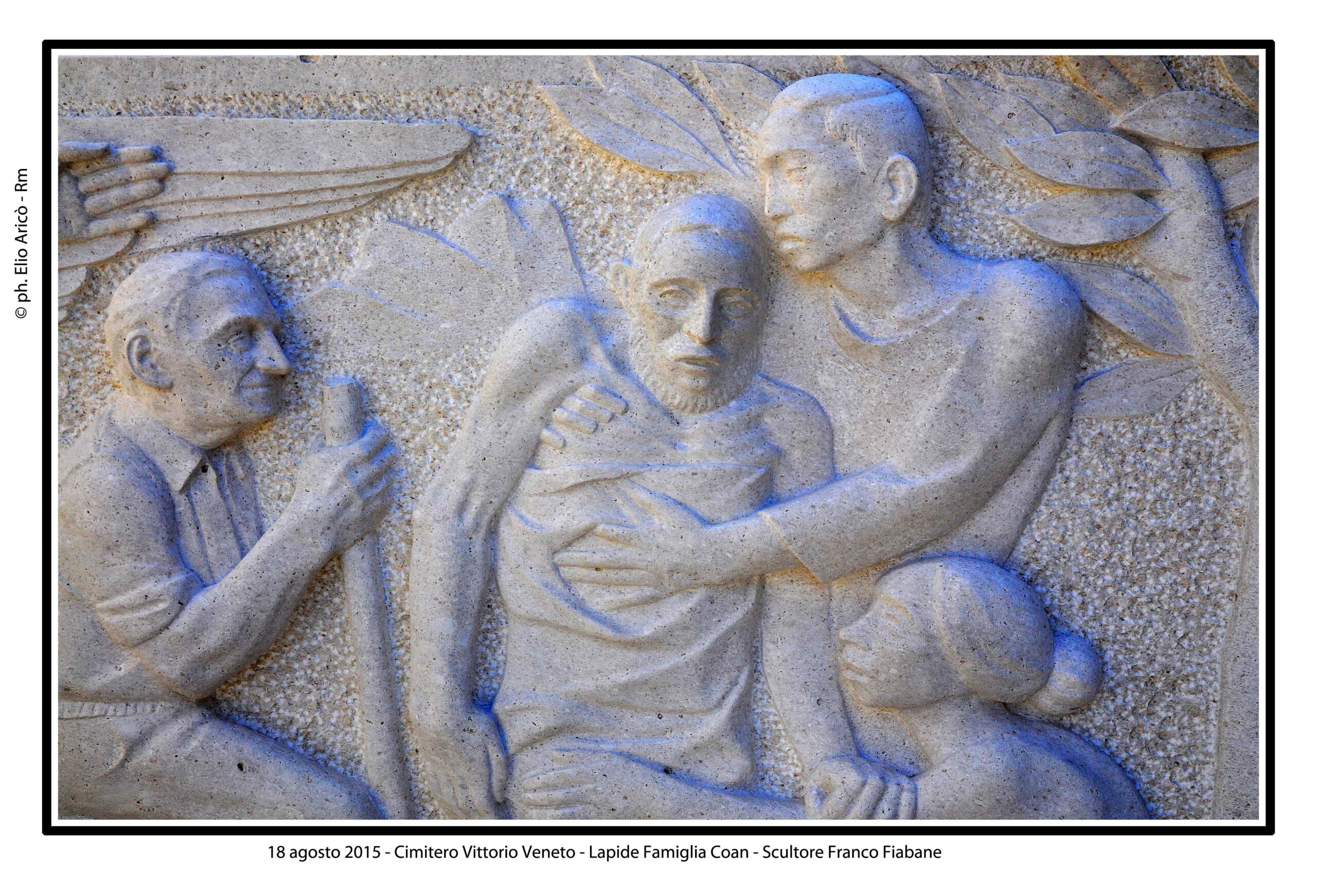 Un dialogo tra arte, memoria e verità emerge dalle fotografie realizzate dal fotografo romano Elio Aricò, dedicate al trittico in marmo di Carrara dello scultore Franco Fiabane, installato nel Cimitero monumentale di Fortogna, frazione di Longarone. L’opera, dedicata alle vittime del Vajont, è una delle più intense testimonianze artistiche della tragedia, scolpita con rigore e devozione da Fiabane, artista-artigiano di rara sensibilità. Fu lo stesso Franco Fiabane, il 24 agosto 2005, ad accompagnare Elio Aricò a Fortogna per mostrargli il monumento completato, dopo che il fotografo lo aveva visto in lavorazione l’anno precedente (vedi raccolta di foto seguenti_2004). Quelle immagini, oltre a documentare con eleganza la potenza del marmo e la profondità del messaggio, assunsero presto un valore speciale per l’artista: “Mi era molto riconoscenti — ricorda Aricò — perché, a suo dire, le fotografie servivano a tacitare le malelingue che cercavano di sminuire il suo lavoro insinuando l’uso del pantografo, la più grave offesa per un vero scultore”. Così, attraverso l’obiettivo di Aricò, il trittico di Fortogna si rivela non solo come monumento alla memoria del Vajont, ma anche come testimonianza di autenticità e orgoglio artigiano, un tributo al valore del fare manuale e alla dedizione di chi, nel marmo, scolpisce anche la propria verità.