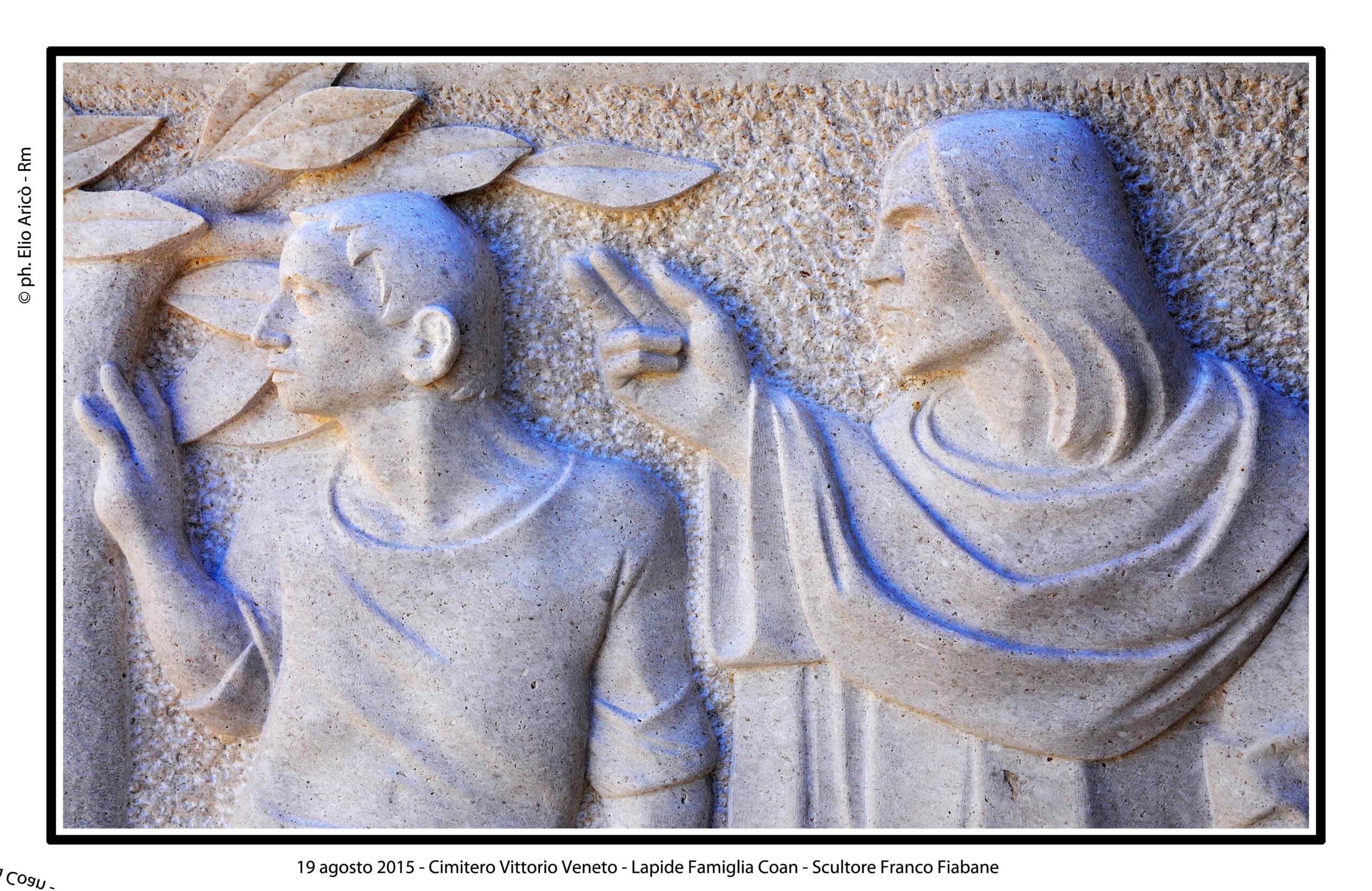 Un dialogo tra arte, memoria e verità emerge dalle fotografie realizzate dal fotografo romano Elio Aricò, dedicate al trittico in marmo di Carrara dello scultore Franco Fiabane, installato nel Cimitero monumentale di Fortogna, frazione di Longarone. L’opera, dedicata alle vittime del Vajont, è una delle più intense testimonianze artistiche della tragedia, scolpita con rigore e devozione da Fiabane, artista-artigiano di rara sensibilità. Fu lo stesso Franco Fiabane, il 24 agosto 2005, ad accompagnare Elio Aricò a Fortogna per mostrargli il monumento completato, dopo che il fotografo lo aveva visto in lavorazione l’anno precedente (vedi raccolta di foto seguenti_2004). Quelle immagini, oltre a documentare con eleganza la potenza del marmo e la profondità del messaggio, assunsero presto un valore speciale per l’artista: “Mi era molto riconoscenti — ricorda Aricò — perché, a suo dire, le fotografie servivano a tacitare le malelingue che cercavano di sminuire il suo lavoro insinuando l’uso del pantografo, la più grave offesa per un vero scultore”. Così, attraverso l’obiettivo di Aricò, il trittico di Fortogna si rivela non solo come monumento alla memoria del Vajont, ma anche come testimonianza di autenticità e orgoglio artigiano, un tributo al valore del fare manuale e alla dedizione di chi, nel marmo, scolpisce anche la propria verità.