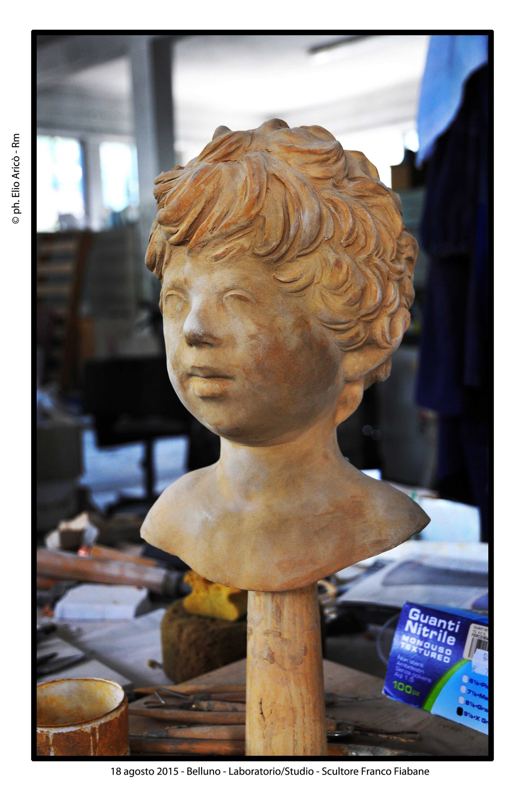 Presentare oggi le fotografie che il fotografo Elio Aricò realizzò nell’estate del 2015 all’artista bellunese Franco Fiabane significa riaprire una stagione carica di emozioni difficili da raccontare. Fu un’estate iniziata con entusiasmo, tra progetti, visite culturali e il desiderio di condividere arte e bellezza, e conclusa purtroppo in una tragedia che colpì profondamente la famiglia e gli amici. Il 10 agosto 2015 Aricò incontrò Franco nel suo laboratorio. Senza impegni urgenti, l’artista si era dedicato alla modellazione di alcune terracotte, opere delicate che confermavano la sua straordinaria versatilità. Tra gli scatti, “Susanna e i vecchioni”, il mascherone di Bacco, allegro e drammatico insieme, e infine la testa dell’Angelo della Chiesa del Nevegal, staccata dal corpo. Un’immagine che, riletta oggi, assume il valore silenzioso di un presagio.