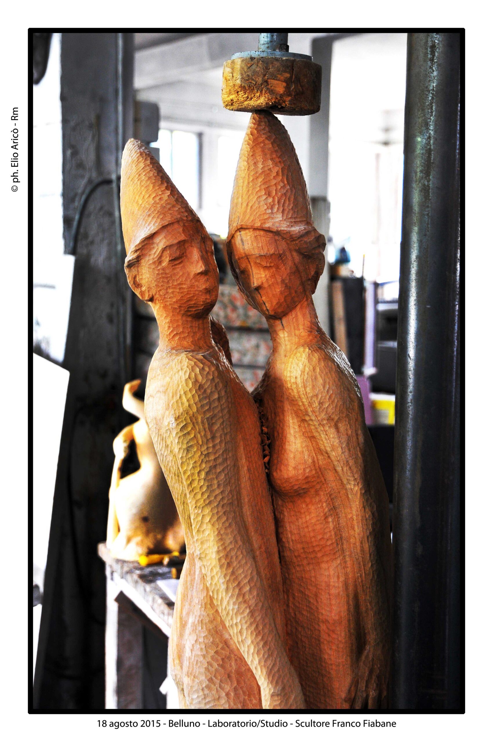 Nuove fotografie di Elio Aricò, fotografo e amico dell’artista Franco Fiabane Le nuove immagini di Elio Aricò nascono da un incontro del 18 agosto, occasione per visitare due collezionisti legati a Franco Fiabane da un rapporto di autentica amicizia. Qui l’artista non è il Maestro celebrato, ma l’amico accolto con affetto. Tra le opere spiccano un nudo ligneo di forte intensità e il tagliere-scultura custodito all’agriturismo Bon Tajer di Lentiai: un contadino e una contadina in un momento di riposo, immagine semplice e potente che richiama l’atmosfera di Novecento di Bertolucci. Le fotografie di Aricò raccontano questo intreccio di arte, memoria e relazioni umane.