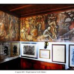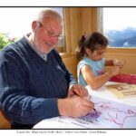 Nel suo laboratorio il tempo sembra rallentare, seguendo il ritmo paziente delle mani e del legno. Le immagini raccontano Franco Fiabane al lavoro nell’estate del 2011: uno scultore immerso nel dialogo silenzioso con la materia, circondato da trucioli, attrezzi e forme che nascono poco alla volta. Nel laboratorio si vedono opere in diverse fasi di lavorazione: grandi tronchi appena sbozzati, figure ancora incomplete, parti separate – braccia, busti, rilievi – che attendono di essere ricomposte o rifinite. Accanto alle sculture tridimensionali compaiono pannelli scolpiti a bassorilievo, scene narrative che richiamano il racconto popolare, la memoria collettiva, la vita quotidiana. È un mondo coerente, in cui il gesto artigianale si intreccia alla dimensione simbolica. Le fotografie di Elio Arico’ mostrano Fiabane concentrato, a volte sorridente, a volte assorto. Indossa il grembiule da lavoro, osserva l’opera da vicino, la tocca, la gira, come per verificarne l’equilibrio e l’anima. Il rapporto con il legno è fisico e diretto: martello e scalpello diventano strumenti di dialogo più che di forza, capaci di seguire le venature naturali del materiale e assecondarne le imperfezioni.