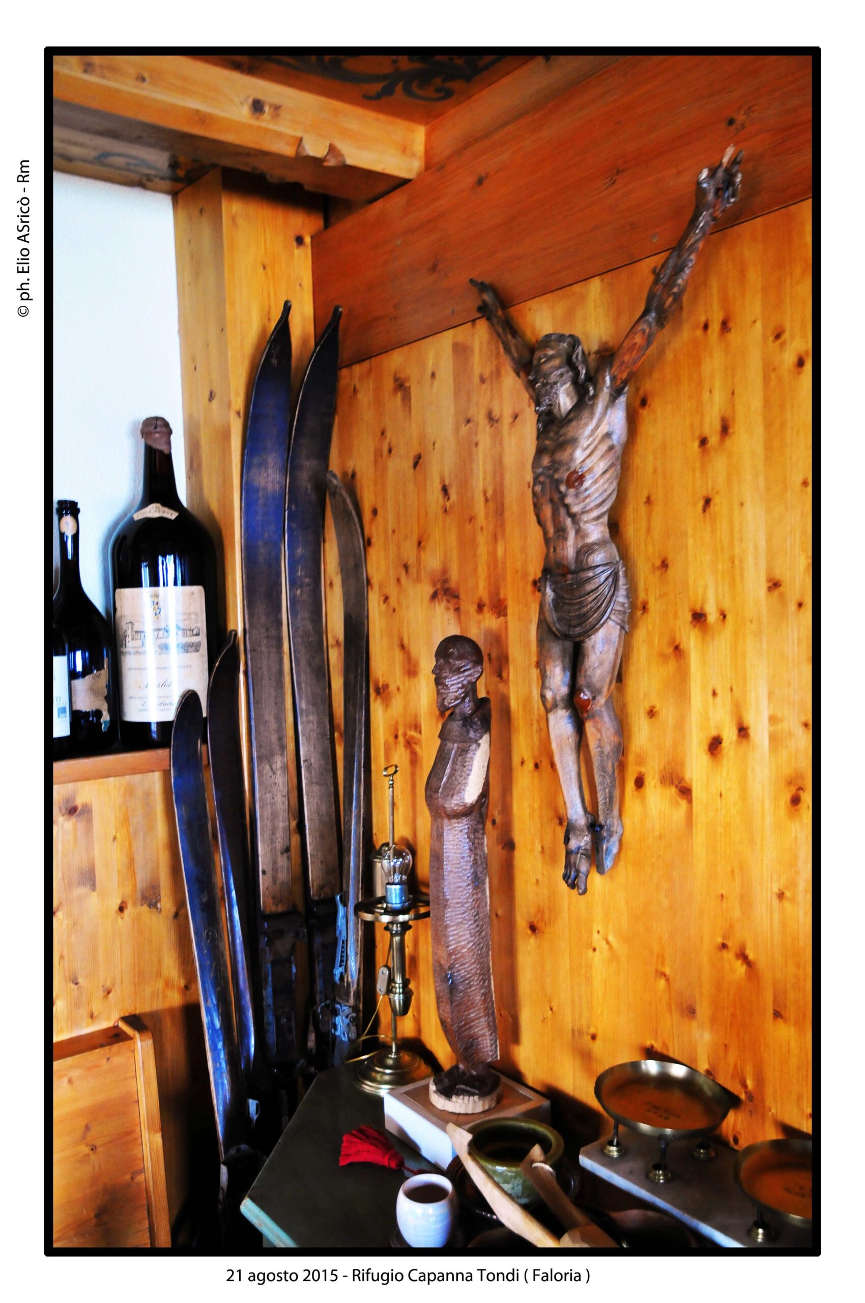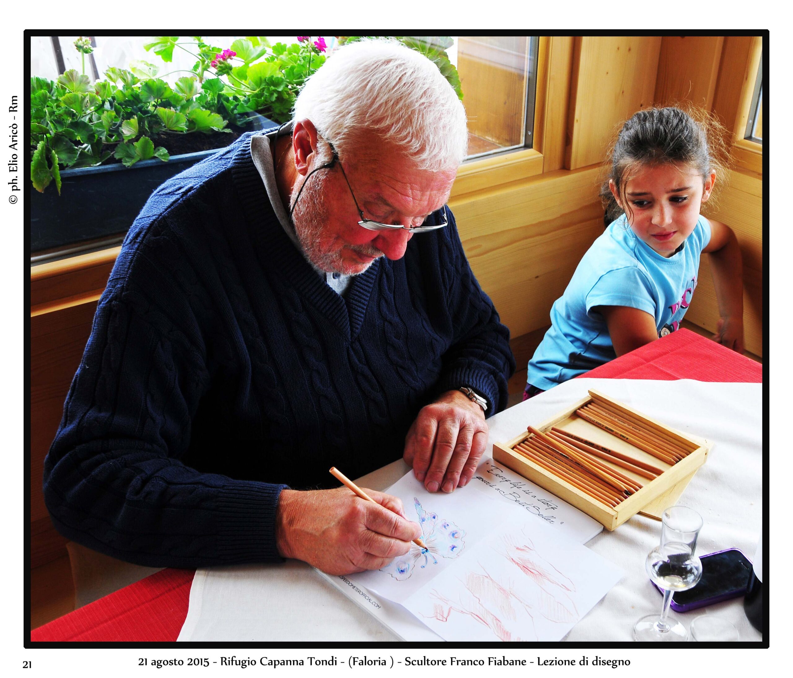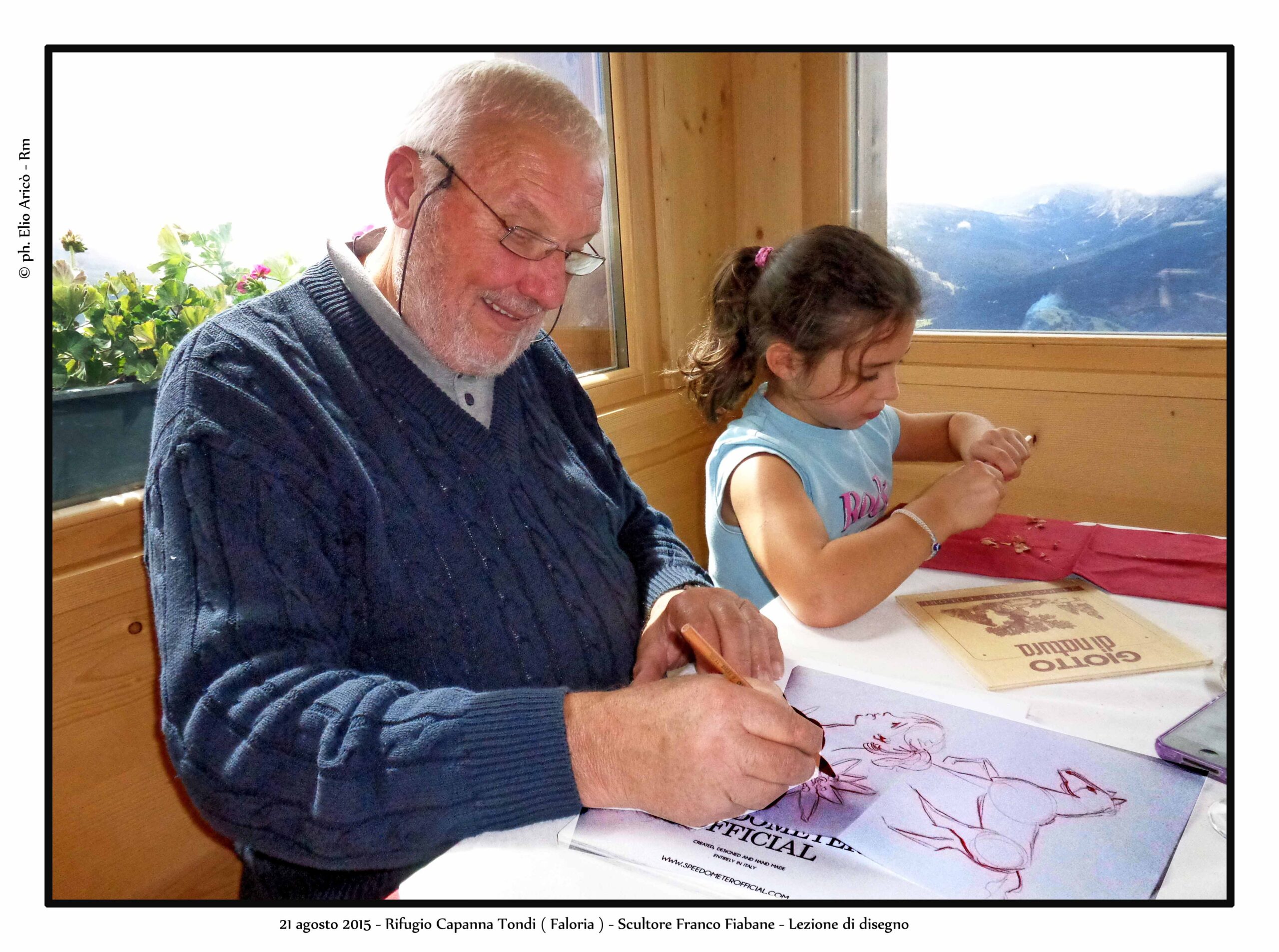 Nuove fotografie di Elio Aricò, fotografo e amico dell’artista Franco Fiabane Le nuove immagini di Elio Aricò nascono da un incontro del 18 agosto, occasione per visitare due collezionisti legati a Franco Fiabane da un rapporto di autentica amicizia. Qui l’artista non è il Maestro celebrato, ma l’amico accolto con affetto. Tra le opere spiccano un nudo ligneo di forte intensità e il tagliere-scultura custodito all’agriturismo Bon Tajer di Lentiai: un contadino e una contadina in un momento di riposo, immagine semplice e potente che richiama l’atmosfera di Novecento di Bertolucci. Le fotografie di Aricò raccontano questo intreccio di arte, memoria e relazioni umane.