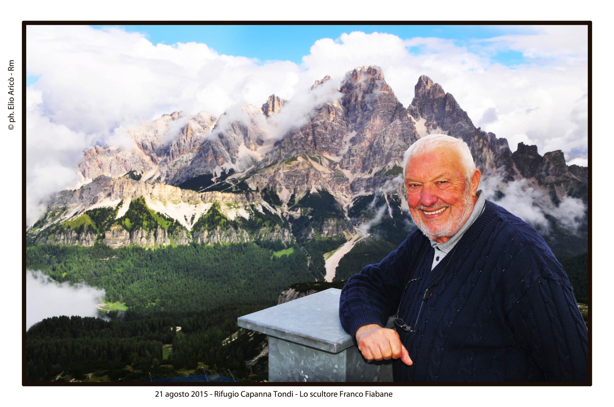 Le fotografie di Elio Aricò testimoniano la vitalità artistica di Franco Fiabane. Tra le immagini più significative quelle dell’11 agosto 2015, quando Franco si fece accompagnare a Puos d’Alpago per fotografare un leone in scultura lignea, realizzato su commissione per un amico collezionista appassionato di caccia grossa. Uno scatto lo ritrae in piena forma mentre aiuta a posizionare l’opera per le foto. Un gesto semplice, ma che racconta la sua energia, l’attenzione ai dettagli e il legame profondo con le proprie creazioni. Immagini che non documentano solo un’opera, ma un artista al lavoro, nel pieno della sua passione.