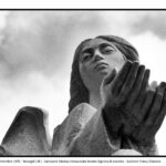 Un dialogo tra arte, memoria e verità emerge dalle fotografie realizzate dal fotografo romano Elio Aricò, dedicate al trittico in marmo di Carrara dello scultore Franco Fiabane, installato nel Cimitero monumentale di Fortogna, frazione di Longarone. L’opera, dedicata alle vittime del Vajont, è una delle più intense testimonianze artistiche della tragedia, scolpita con rigore e devozione da Fiabane, artista-artigiano di rara sensibilità. Fu lo stesso Franco Fiabane, il 24 agosto 2005, ad accompagnare Elio Aricò a Fortogna per mostrargli il monumento completato, dopo che il fotografo lo aveva visto in lavorazione l’anno precedente (vedi raccolta di foto seguenti_2004). Quelle immagini, oltre a documentare con eleganza la potenza del marmo e la profondità del messaggio, assunsero presto un valore speciale per l’artista: “Mi era molto riconoscenti — ricorda Aricò — perché, a suo dire, le fotografie servivano a tacitare le malelingue che cercavano di sminuire il suo lavoro insinuando l’uso del pantografo, la più grave offesa per un vero scultore”. Così, attraverso l’obiettivo di Aricò, il trittico di Fortogna si rivela non solo come monumento alla memoria del Vajont, ma anche come testimonianza di autenticità e orgoglio artigiano, un tributo al valore del fare manuale e alla dedizione di chi, nel marmo, scolpisce anche la propria verità.