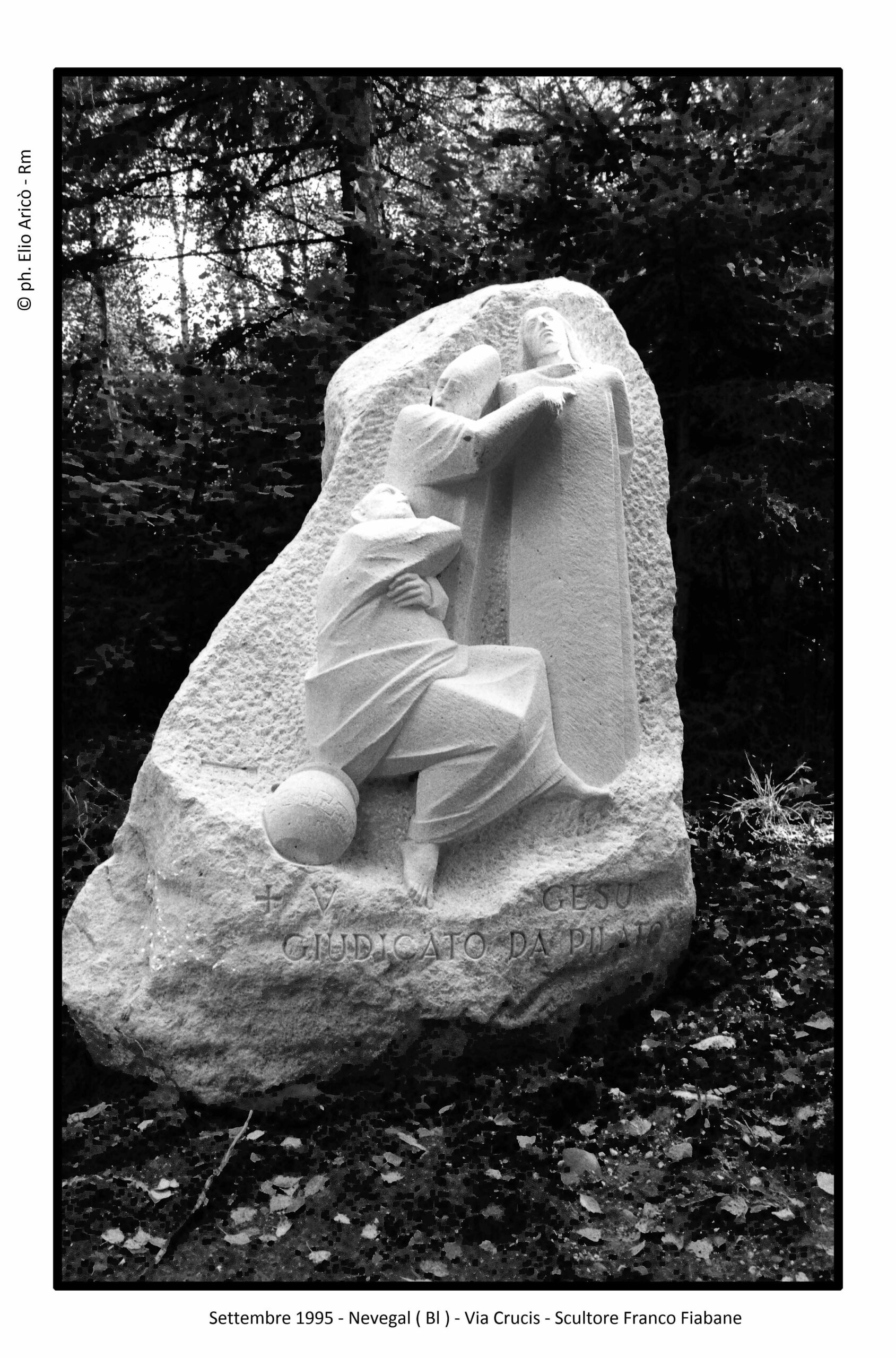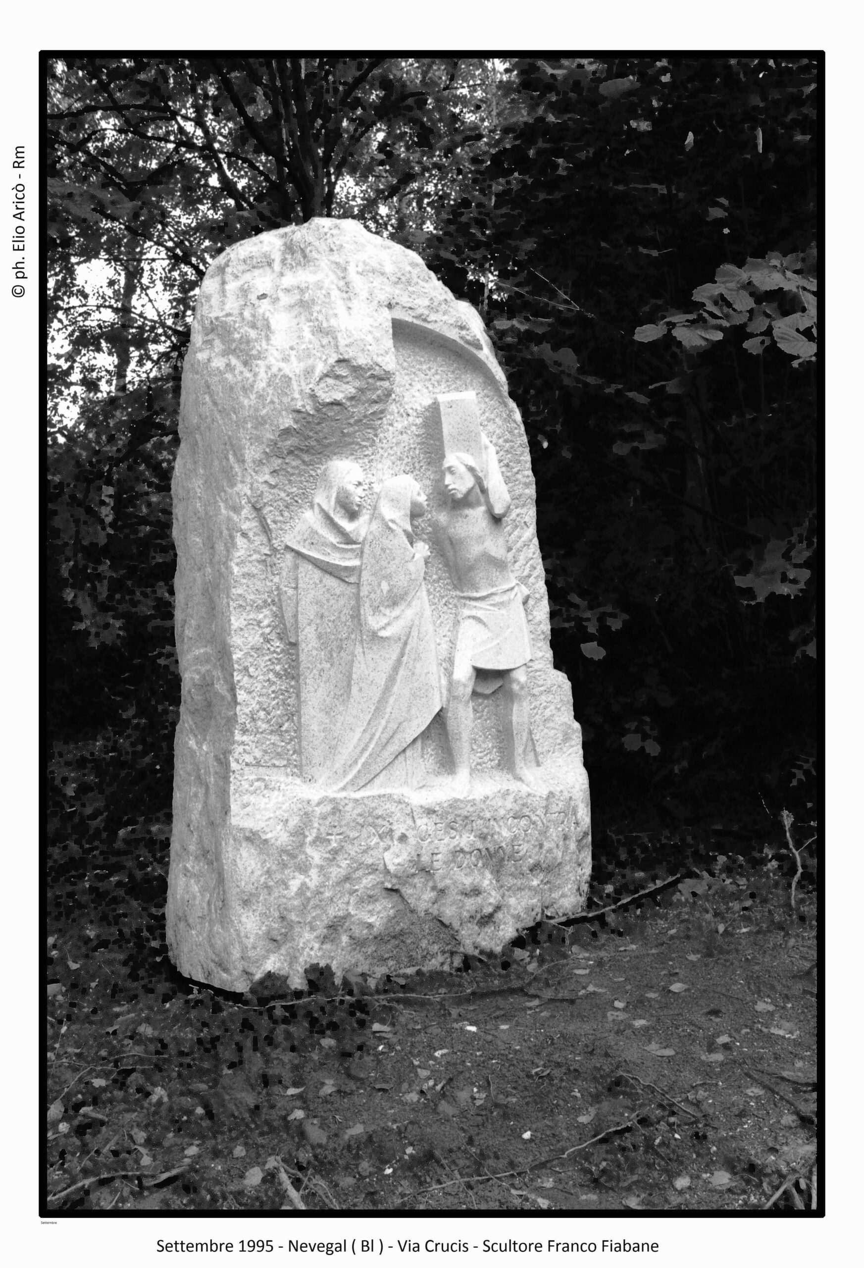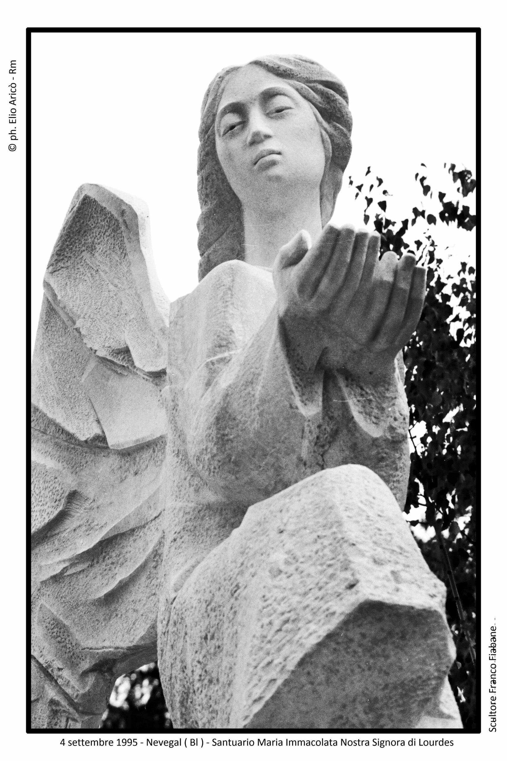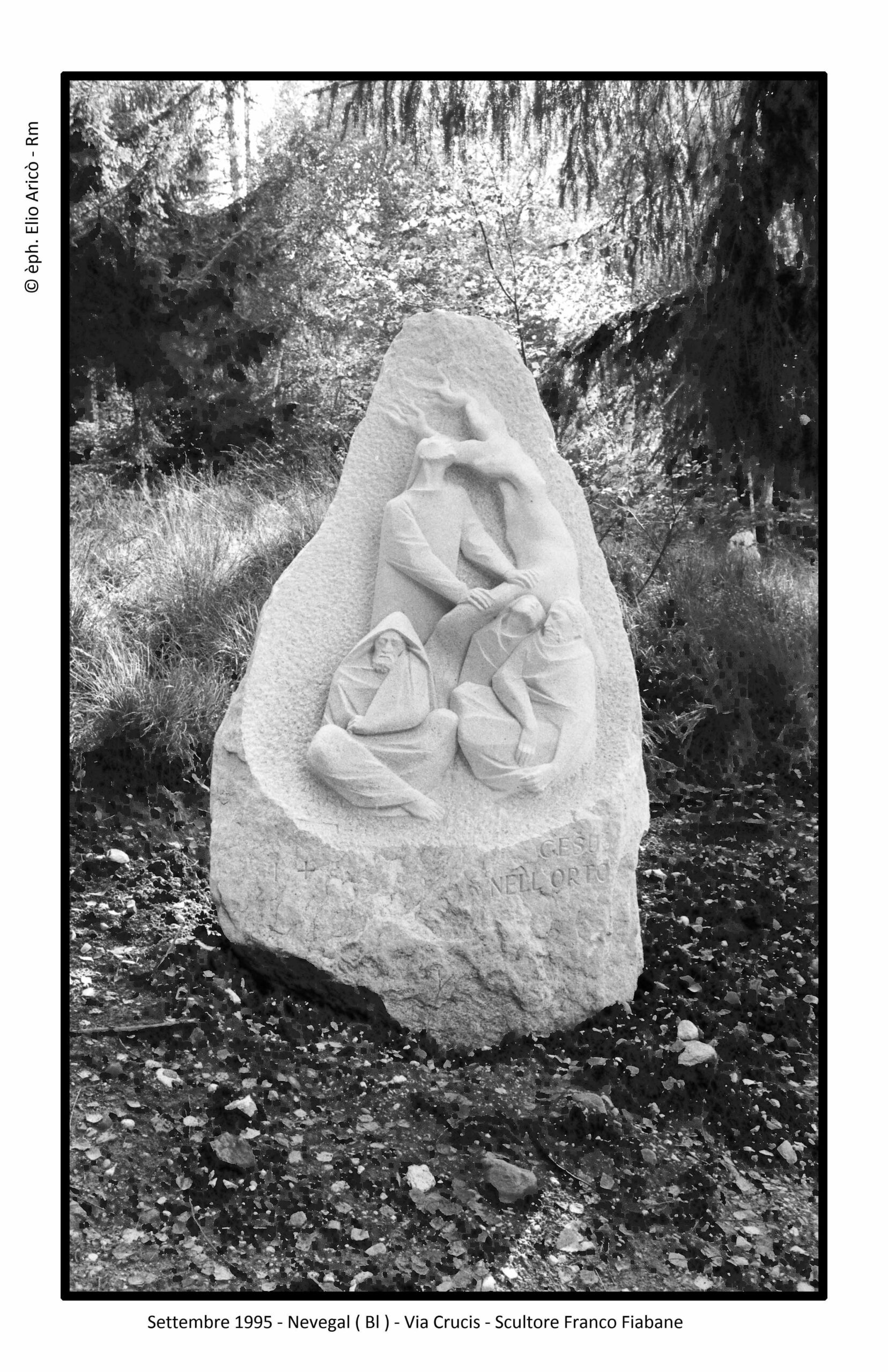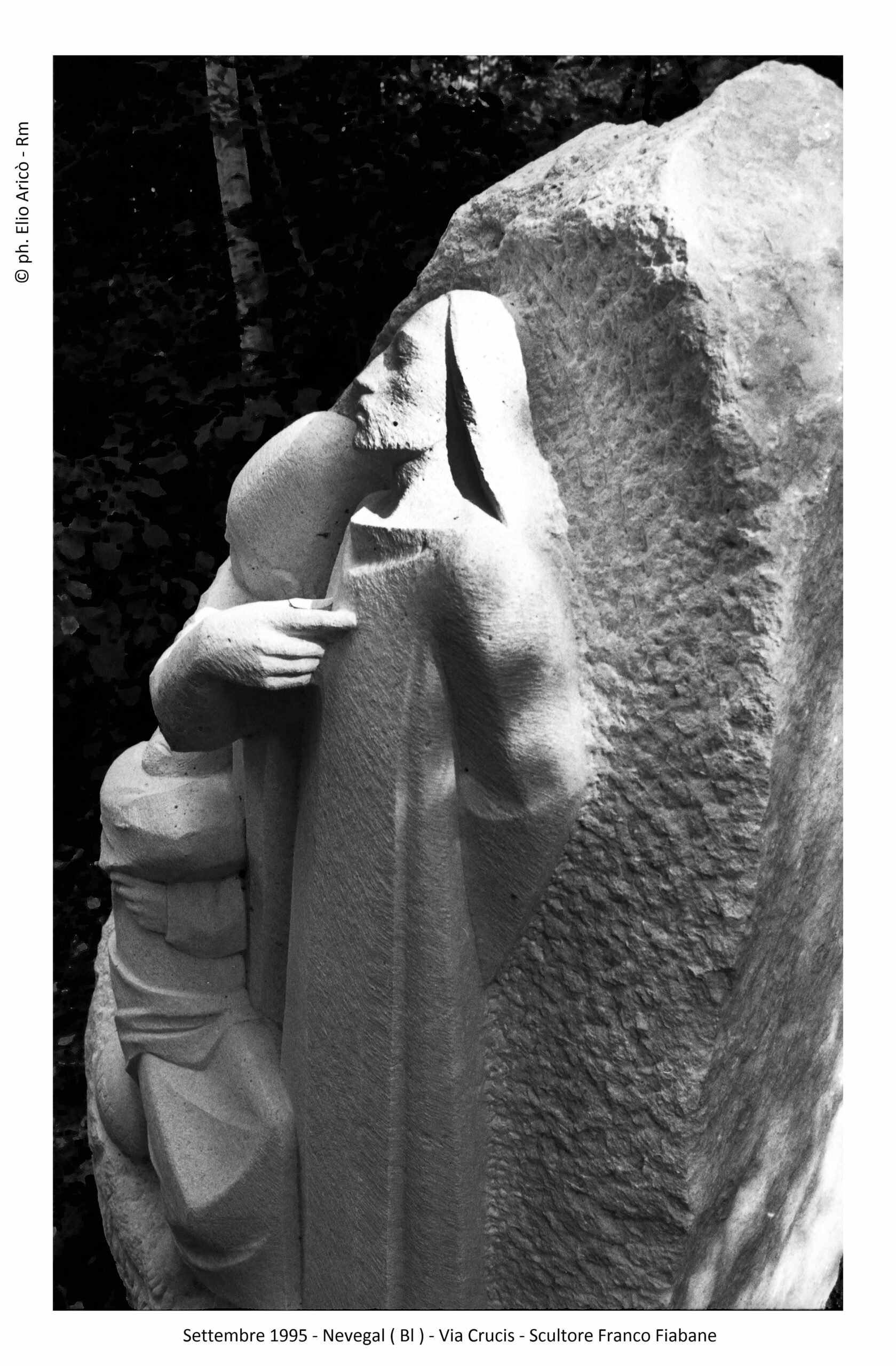 Dopo il racconto fotografico che ci ha accompagnato dal 2004 al 2015, apriamo oggi un nuovo capitolo. Torniamo indietro nel tempo, al 1995, quando nasce l’amicizia tra il fotografo romano Elio Aricò e l’artista bellunese Franco Fiabane. Da oggi ripercorreremo quel periodo, fatto di incontri, immagini e condivisioni. Le fotografie di quell’anno segnano l’inizio di un legame destinato a consolidarsi nel tempo. I primi scatti ritraggono l’Angelo del Santuario del Nevegal e alcune postazioni della Via Crucis: immagini realizzate anche in diapositiva, poi consegnate allo stesso Fiabane. Non semplici fotografie, ma i primi tasselli di una storia di amicizia tra arte e memoria.