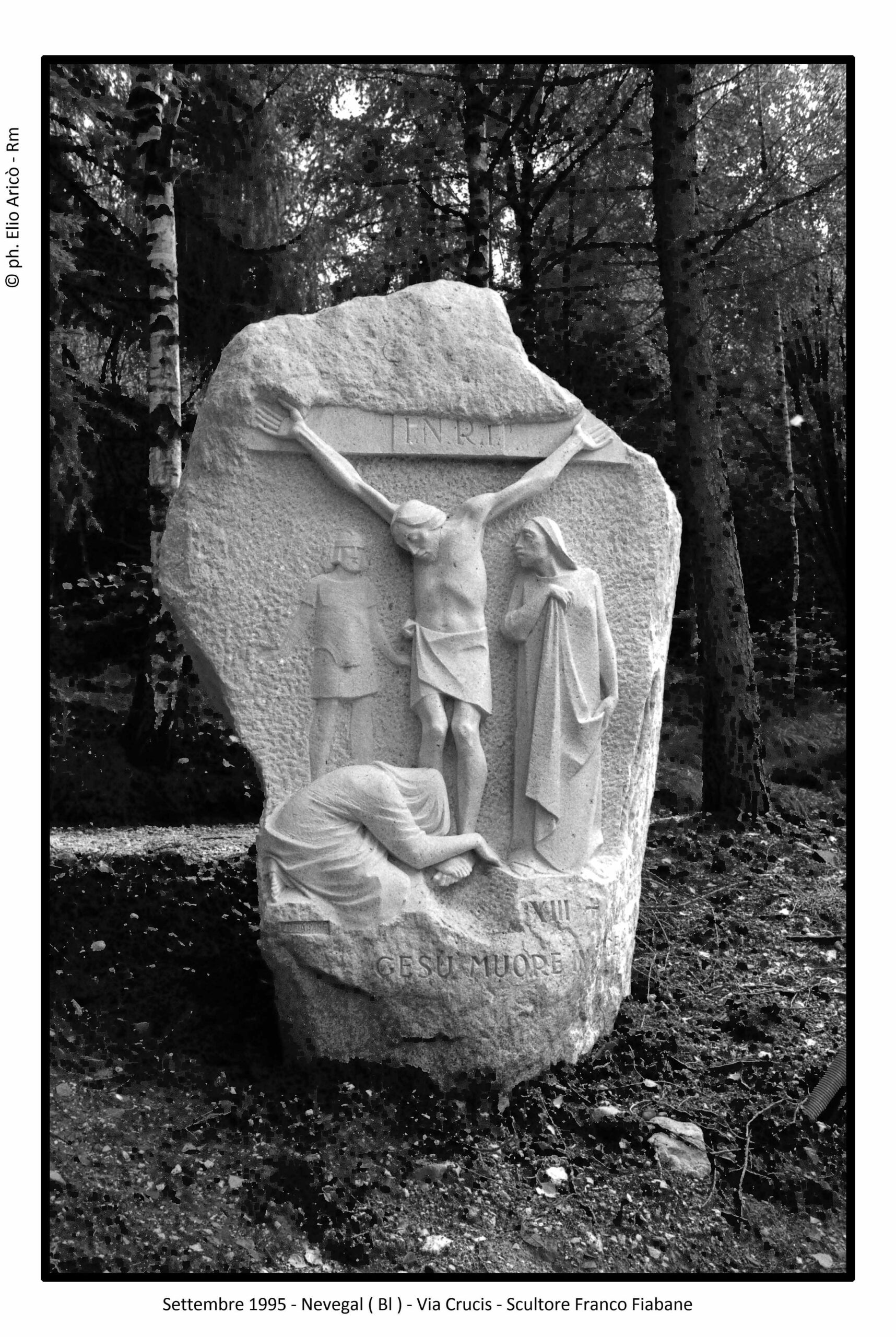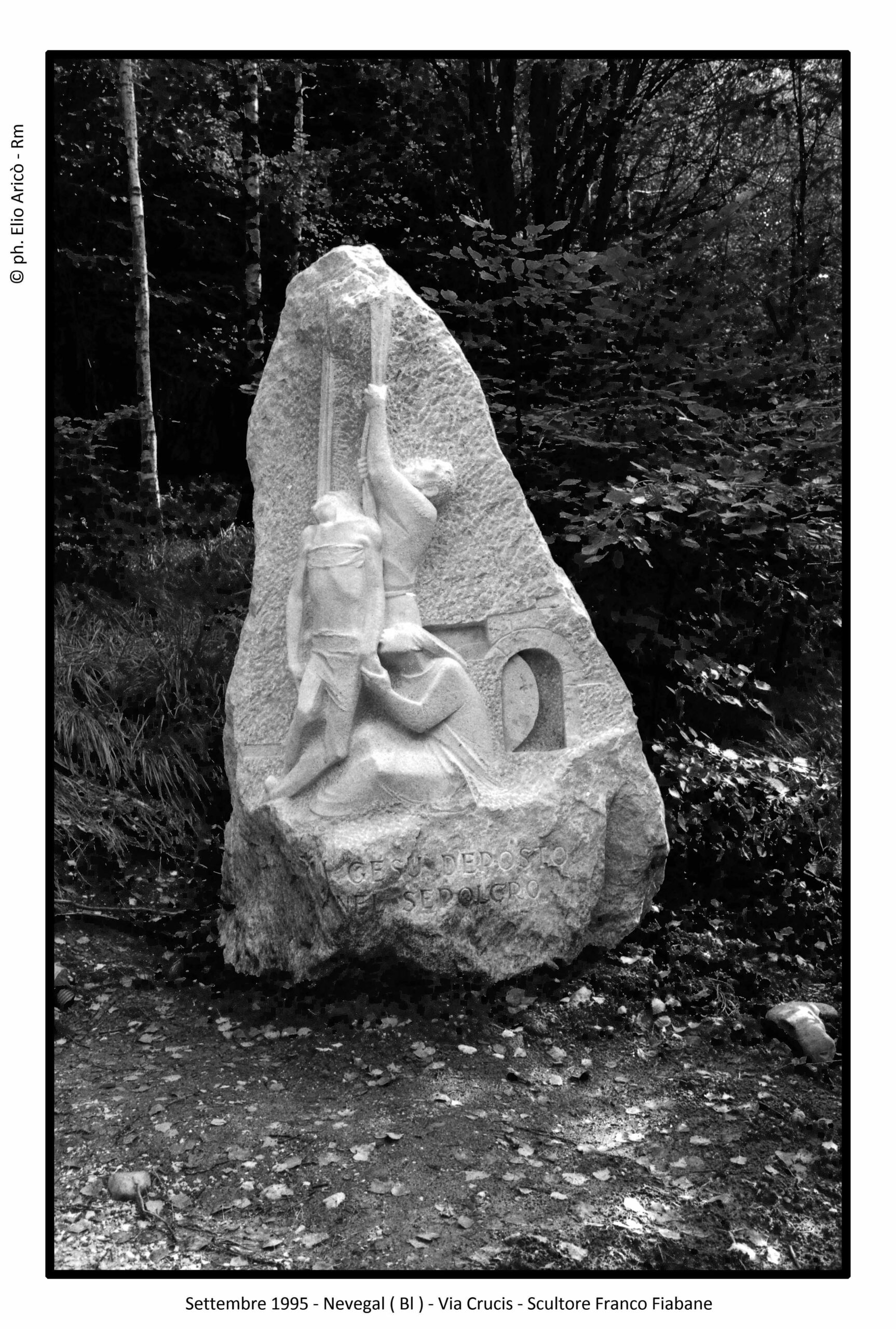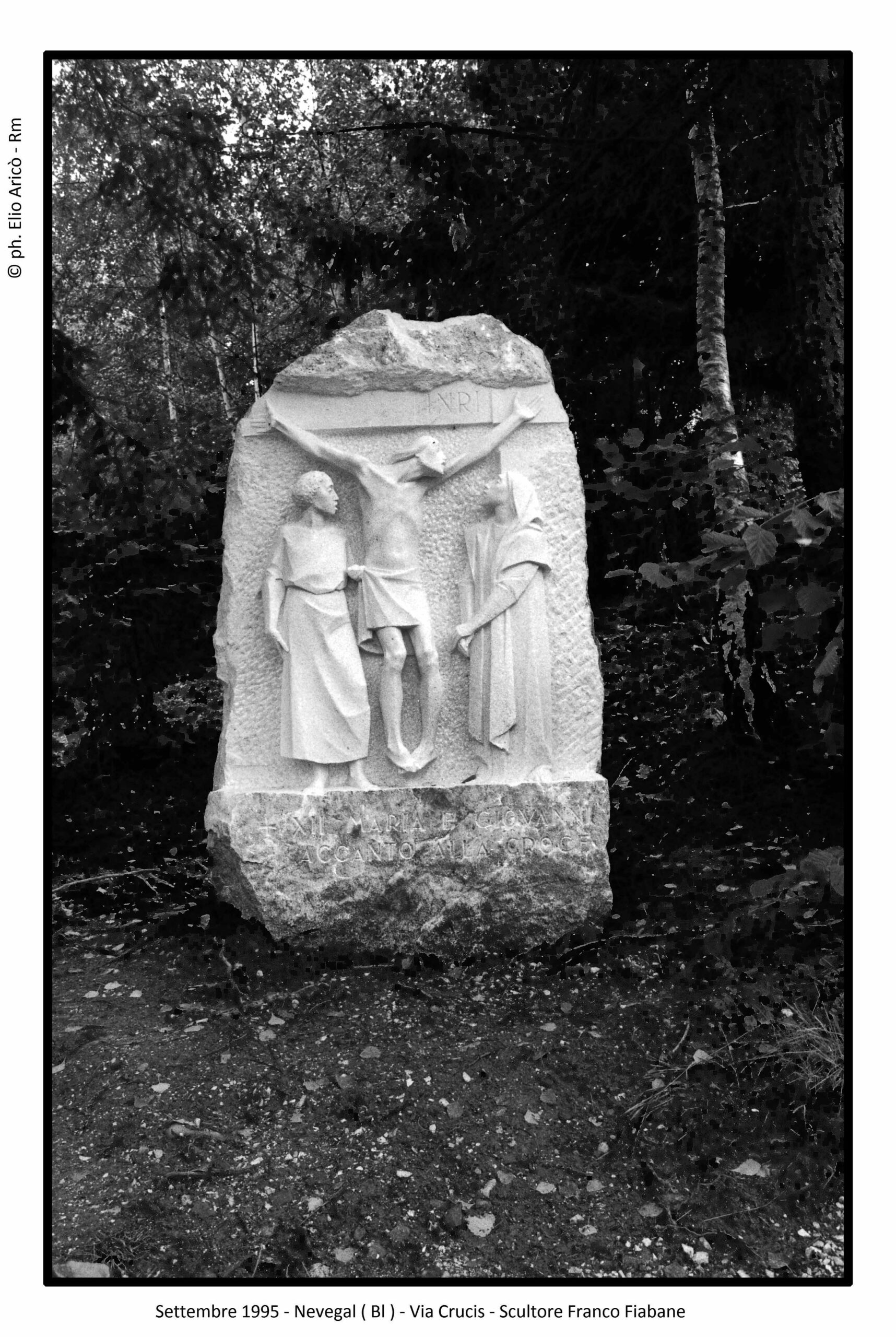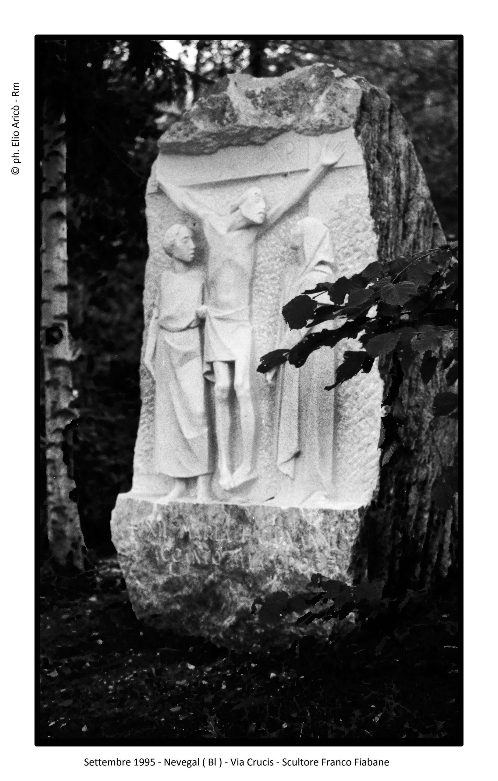 Dopo il racconto fotografico che ci ha accompagnato dal 2004 al 2015, apriamo oggi un nuovo capitolo. Torniamo indietro nel tempo, al 1995, quando nasce l’amicizia tra il fotografo romano Elio Aricò e l’artista bellunese Franco Fiabane. Da oggi ripercorreremo quel periodo, fatto di incontri, immagini e condivisioni. Le fotografie di quell’anno segnano l’inizio di un legame destinato a consolidarsi nel tempo. I primi scatti ritraggono l’Angelo del Santuario del Nevegal e alcune postazioni della Via Crucis: immagini realizzate anche in diapositiva, poi consegnate allo stesso Fiabane. Non semplici fotografie, ma i primi tasselli di una storia di amicizia tra arte e memoria.
