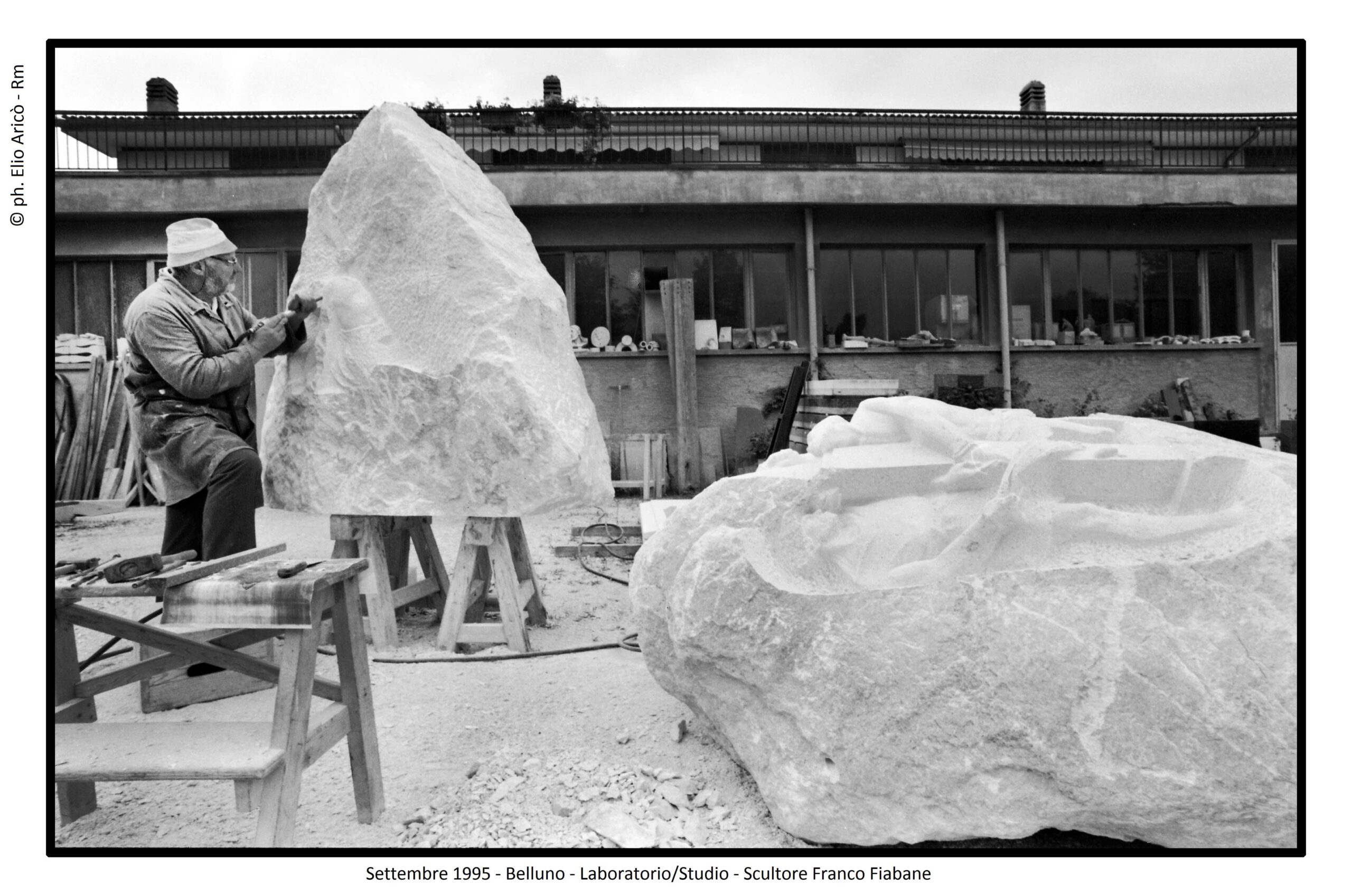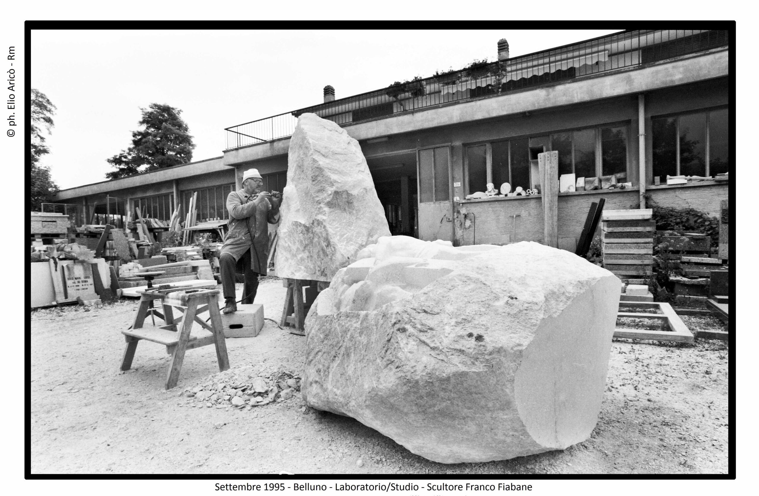 Un dialogo tra arte, memoria e verità emerge dalle fotografie realizzate dal fotografo romano Elio Aricò, dedicate al trittico in marmo di Carrara dello scultore Franco Fiabane, installato nel Cimitero monumentale di Fortogna, frazione di Longarone. L’opera, dedicata alle vittime del Vajont, è una delle più intense testimonianze artistiche della tragedia, scolpita con rigore e devozione da Fiabane, artista-artigiano di rara sensibilità. Fu lo stesso Franco Fiabane, il 24 agosto 2005, ad accompagnare Elio Aricò a Fortogna per mostrargli il monumento completato, dopo che il fotografo lo aveva visto in lavorazione l’anno precedente (vedi raccolta di foto seguenti_2004). Quelle immagini, oltre a documentare con eleganza la potenza del marmo e la profondità del messaggio, assunsero presto un valore speciale per l’artista: “Mi era molto riconoscenti — ricorda Aricò — perché, a suo dire, le fotografie servivano a tacitare le malelingue che cercavano di sminuire il suo lavoro insinuando l’uso del pantografo, la più grave offesa per un vero scultore”. Così, attraverso l’obiettivo di Aricò, il trittico di Fortogna si rivela non solo come monumento alla memoria del Vajont, ma anche come testimonianza di autenticità e orgoglio artigiano, un tributo al valore del fare manuale e alla dedizione di chi, nel marmo, scolpisce anche la propria verità.