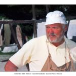Il fotografo romano Elio Aricò ha inviato un nuovo prezioso contributo fotografico, riportando alla luce un momento intenso e profondamente umano vissuto nell’agosto del 2008. In quell’occasione, Elio e sua moglie Marcella visitarono l’atelier di Franco, maestro scultore capace di unire tecnica, sensibilità e una conoscenza anatomica fuori dal comune. Marcella – presente in alcune delle immagini – venne accolta dallo scultore con grande gentilezza. Franco si soffermò a spiegare le diverse tecniche che stava applicando al blocco “Saga familiare”, opera che già abbiamo avuto modo di commentare (vedi raccolta) e che rappresenta uno dei passaggi più significativi del suo percorso artistico. Non meno affascinante fu il momento dedicato al Cristo ligneo allora in lavorazione. Un’opera che, ricorda Elio, rivelava come pochi la capacità dello scultore di leggere il corpo umano, di comprenderne tensioni, pesi, dolori. Ed è proprio questa padronanza dell’anatomia a dare alla figura del Cristo in Croce quella forza drammatica che non è semplice rappresentazione, ma esperienza emotiva: la sofferenza dell’uomo che teme di essere abbandonato dal suo Dio. Elio Aricò, nel suo messaggio, accompagna le fotografie con un pensiero carico di stima e gratitudine, definendo quell’incontro una testimonianza viva della grandezza umana e artistica di Franco.