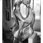 Altra importante serie di immagini, riapre il dialogo silenzioso tra l’artista e la sua opera. Elio Aricò testimonia il lavoro di Franco Fiabane, documentando una fase centrale e delicata della lavorazione di un Nudo femminile in legno, iniziato nel 2012 e portato avanti negli anni come un corpo che cresce, muta, prende coscienza di sé. Le immagini raccontano la fase di rifinitura dell’opera, quella in cui la materia perde l’asprezza iniziale e si avvicina alla pelle, alla curva, alla tensione del gesto. È qui che, come osserva Aricò, la scultura accentua la propria carica erotica, un erotismo mai urlato ma inscritto nel rapporto antico tra mano, legno e forma umana. In alcune sequenze fotografiche, Fiabane appare quasi avvolgere la propria creazione in un abbraccio. Il lavoro sul Nudo femminile conferma: il corpo non come oggetto, ma come luogo di tensione espressiva, di memoria e di desiderio, scolpito nella resistenza del legno.